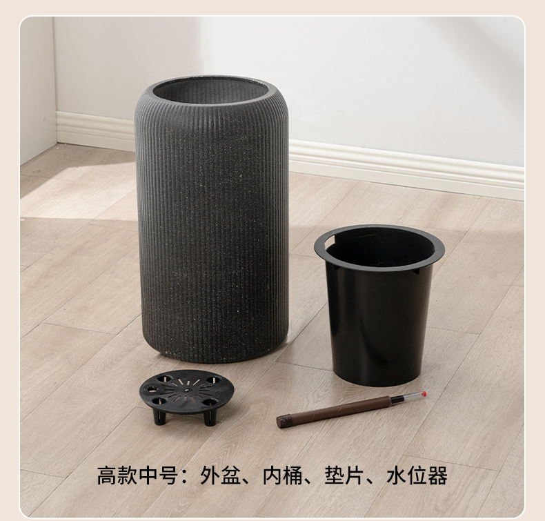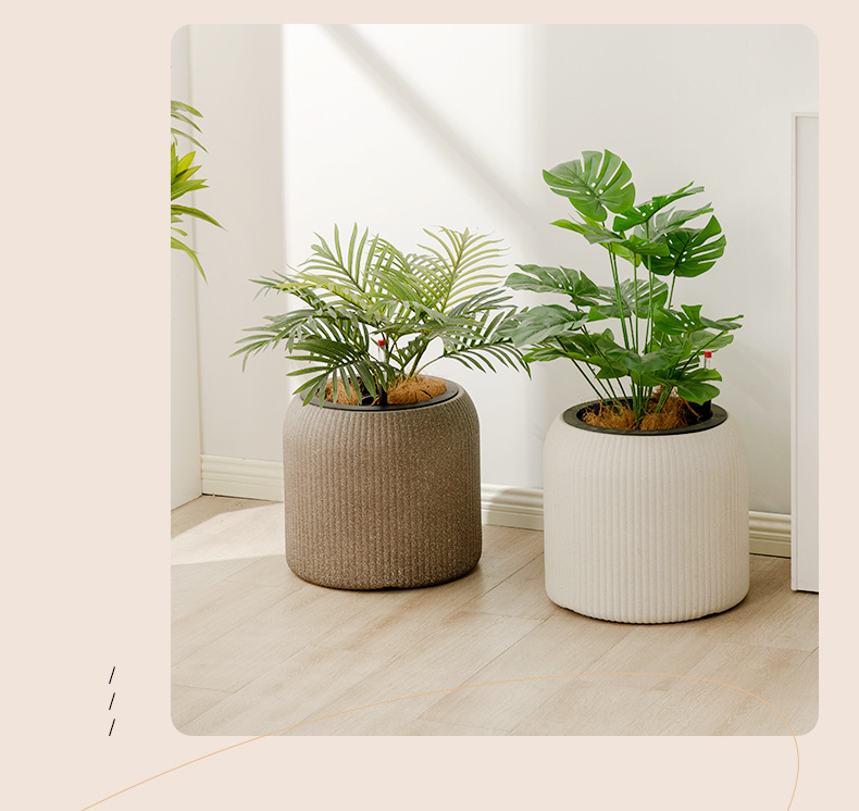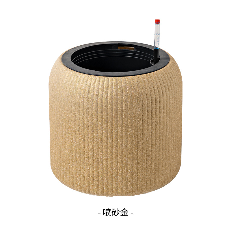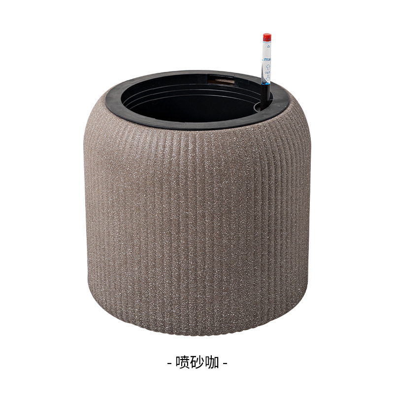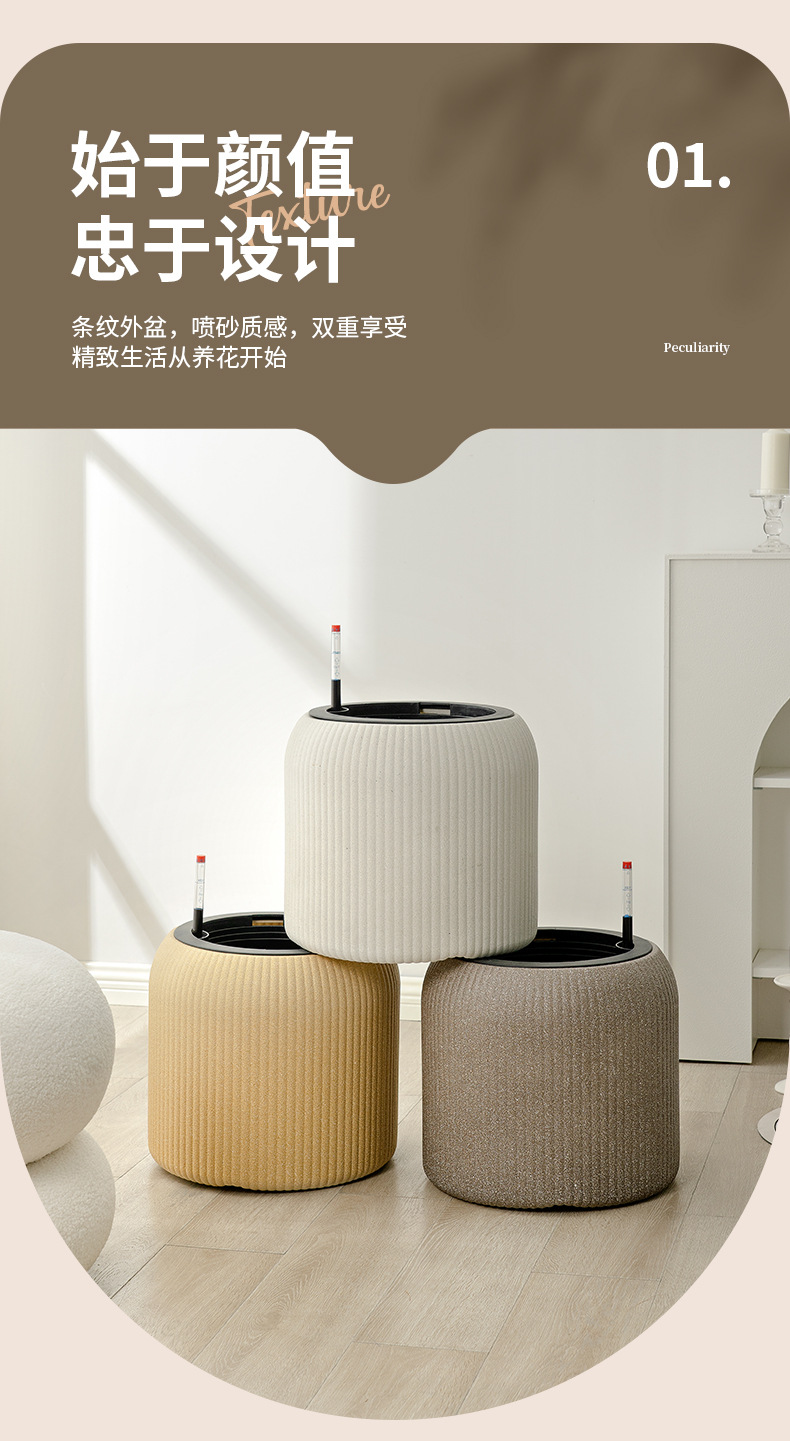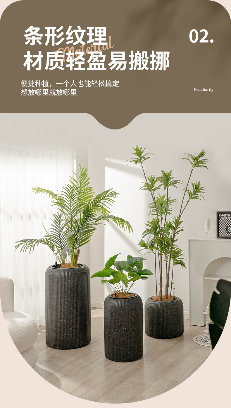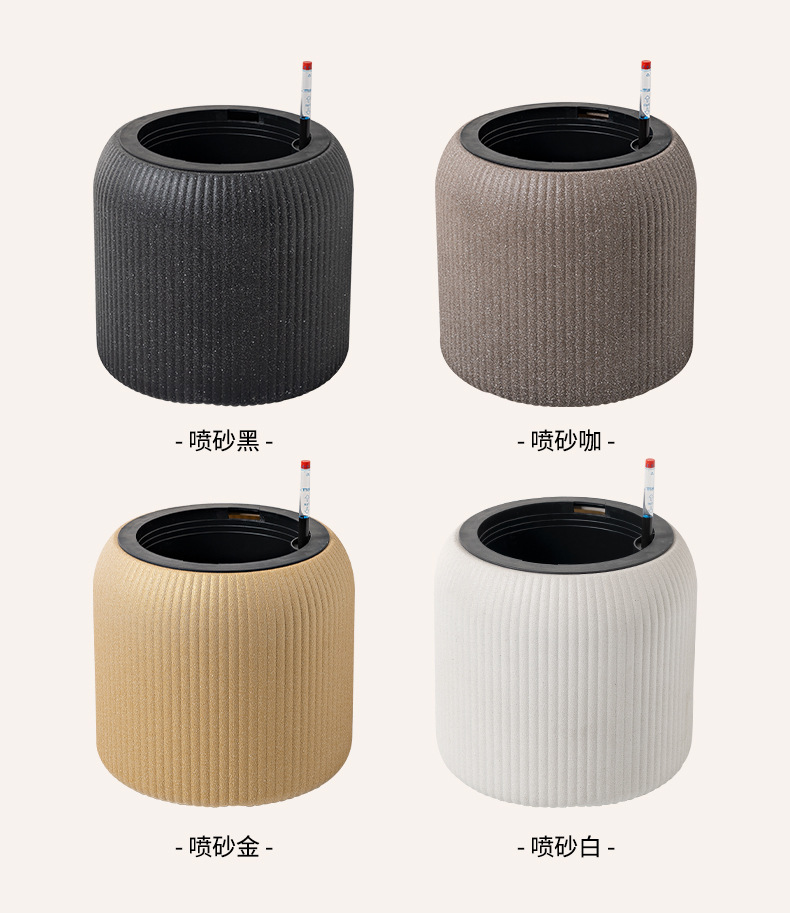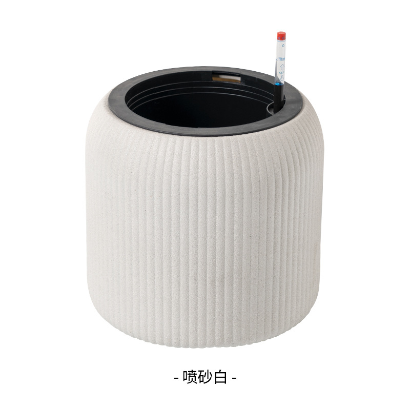 喷砂条纹花盆北欧风现代简约高级感自吸水懒人树脂花盆办公室客厅
