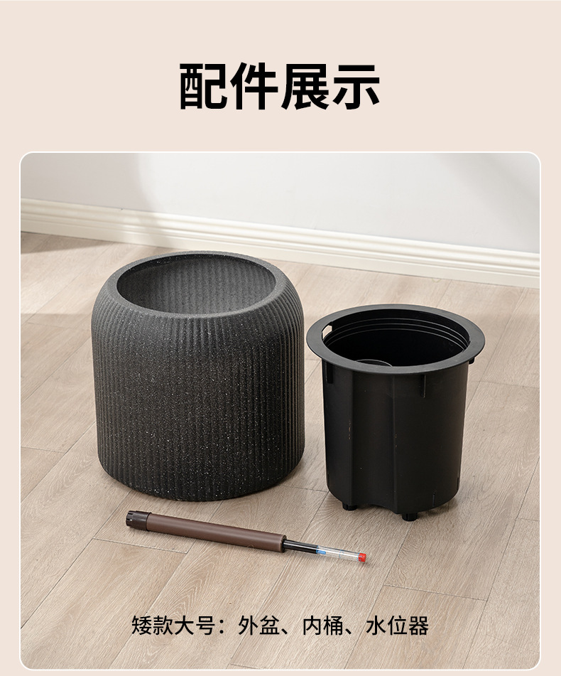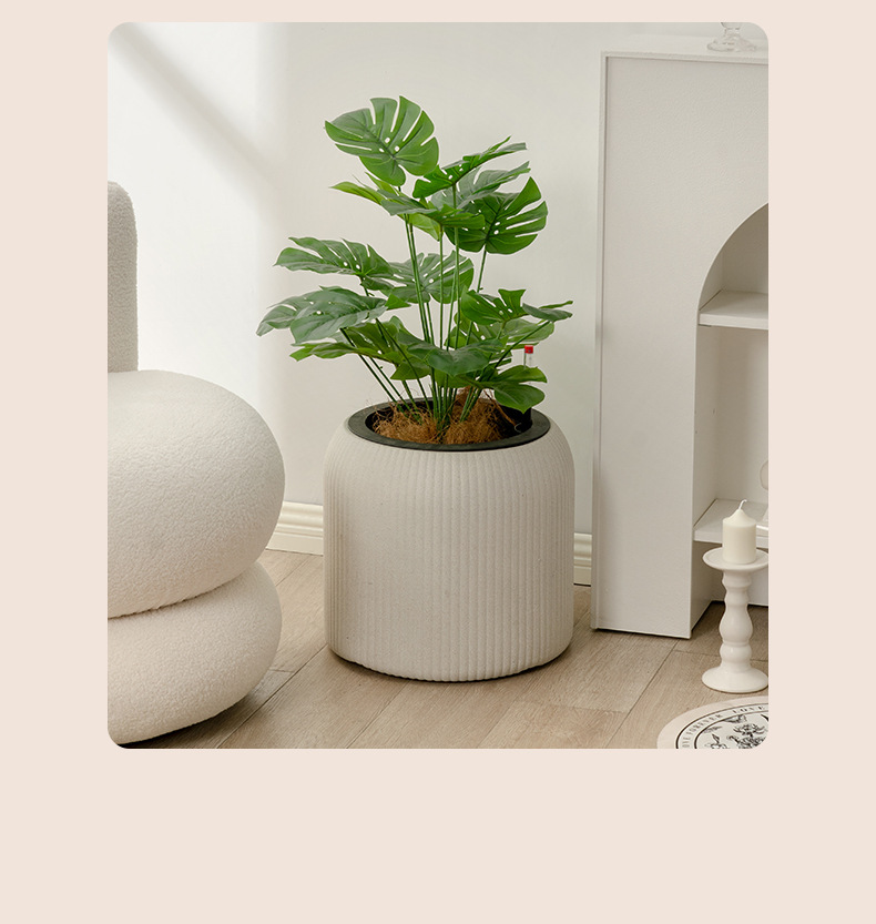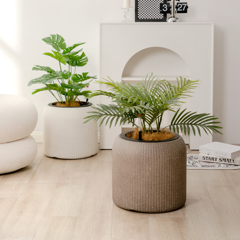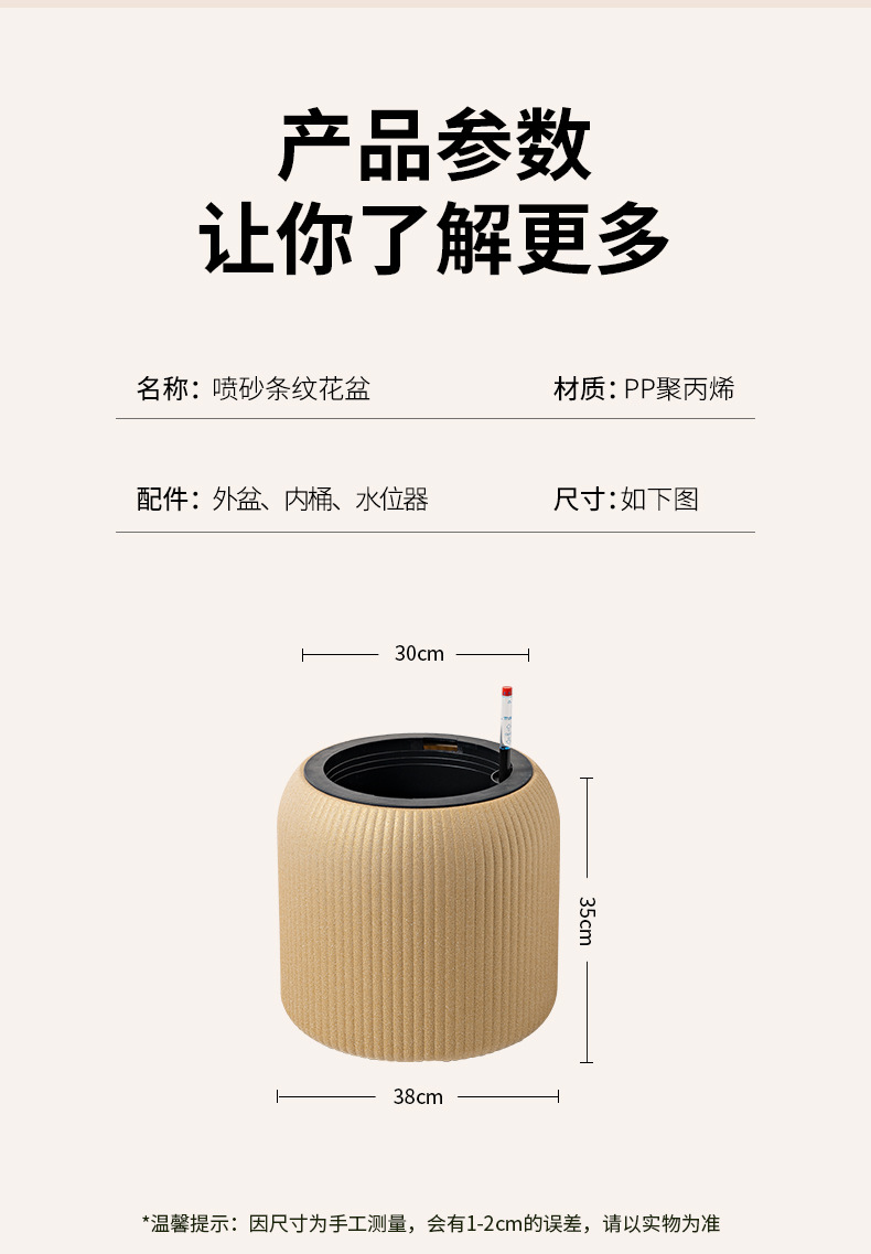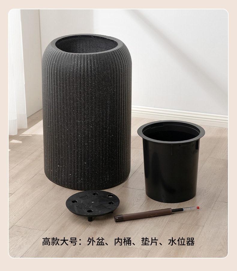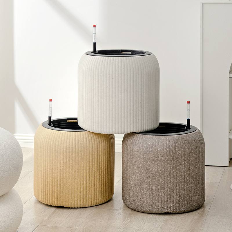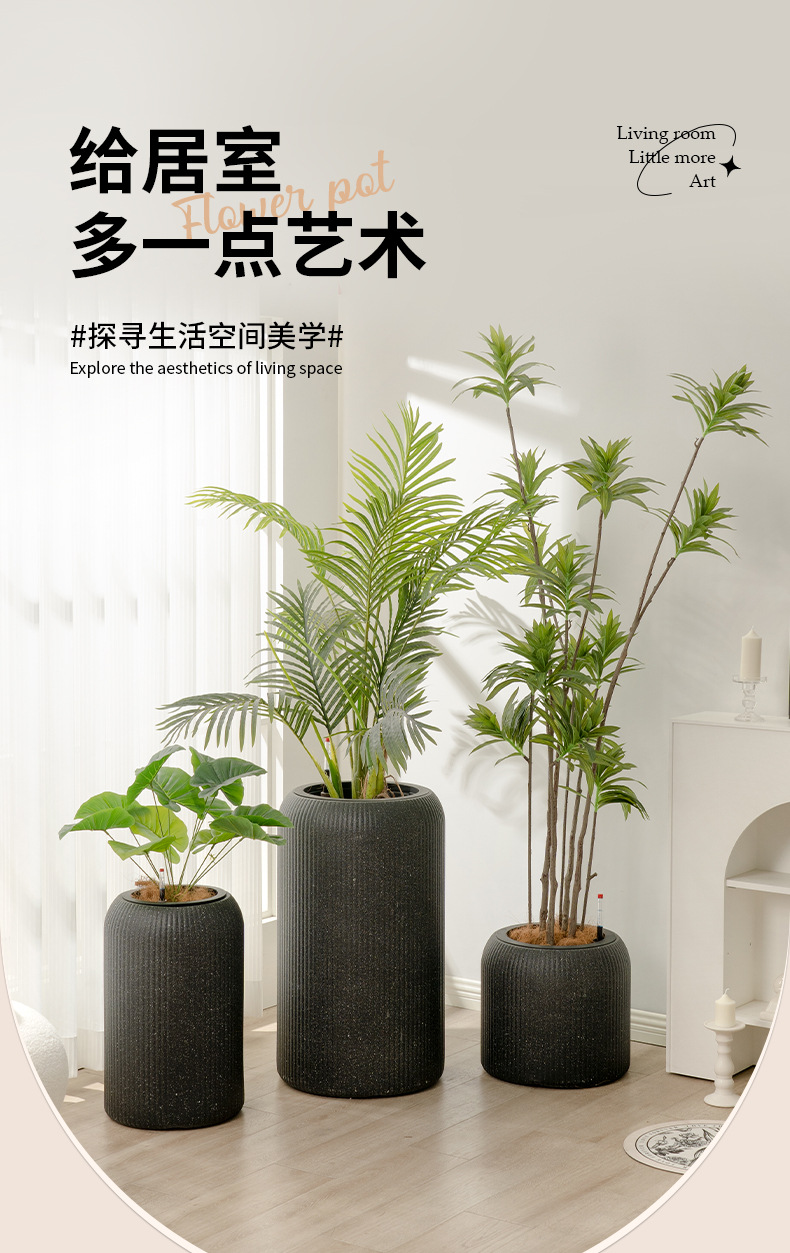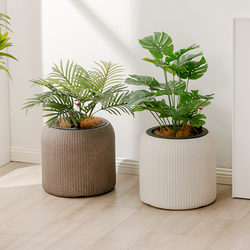 喷砂条纹花盆北欧风现代简约高级感自吸水懒人树脂花盆办公室客厅