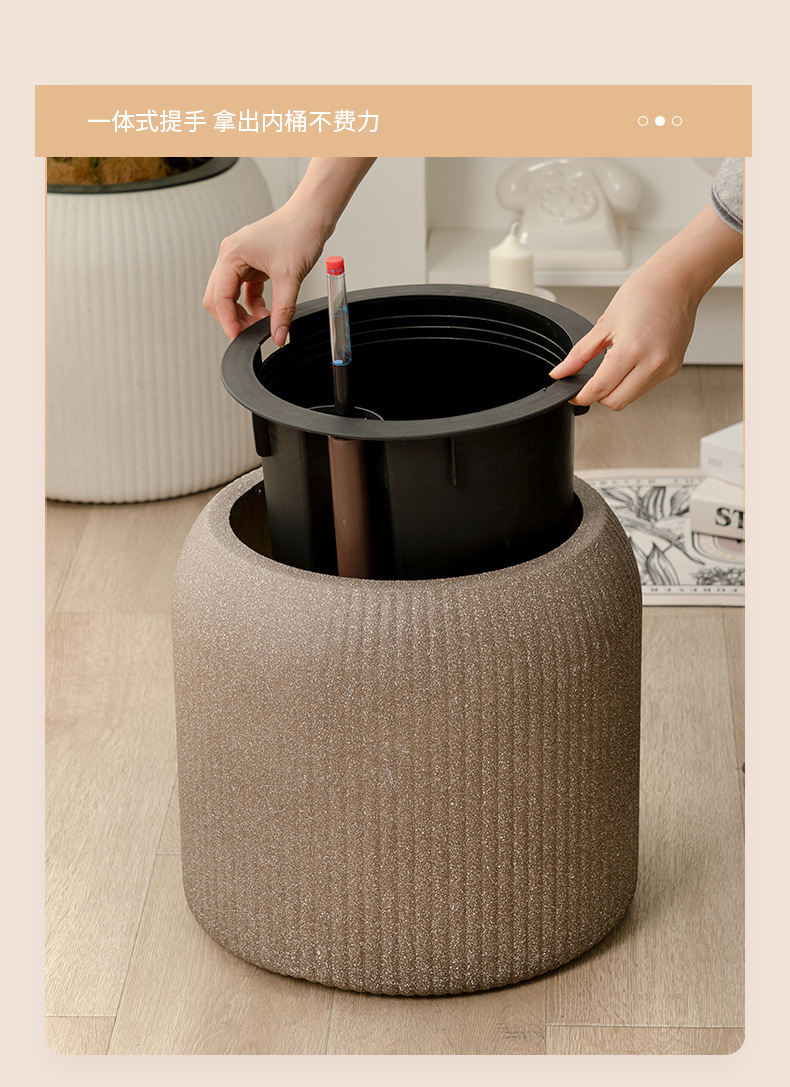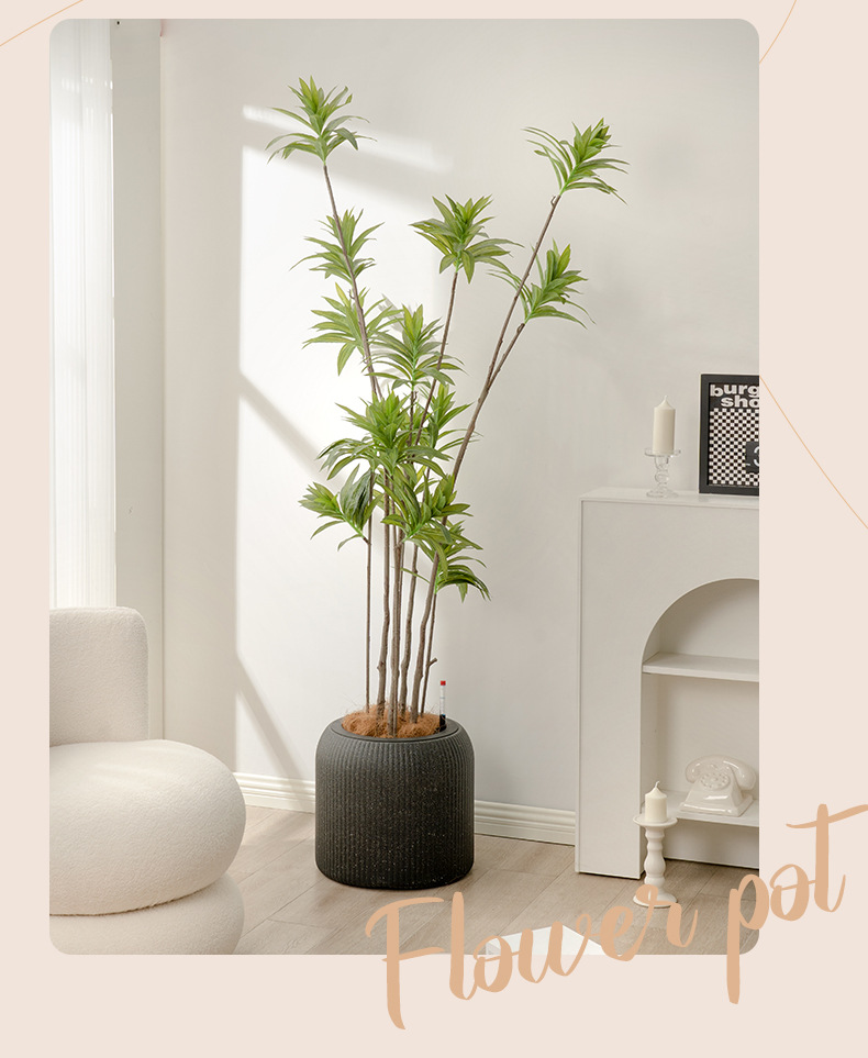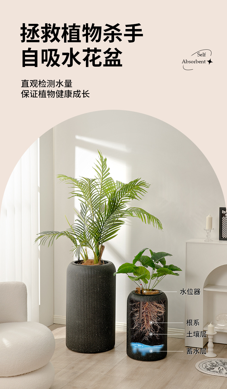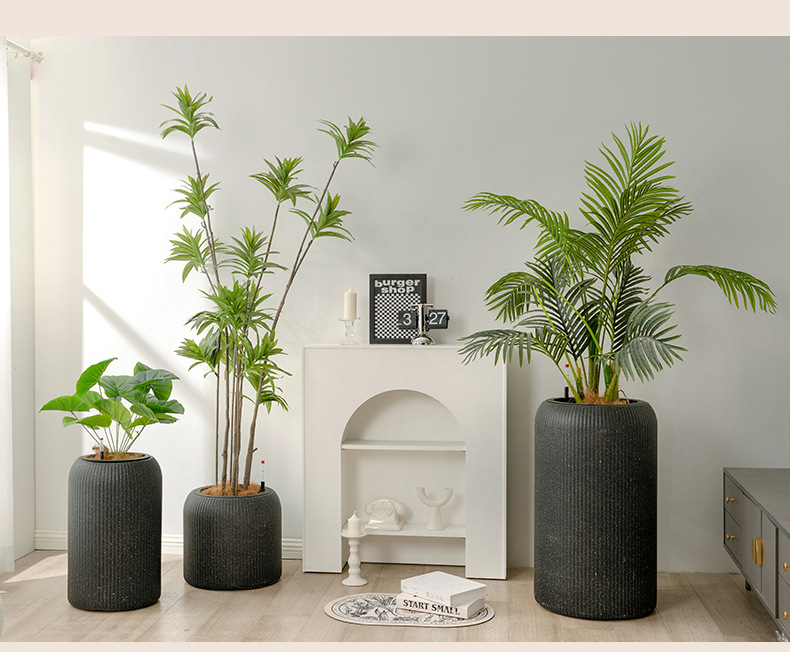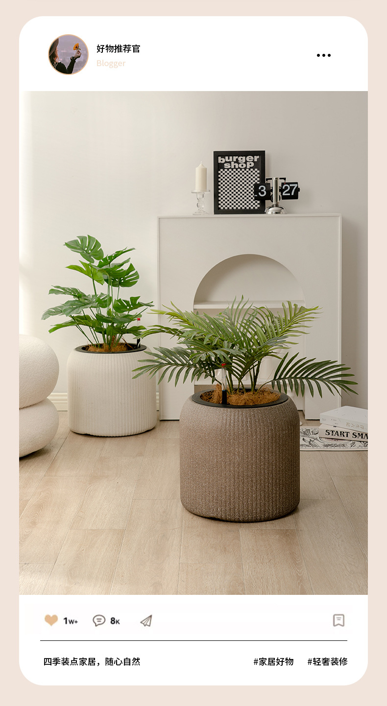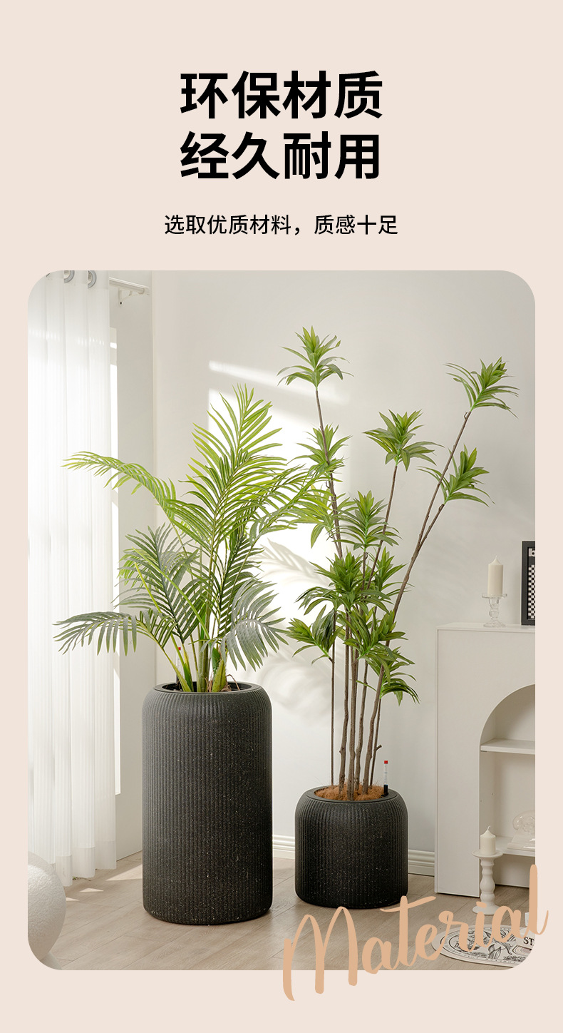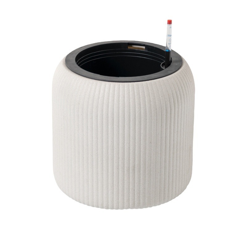 喷砂条纹花盆北欧风现代简约高级感自吸水懒人树脂花盆办公室客厅