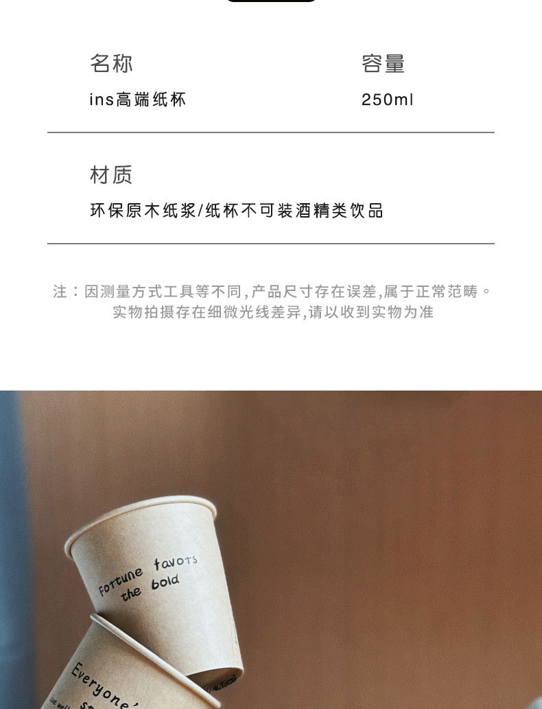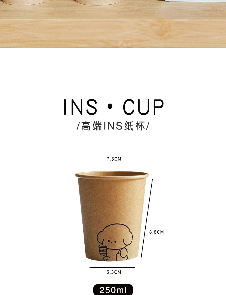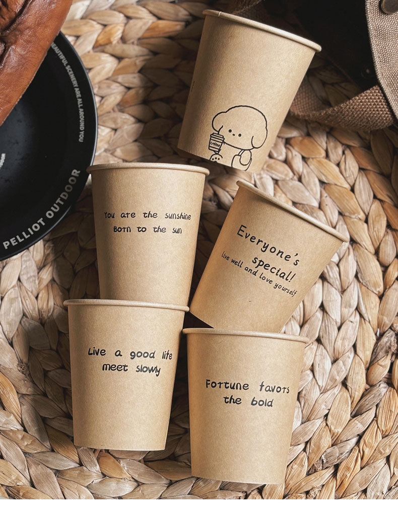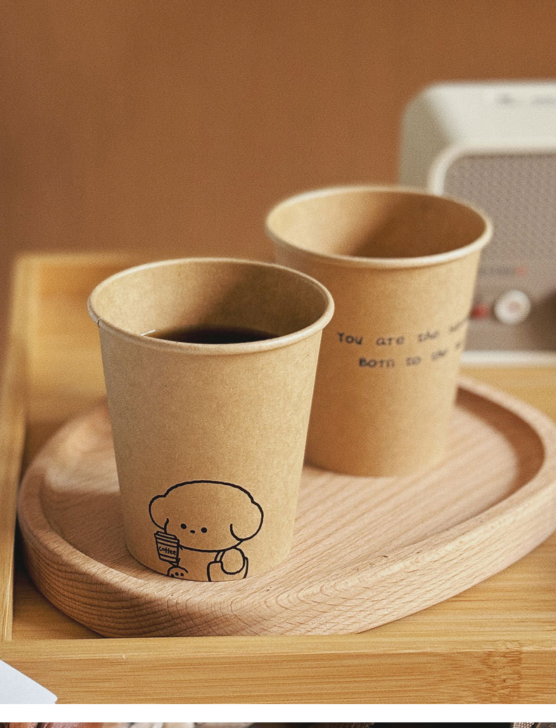 ins风加厚牛皮纸一次性纸杯家用高级感防烫杯子商用待客咖啡纸杯