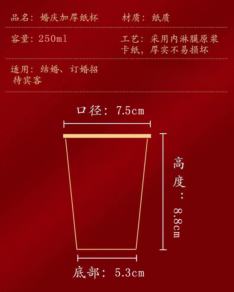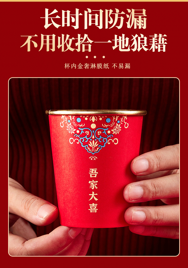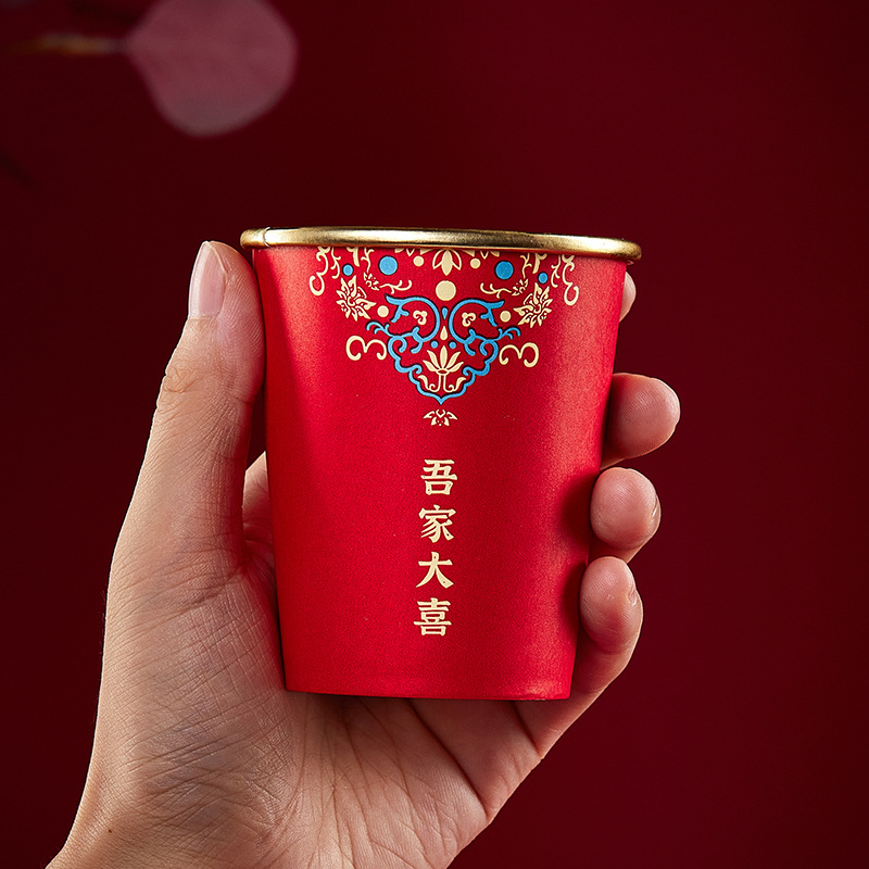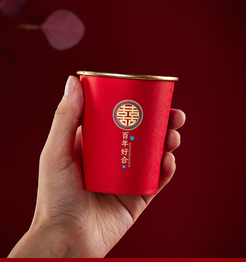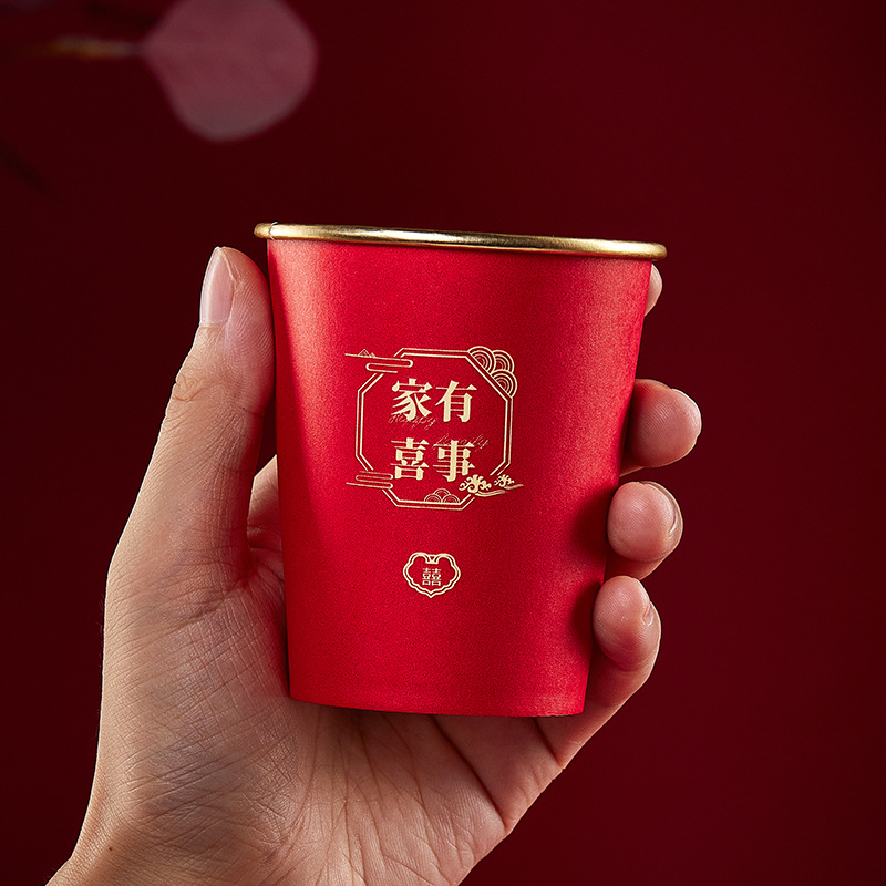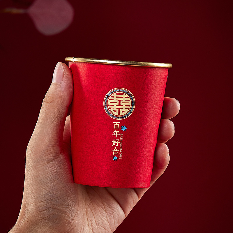 结婚纸杯加厚金箔一次性水杯喜庆婚宴红色家用茶水杯婚礼用品大全