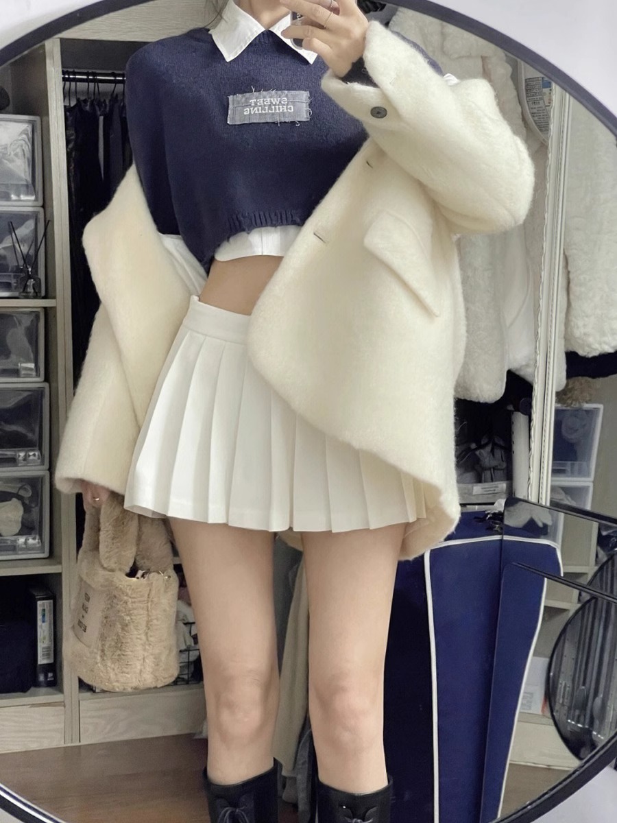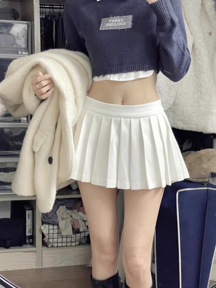 超短小短裙小个子jk百褶裙高腰a字半身裙女夏季白色显瘦超短裙