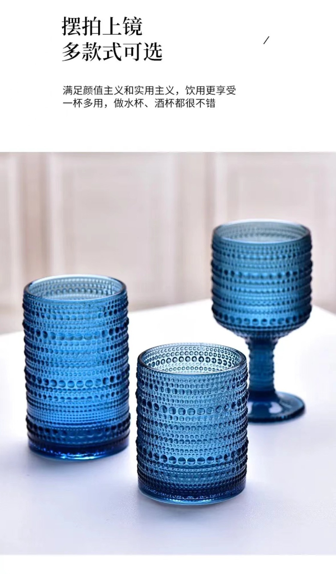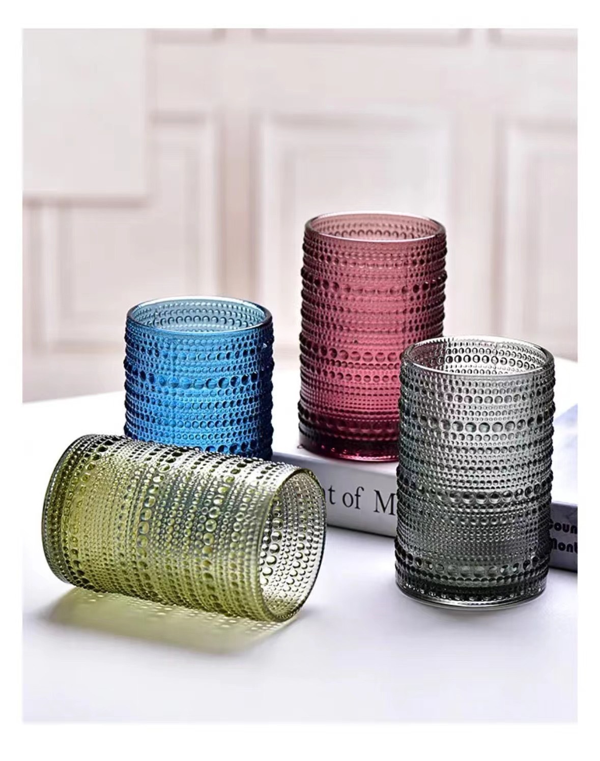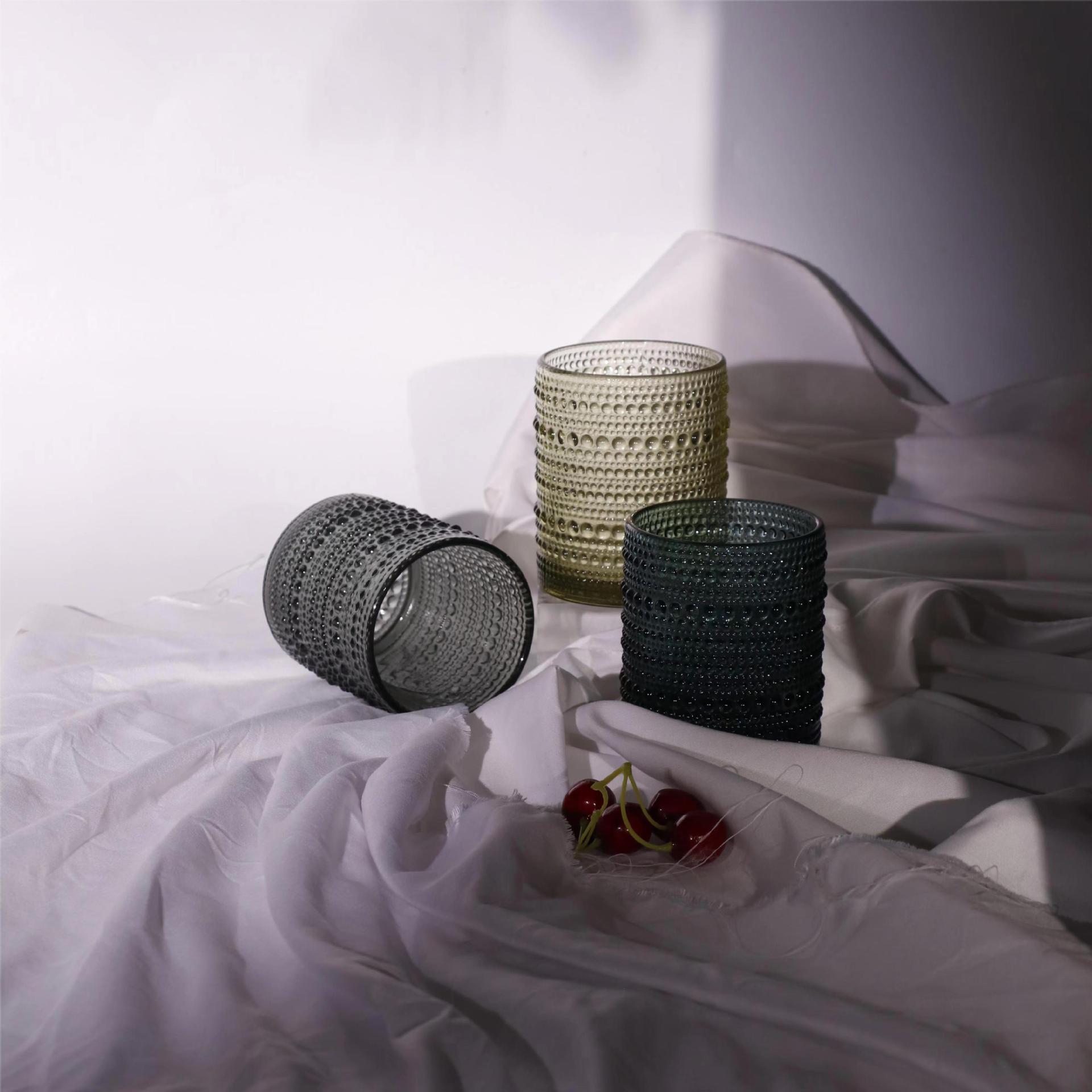 浮雕彩色珠点玻璃杯酒店漱口杯洗漱杯果汁杯厂家直销复古喝水杯子