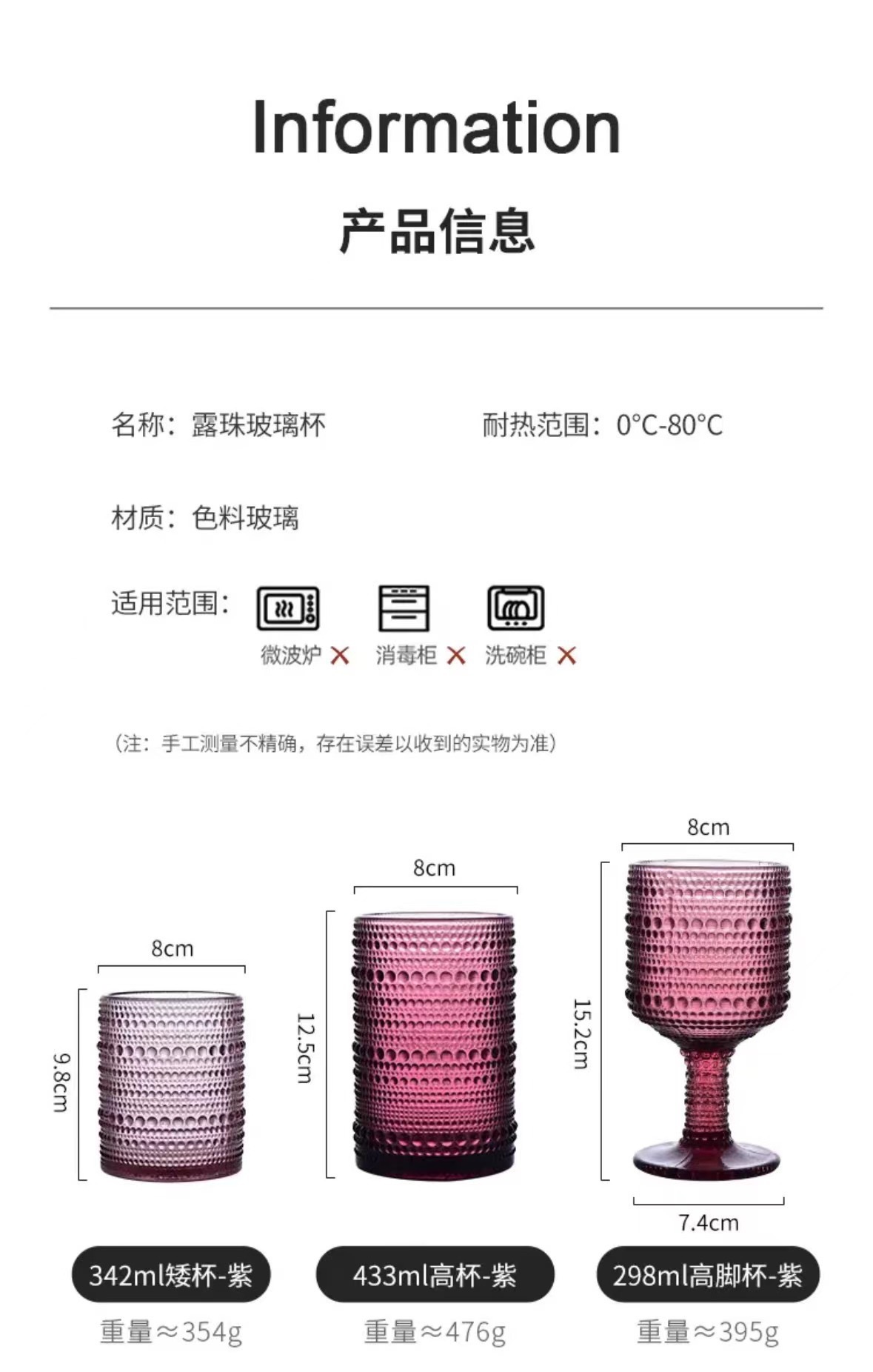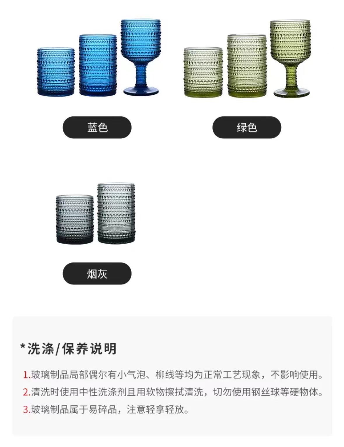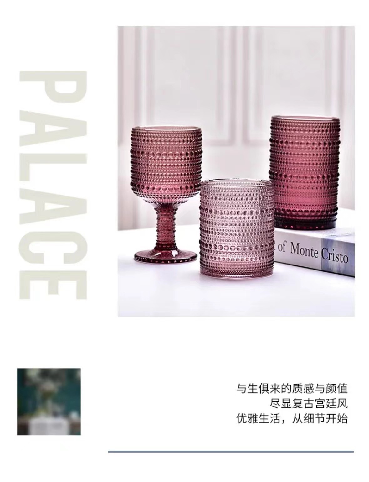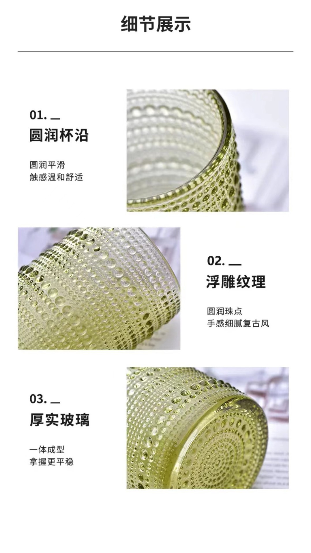 浮雕彩色珠点玻璃杯酒店漱口杯洗漱杯果汁杯厂家直销复古喝水杯子