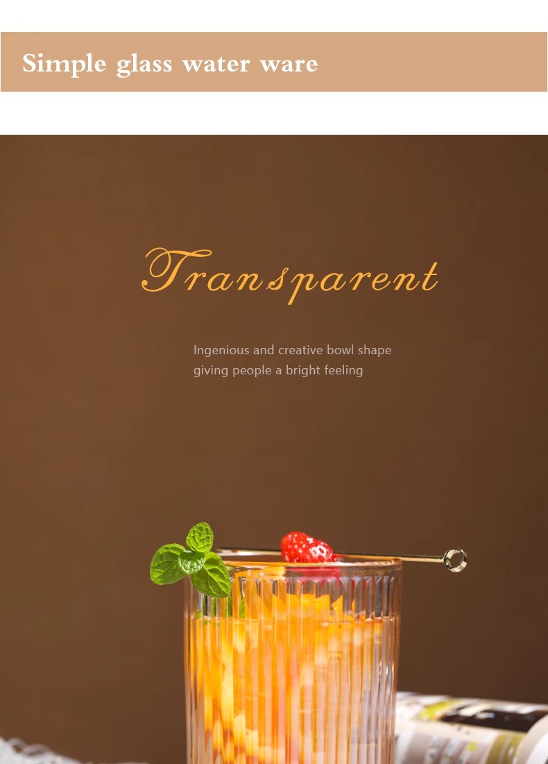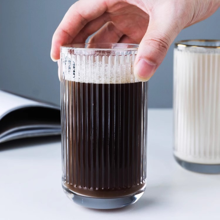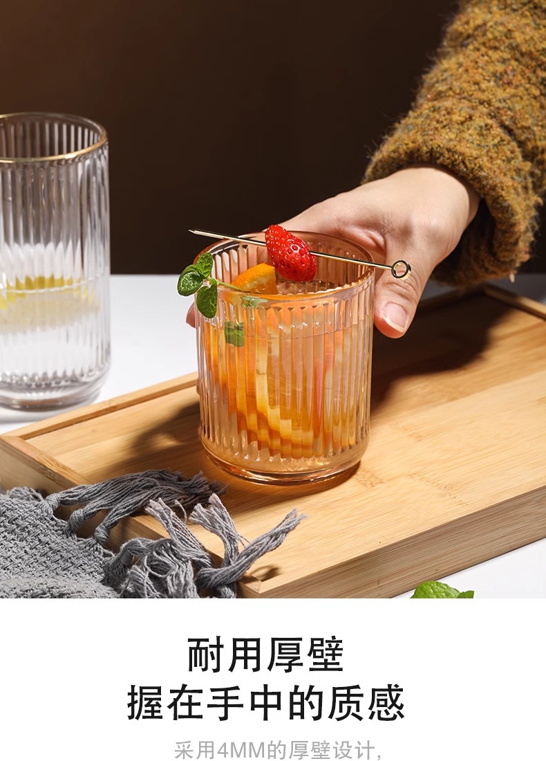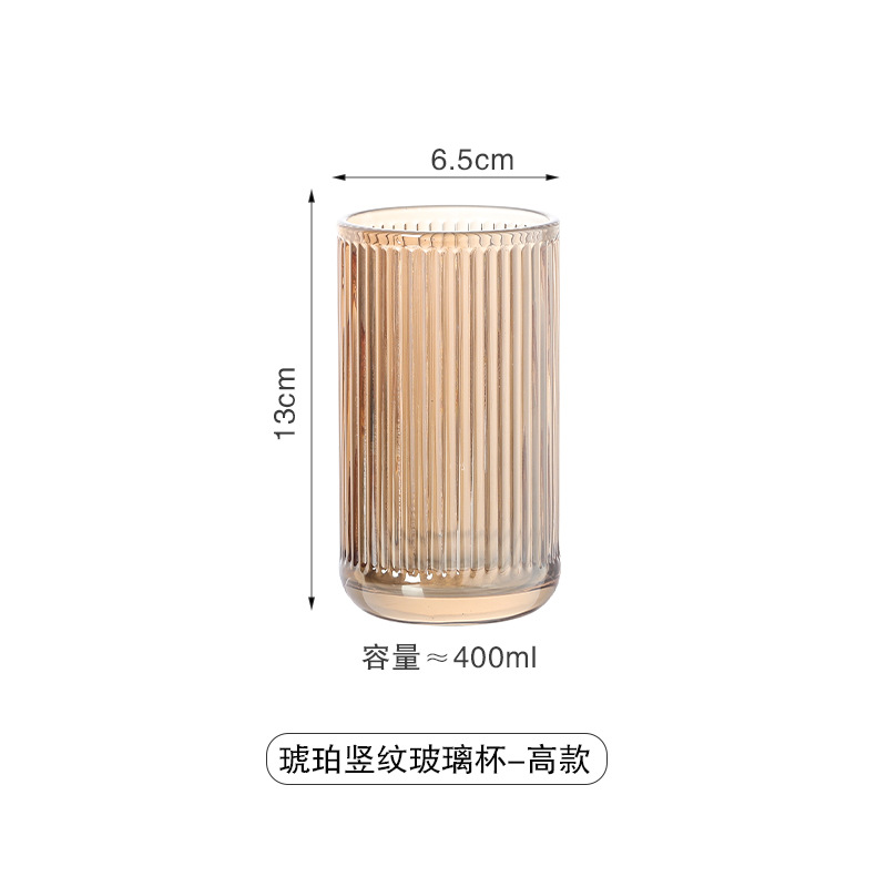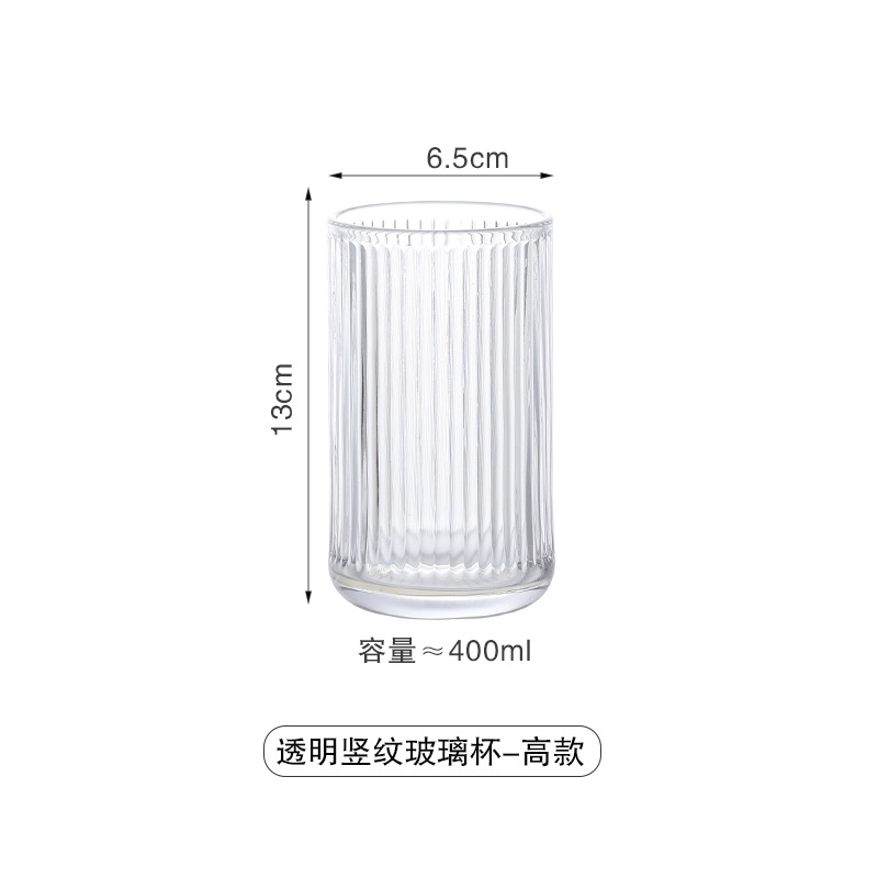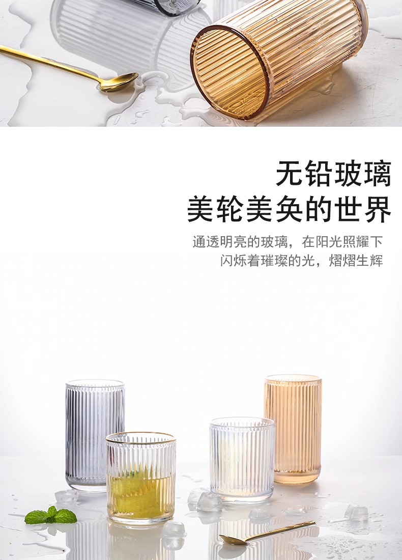 竖纹玻璃杯高颜值水杯啤酒杯餐厅茶杯子家用饮料咖啡杯漱口批发