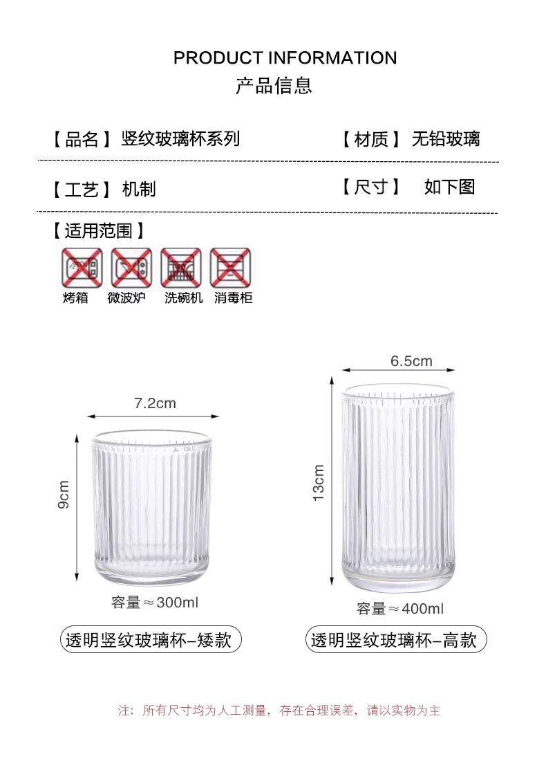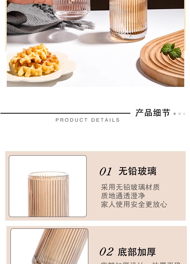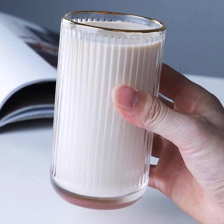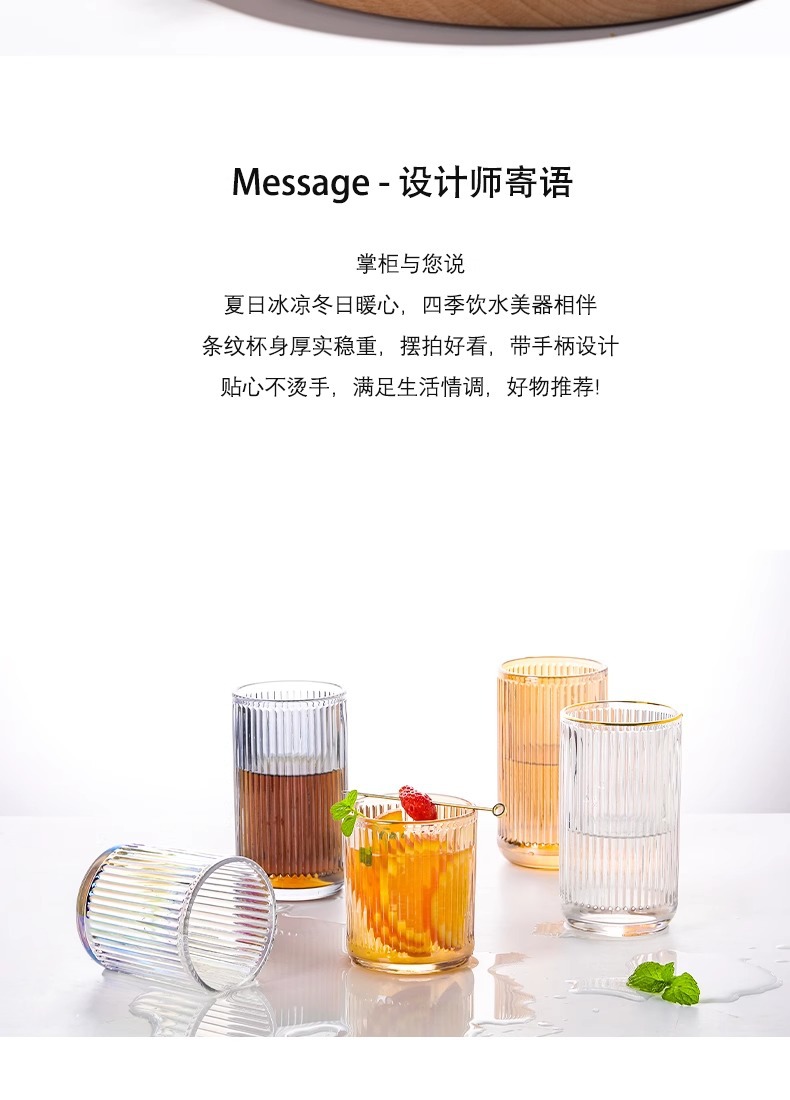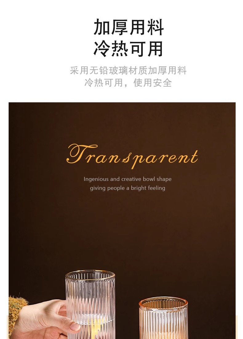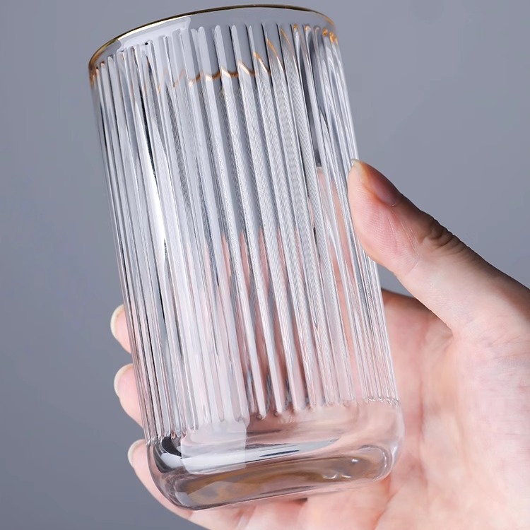 竖纹玻璃杯高颜值水杯啤酒杯餐厅茶杯子家用饮料咖啡杯漱口批发