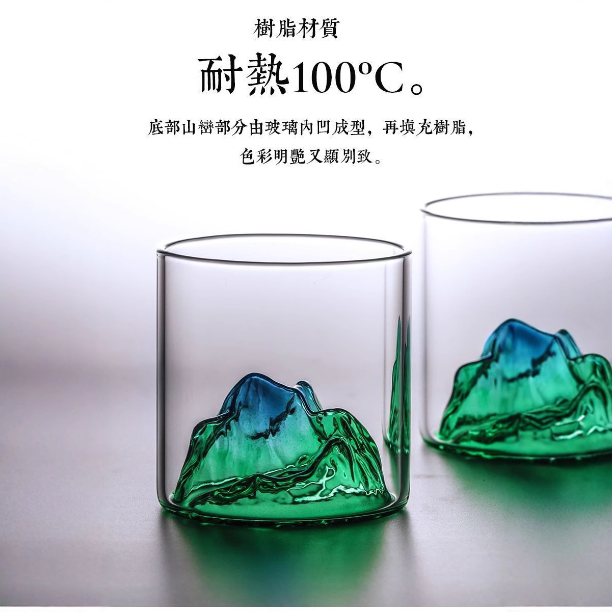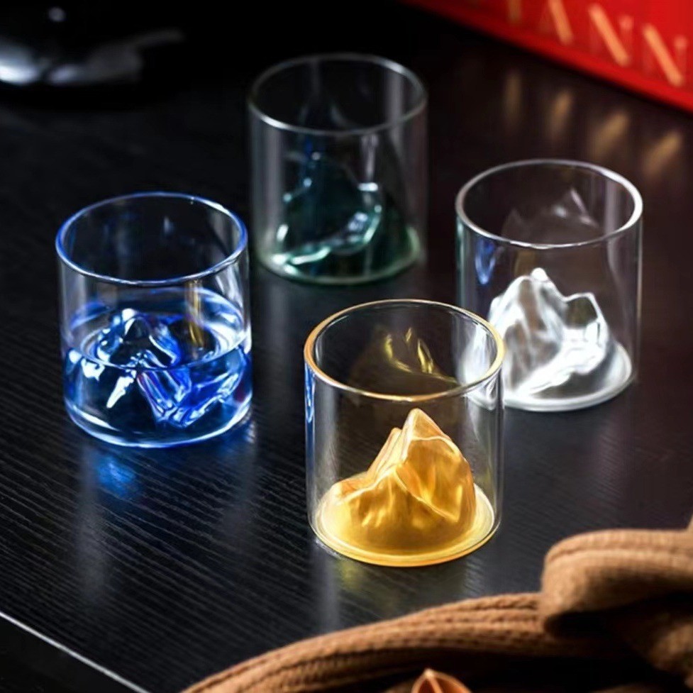 彩色观山杯日式富士山玻璃杯子咖啡杯茶杯威士忌酒杯家用主人茶杯