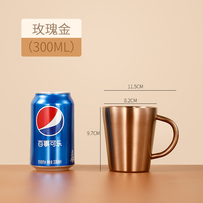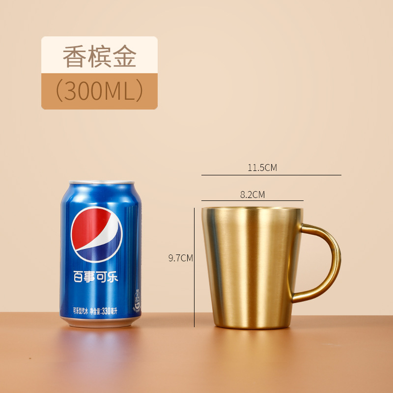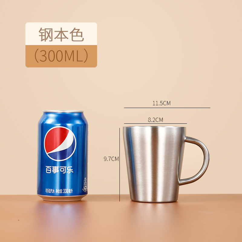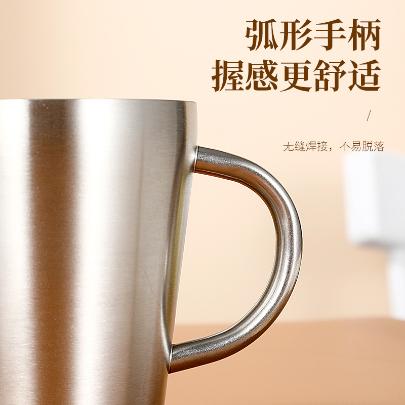 304双层不锈钢水杯带把手牛奶咖啡杯啤酒杯隔热家用早餐马克口杯