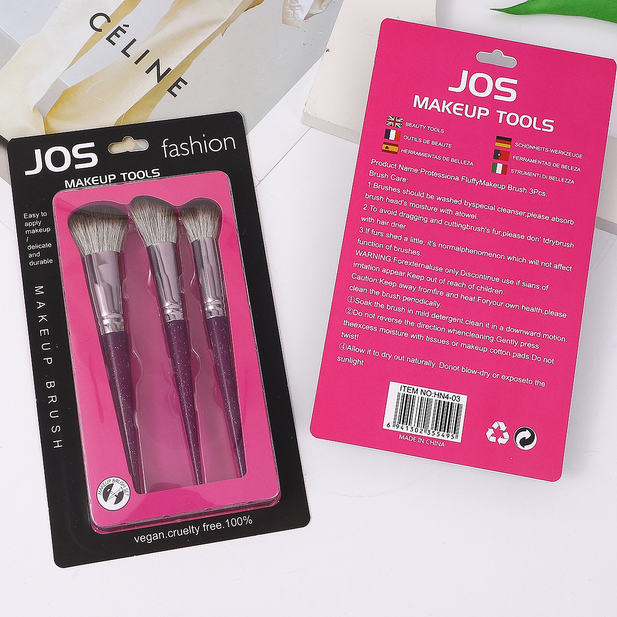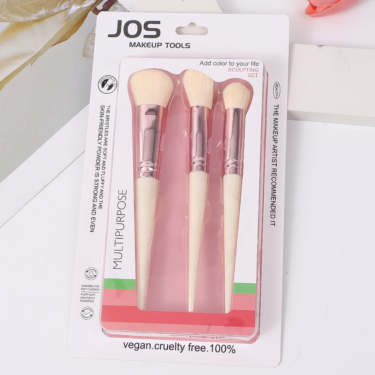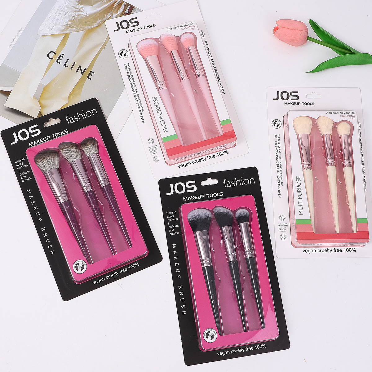 JOS跨境热销3支装化妆刷旅行便携软毛化妆毛刷脸部刷美妆工具