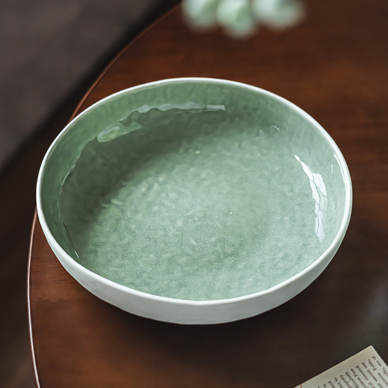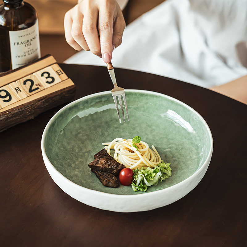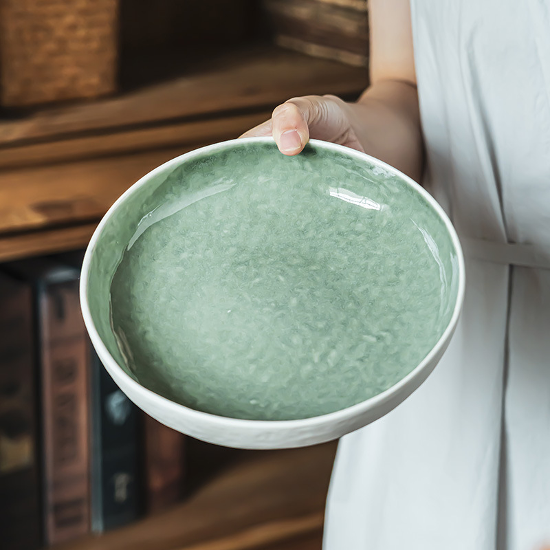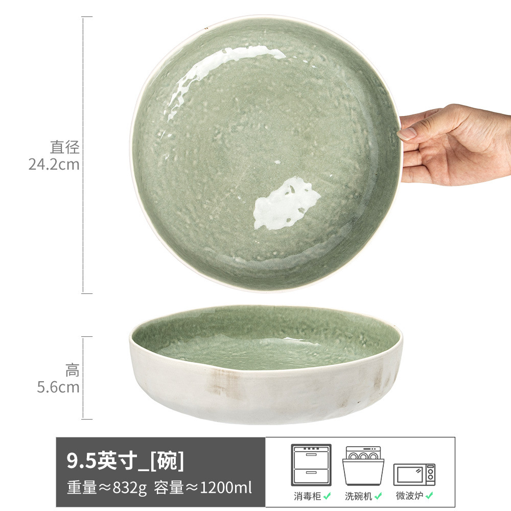 复古窑变绿色陶瓷碗家用餐具大碗浅碗创意个性大号汤碗水果沙拉碗