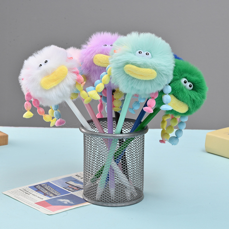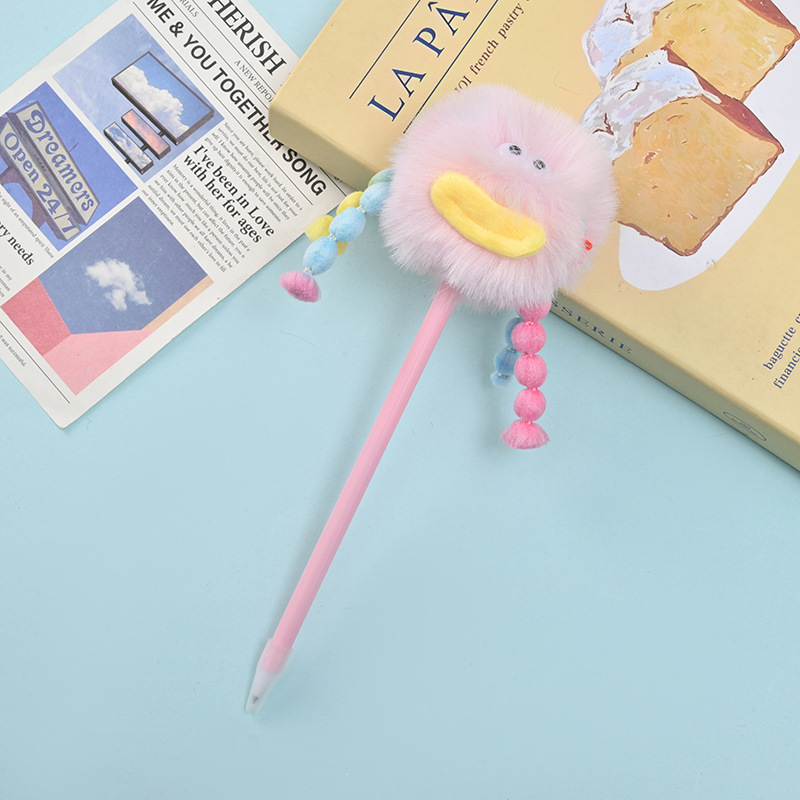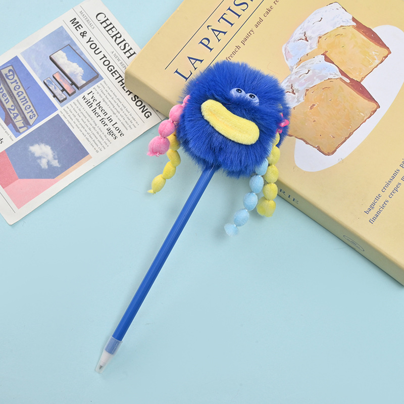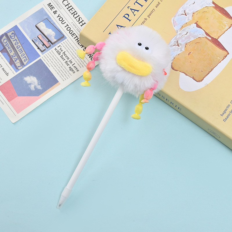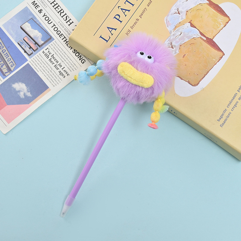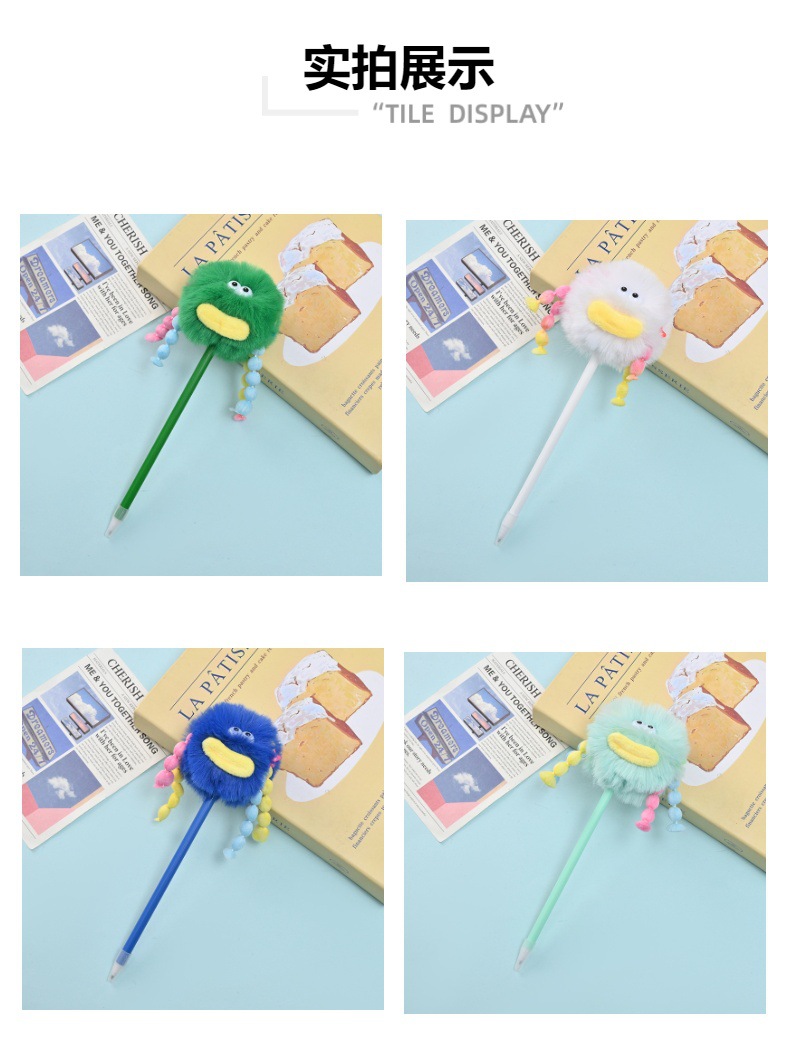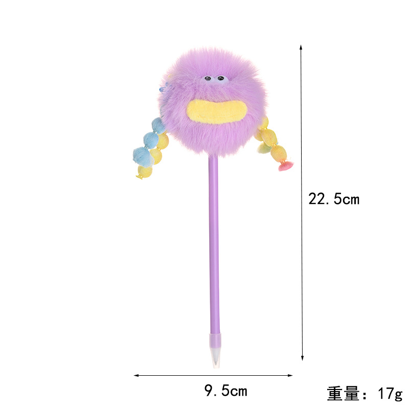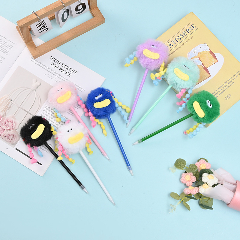 跨境搞怪丑萌毛球圆珠笔卡通毛绒笔韩版个性毛球文具笔学生礼品笔