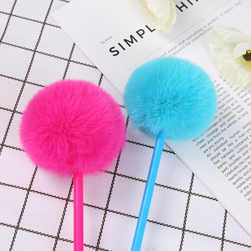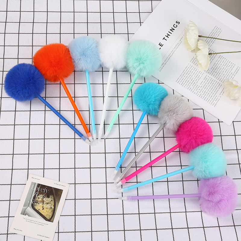 创意新款塑料毛球笔甜美可爱少女心毛绒圆珠笔办公学生解压手账笔