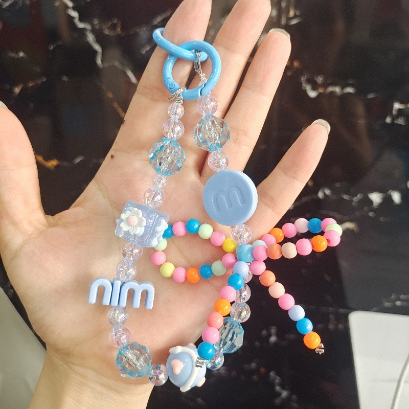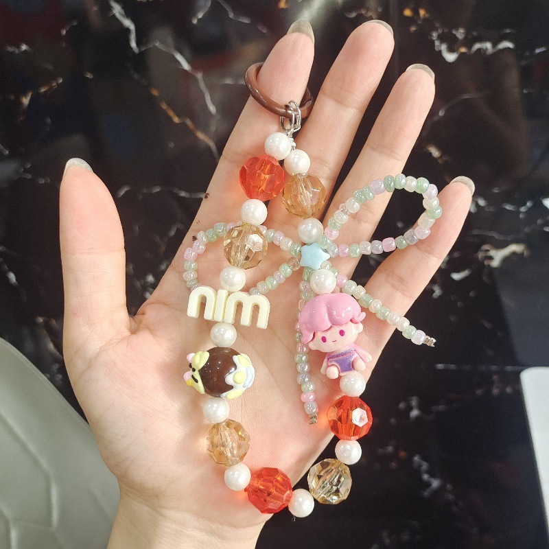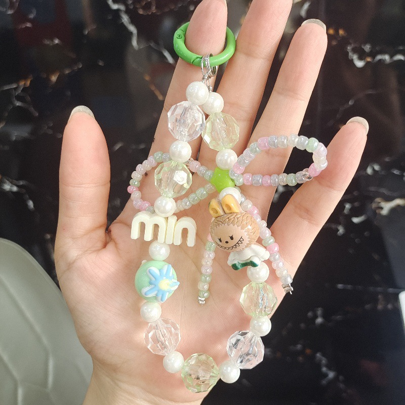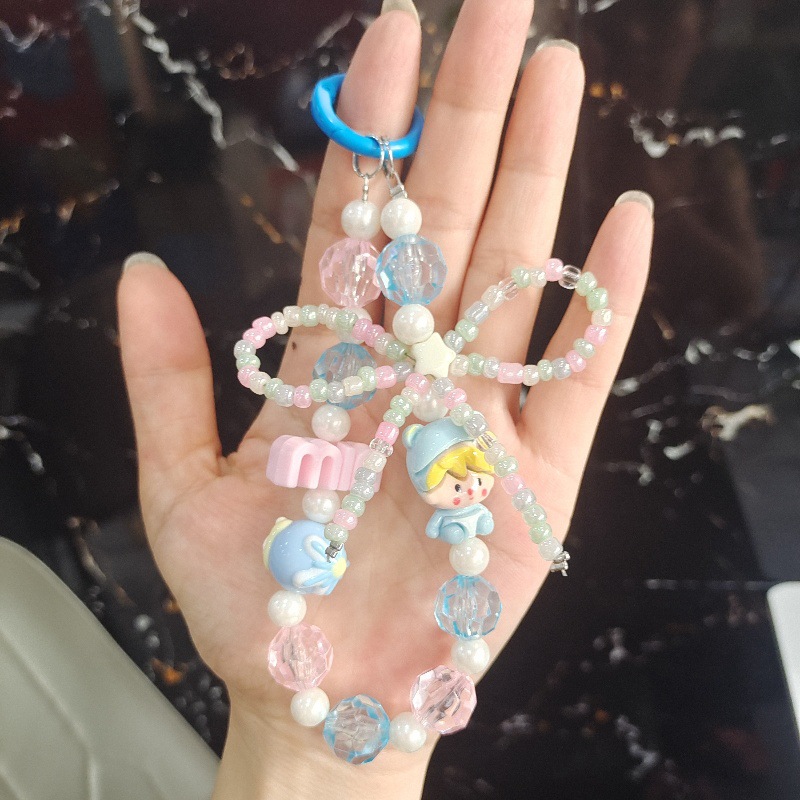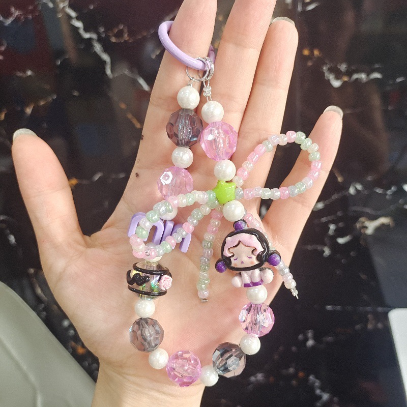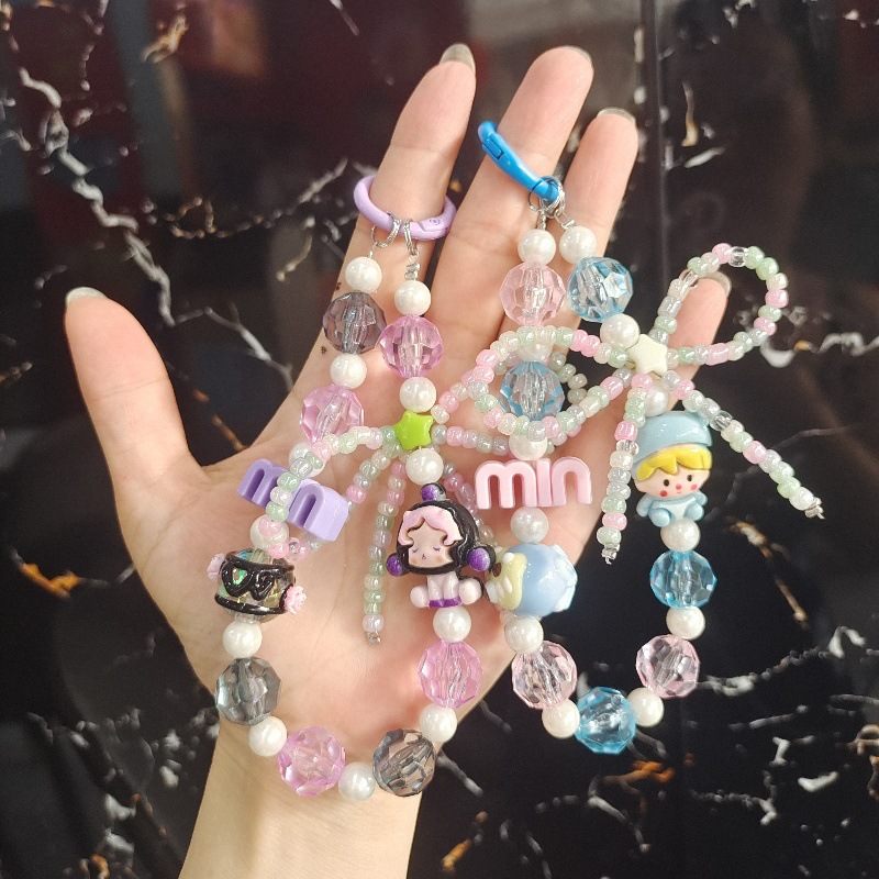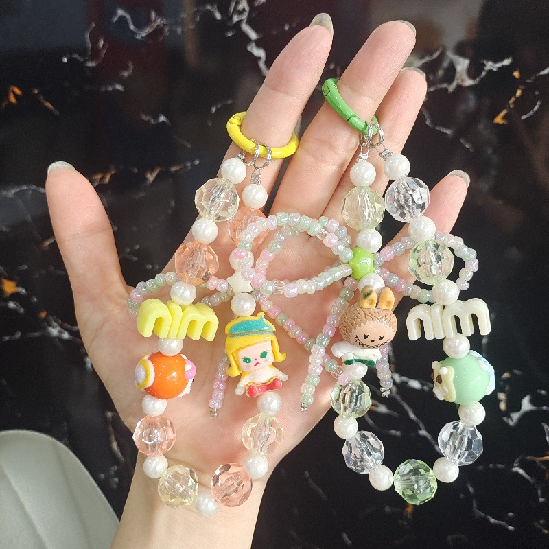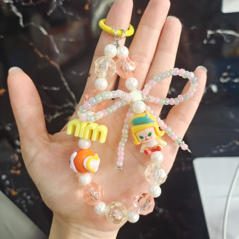 新款卡通泡泡玛特萌粒手机链手绘珠串珠蝴蝶结盲盒钥匙扣手机挂件