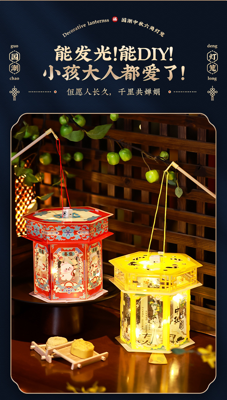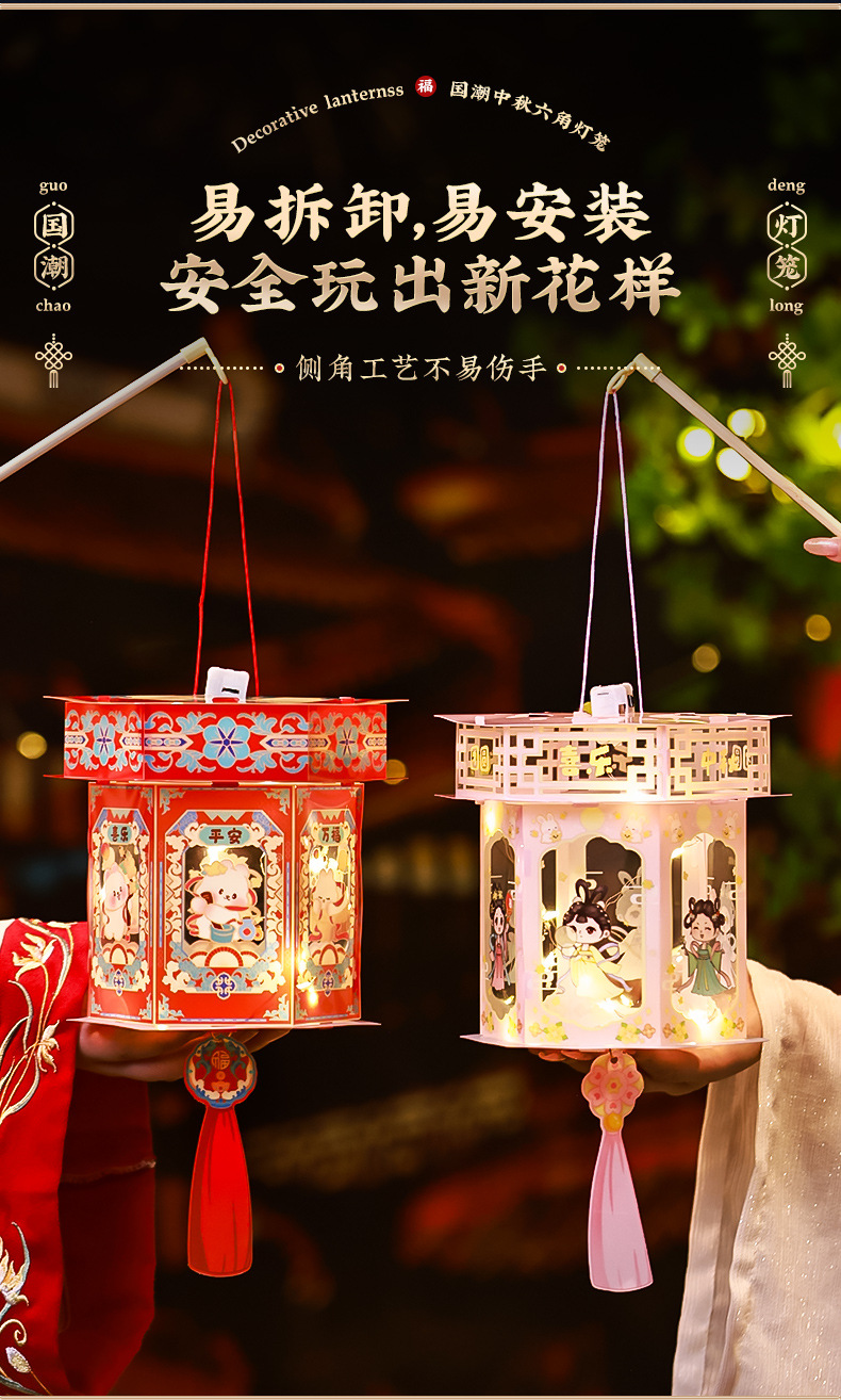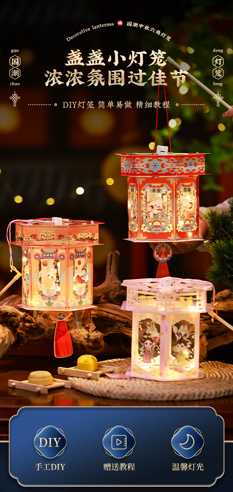 中秋节兔子灯笼2025新款儿童手工diy材料包手提古风发光六角宫灯
