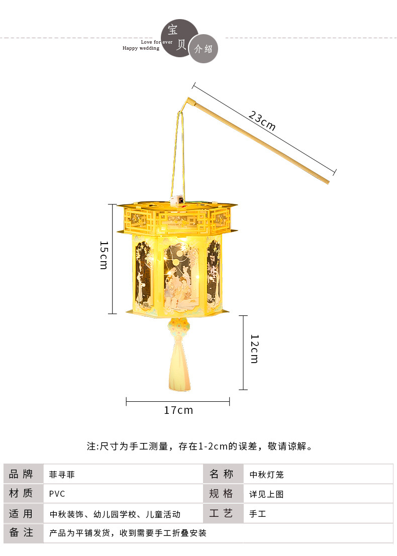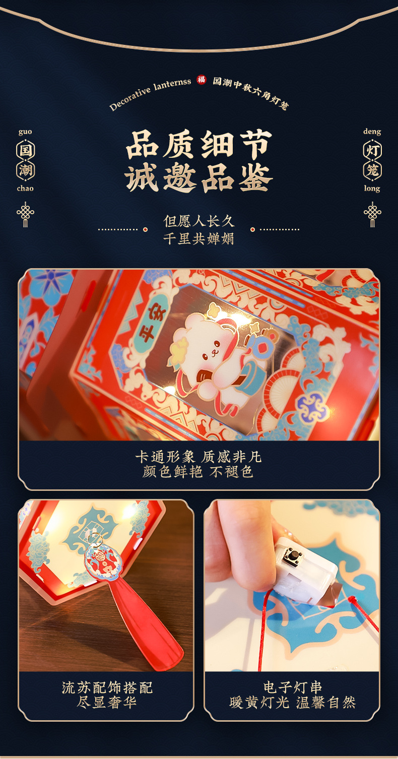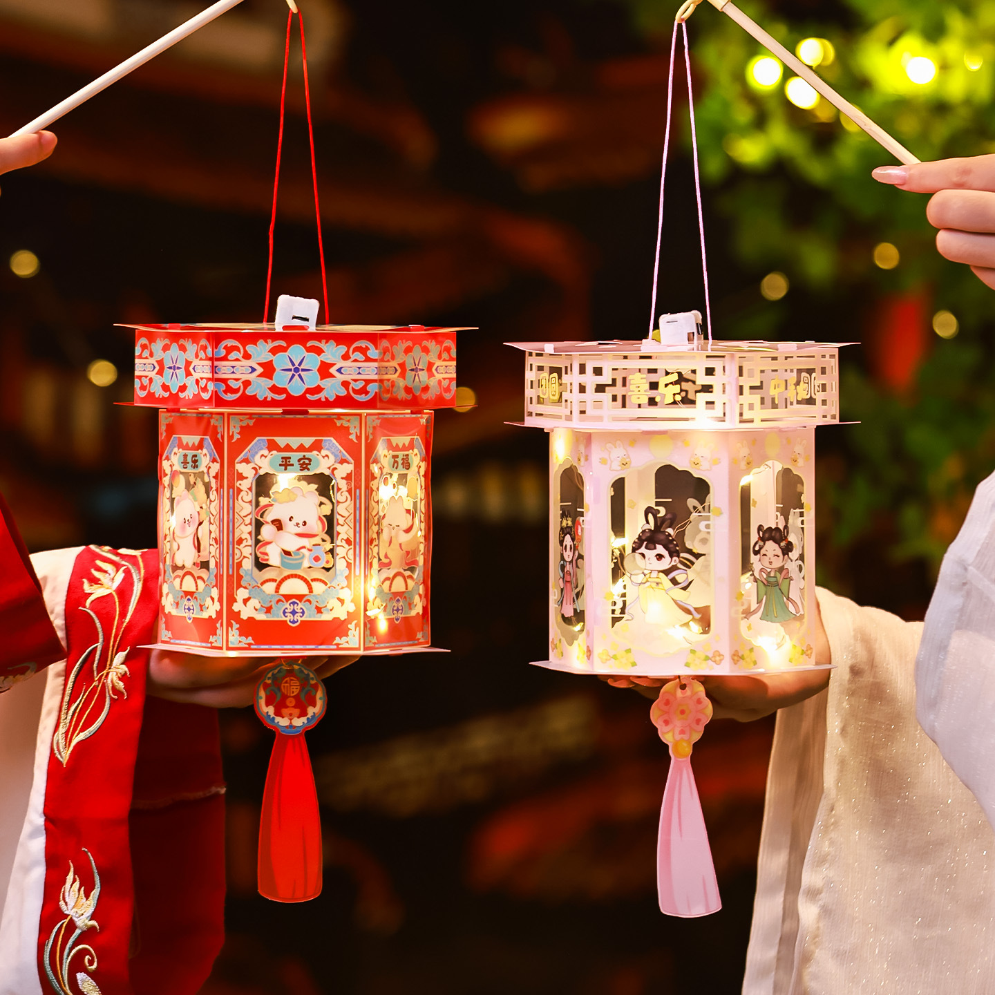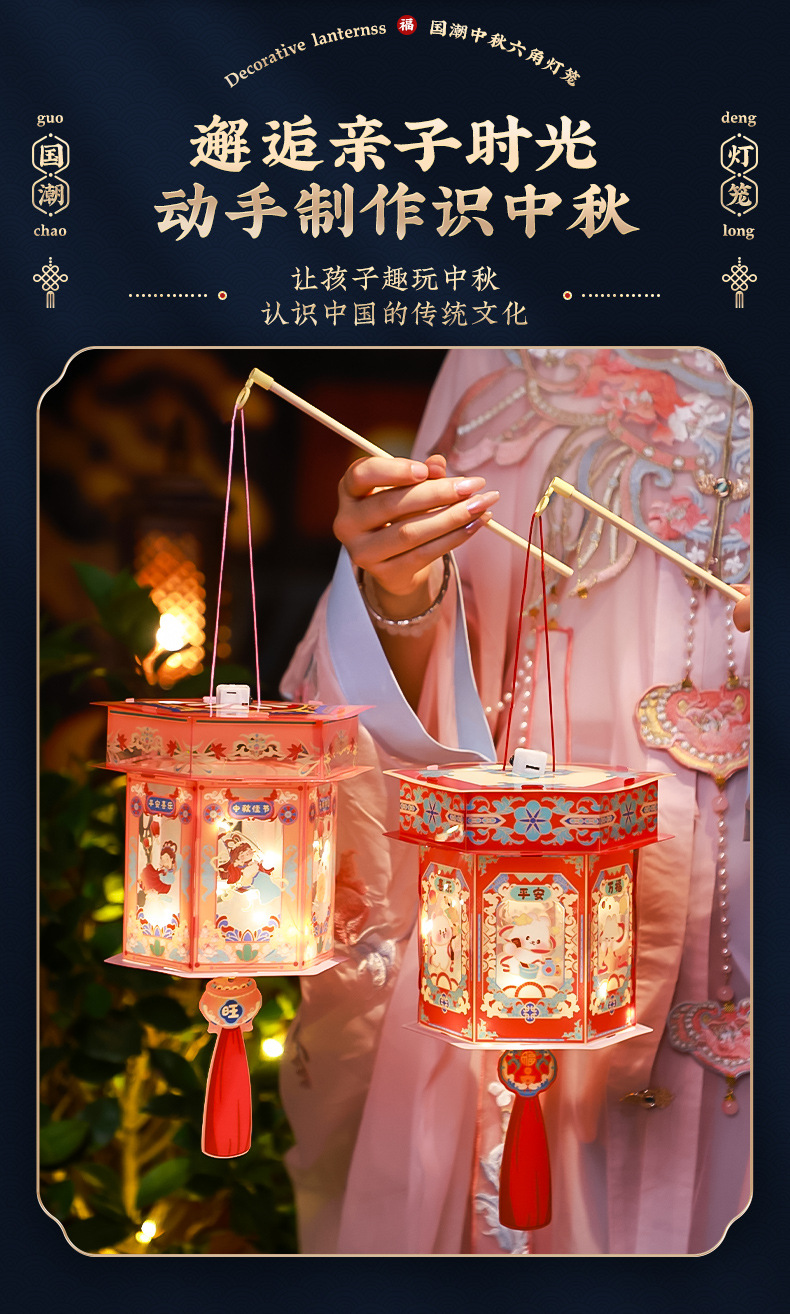 中秋节兔子灯笼2025新款儿童手工diy材料包手提古风发光六角宫灯