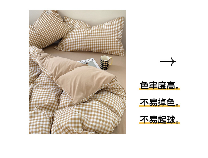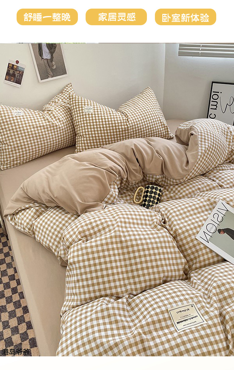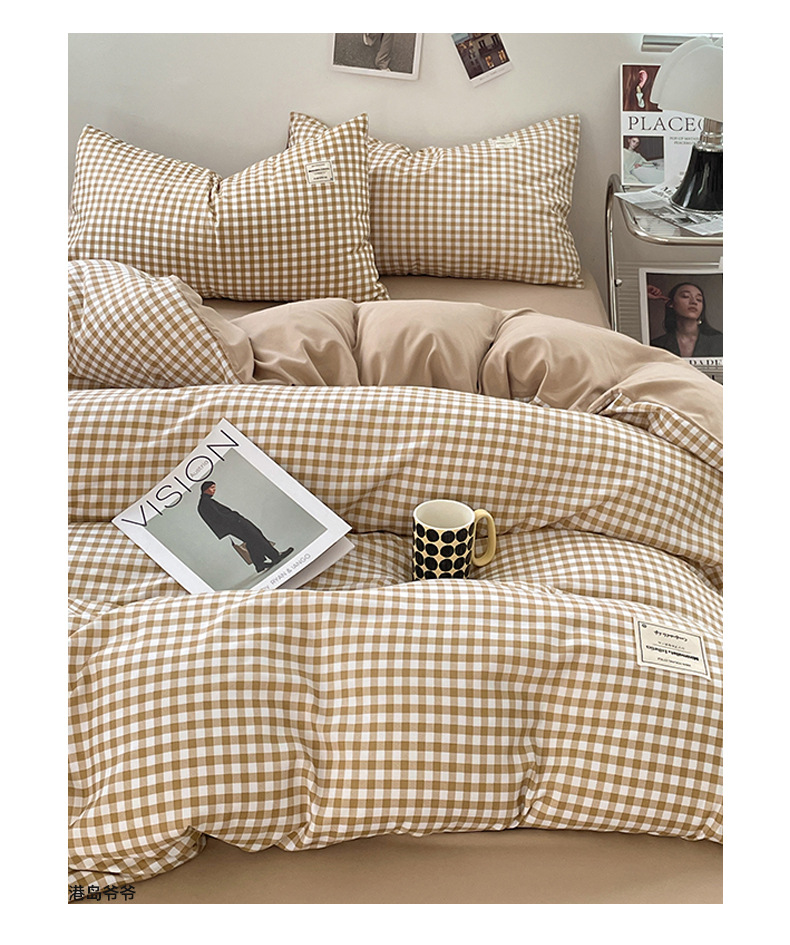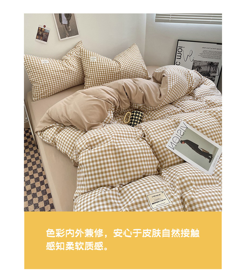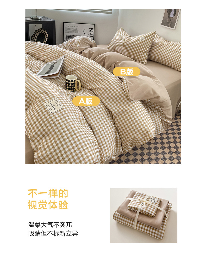 A类格子四件套水洗棉床单被套床上用品被罩床笠学生宿舍三件套
