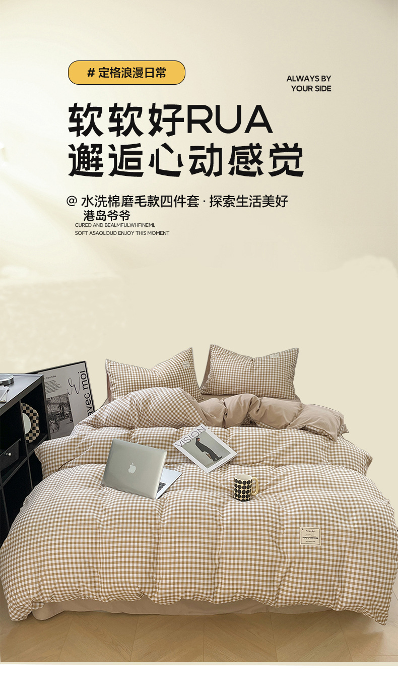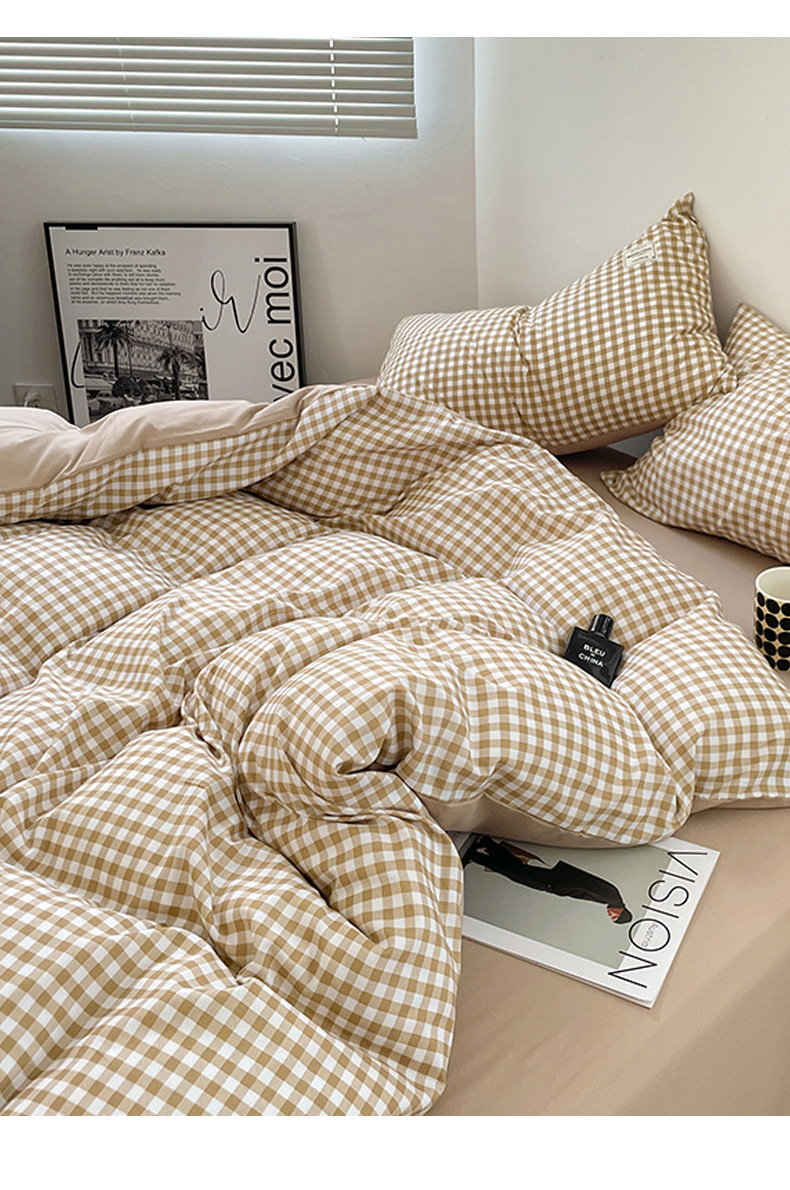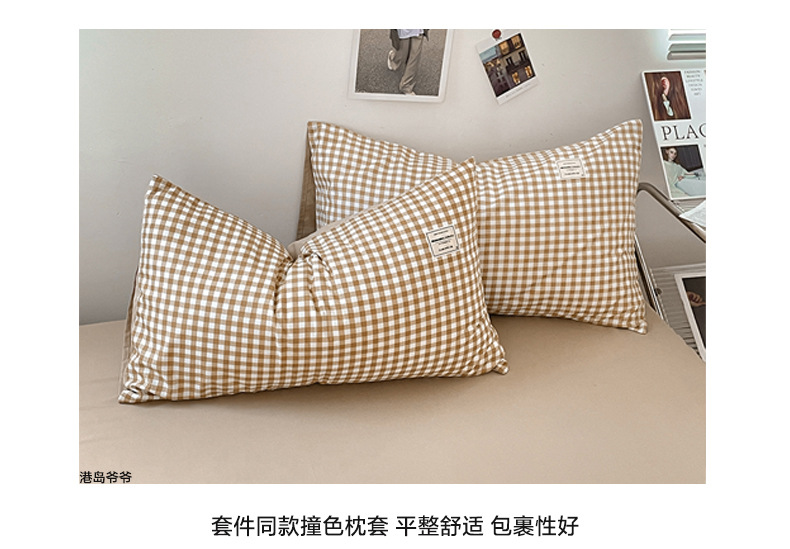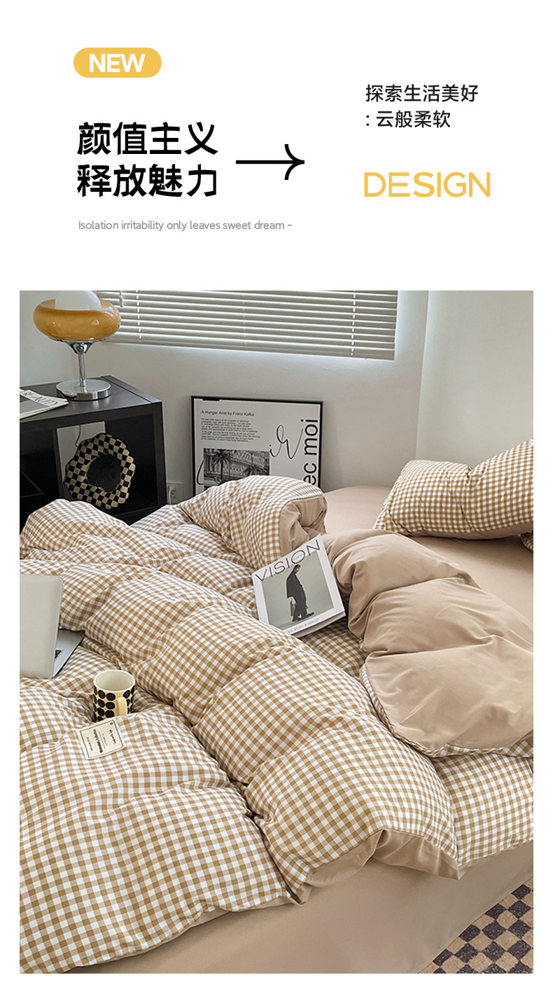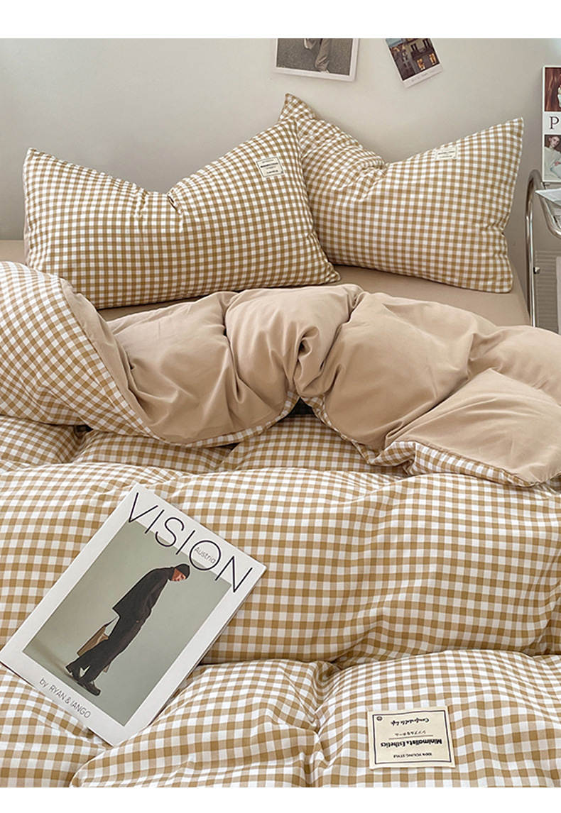 A类格子四件套水洗棉床单被套床上用品被罩床笠学生宿舍三件套