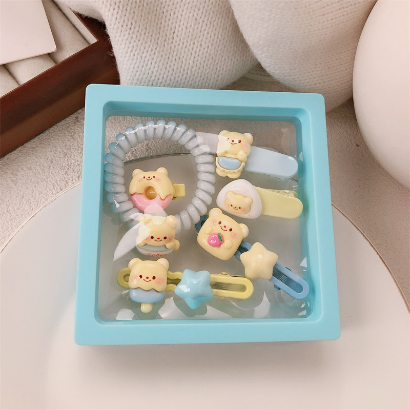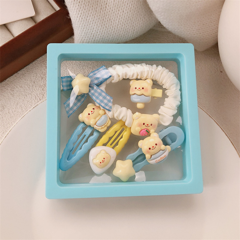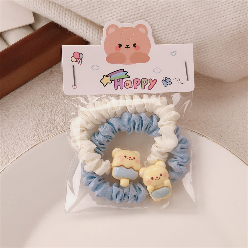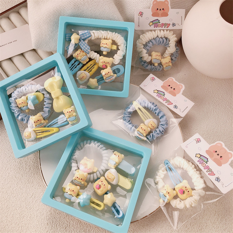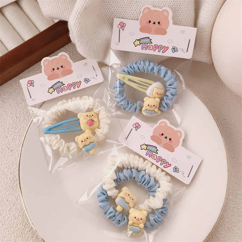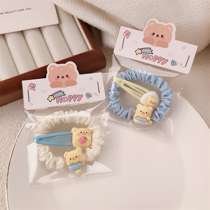 可爱黄油奶黄小熊发饰少女甜美碎发刘海夹高弹力发绳发圈摆摊批发