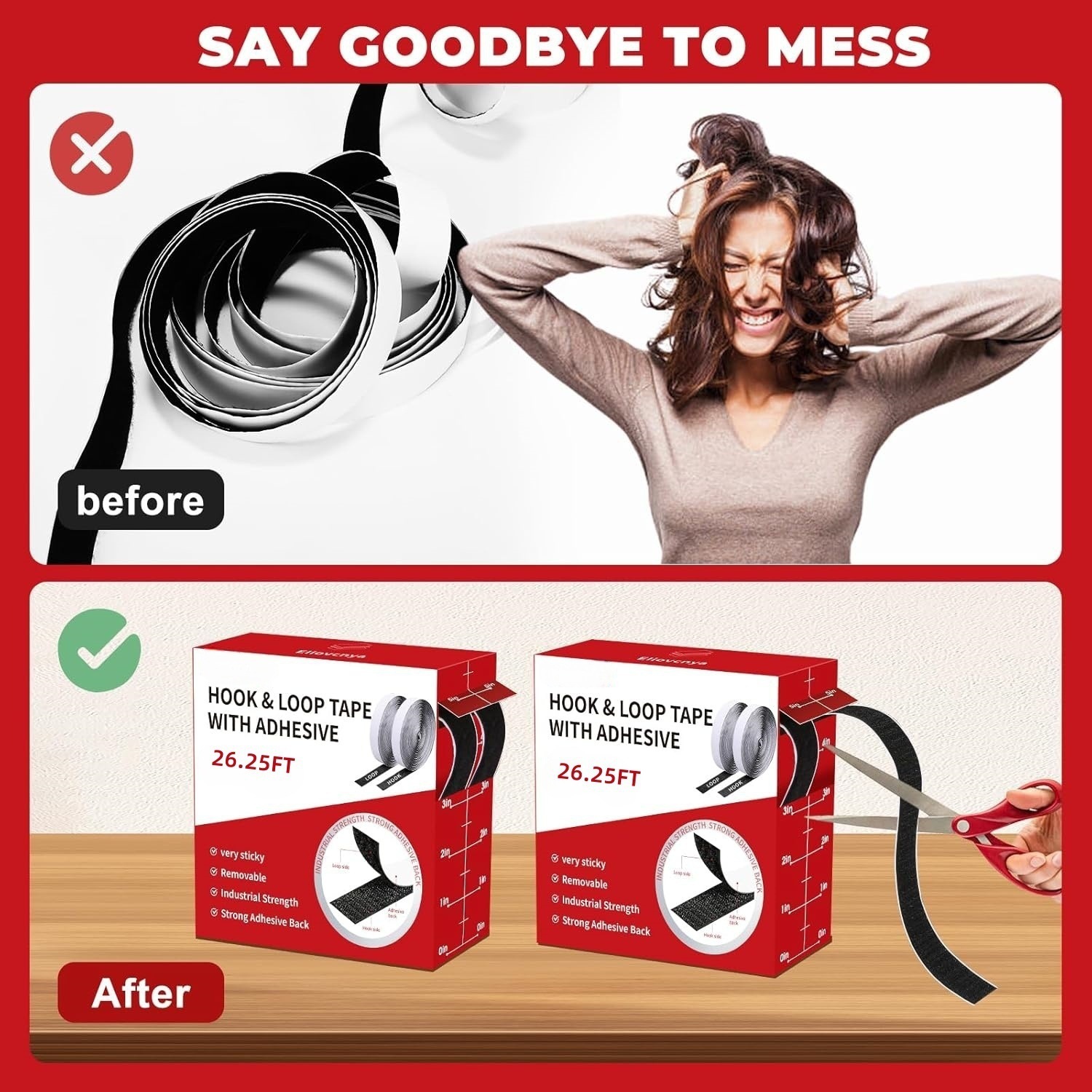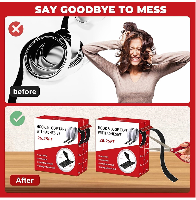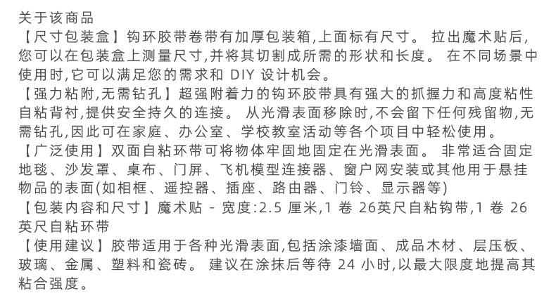 工厂现货跨境亚马逊同款盒装自裁背胶魔术贴高自粘环勾胶带粘扣带