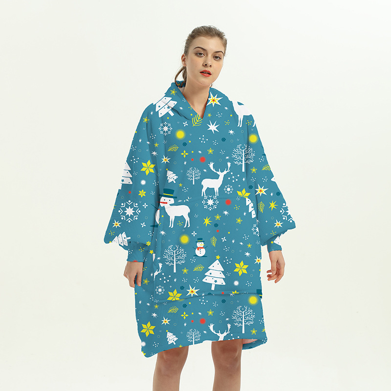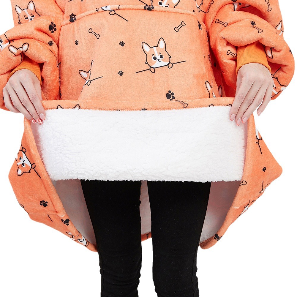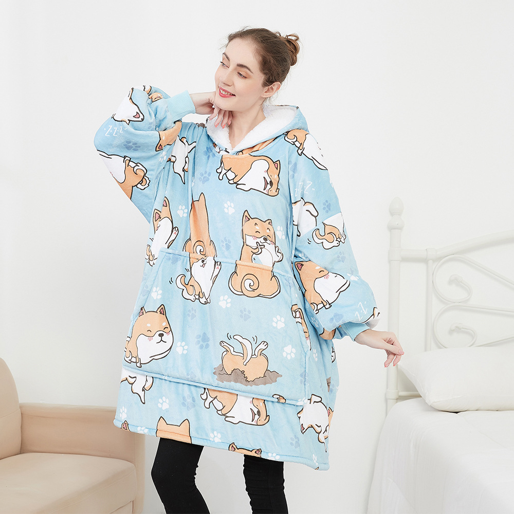 欧美家居休闲大码保暖连帽懒人毯定制法兰羊羔绒双层加绒卫衣跨境
