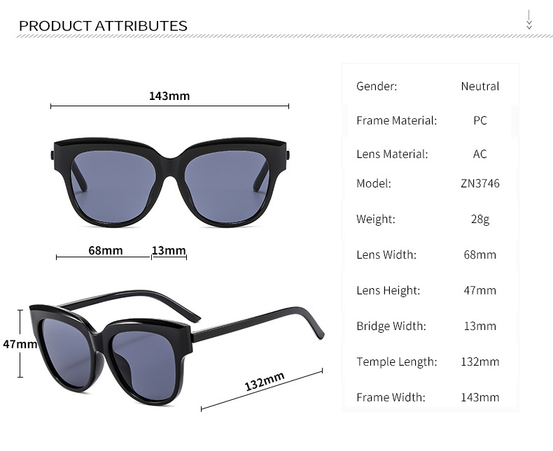 北尘新款时尚男女太阳镜 跨境欧美ins网红墨镜防紫外线太阳镜3746
