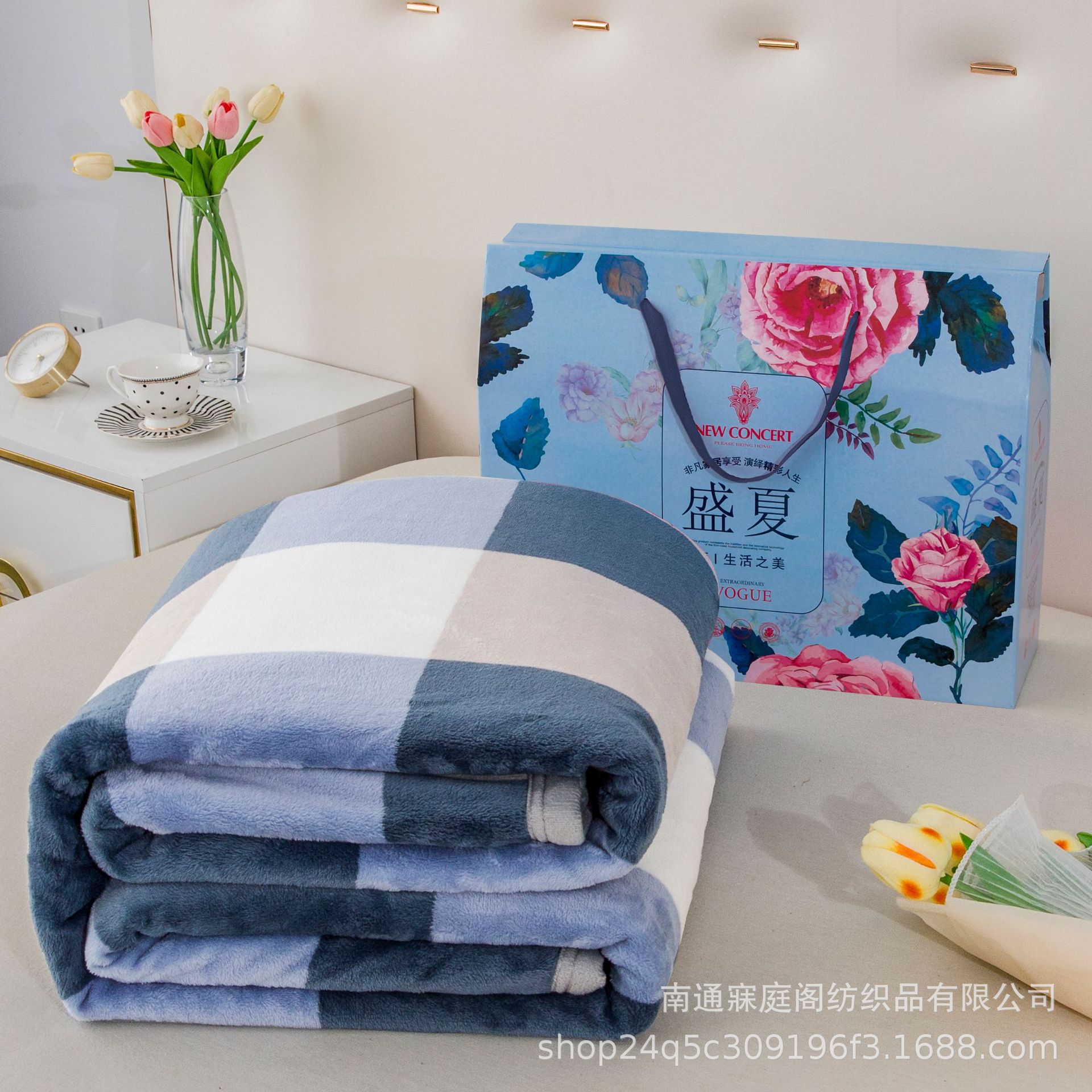 法兰绒毛毯礼品礼盒装加厚绒毯珊瑚绒午睡小毯子开业活动工厂直销