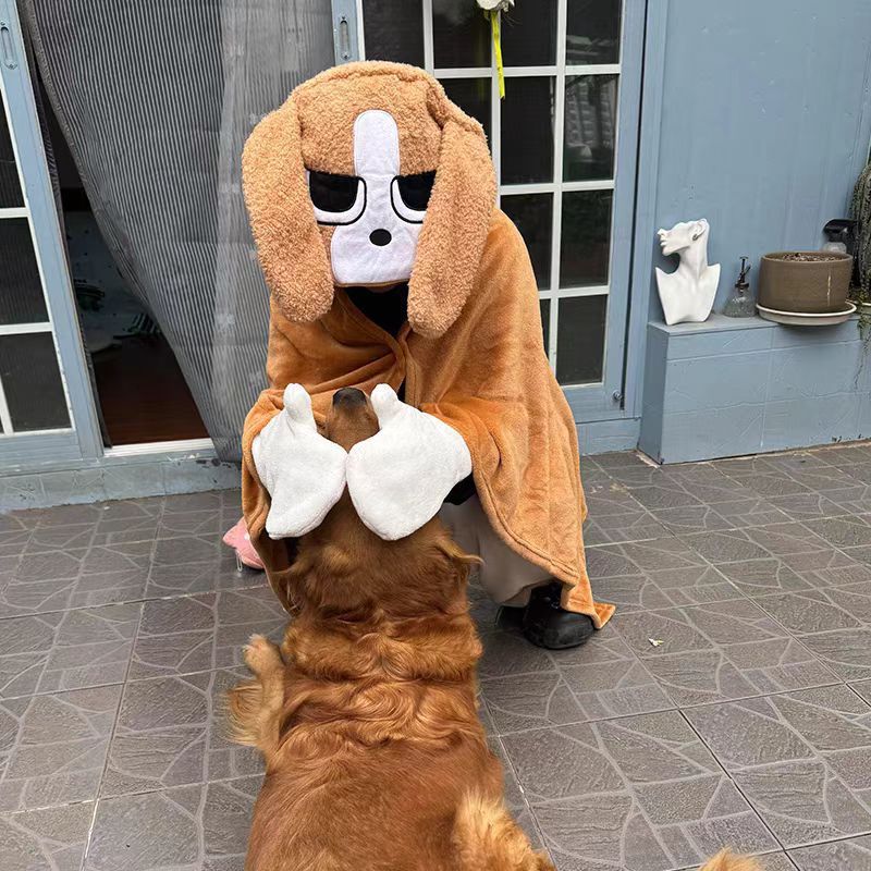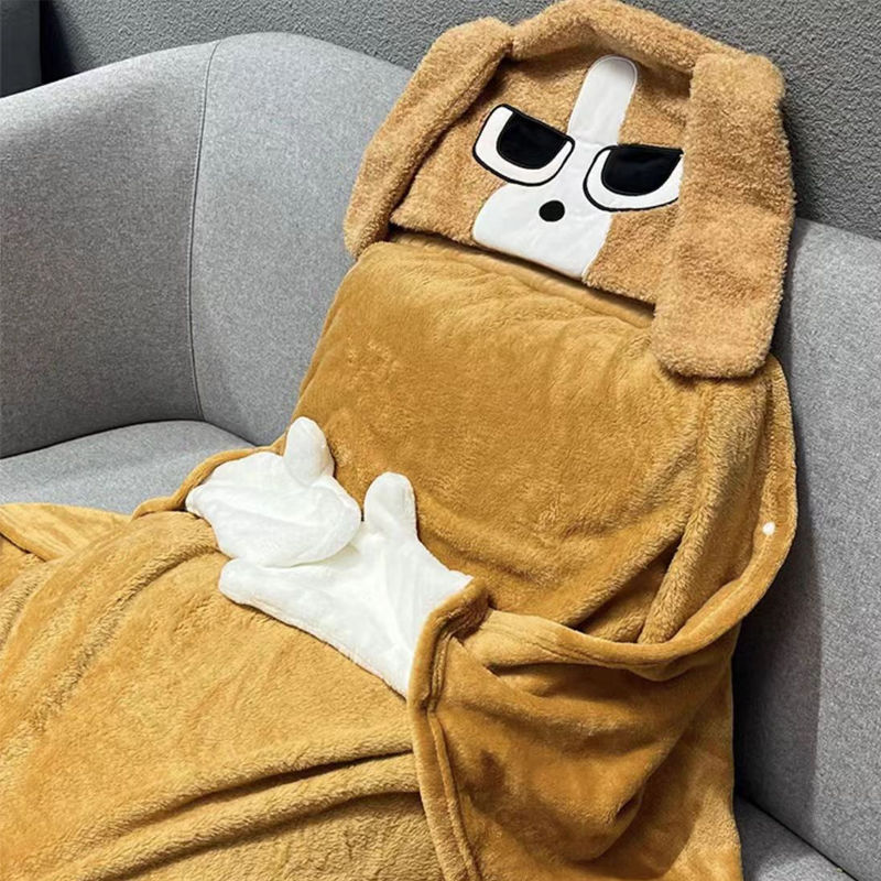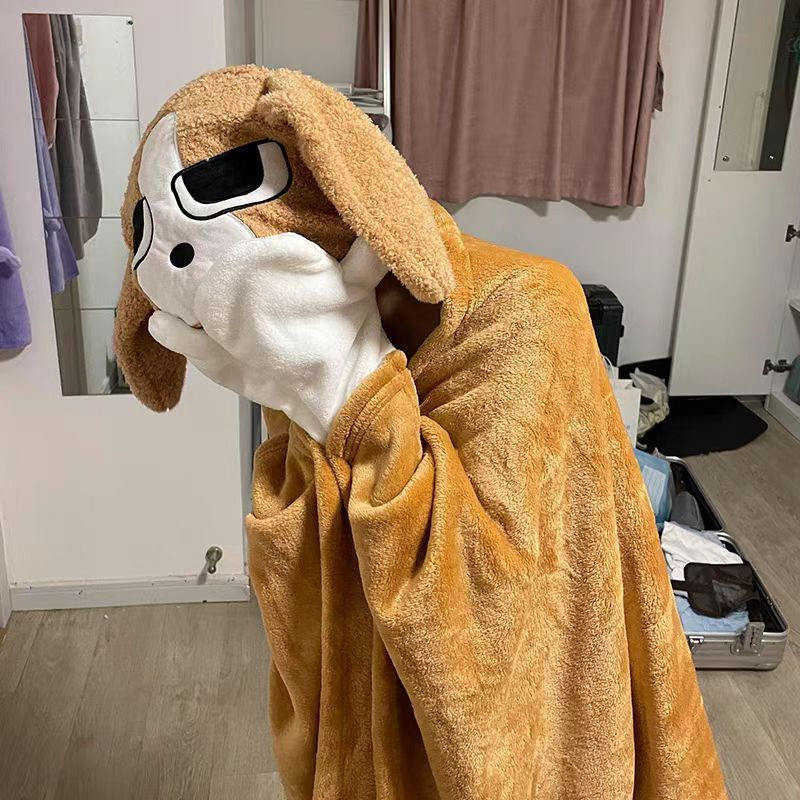 可爱小狗懒人连帽毛毯办公室午睡斗篷女宿舍学生午休毛绒披风毯子