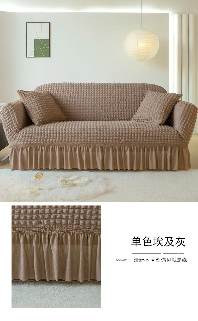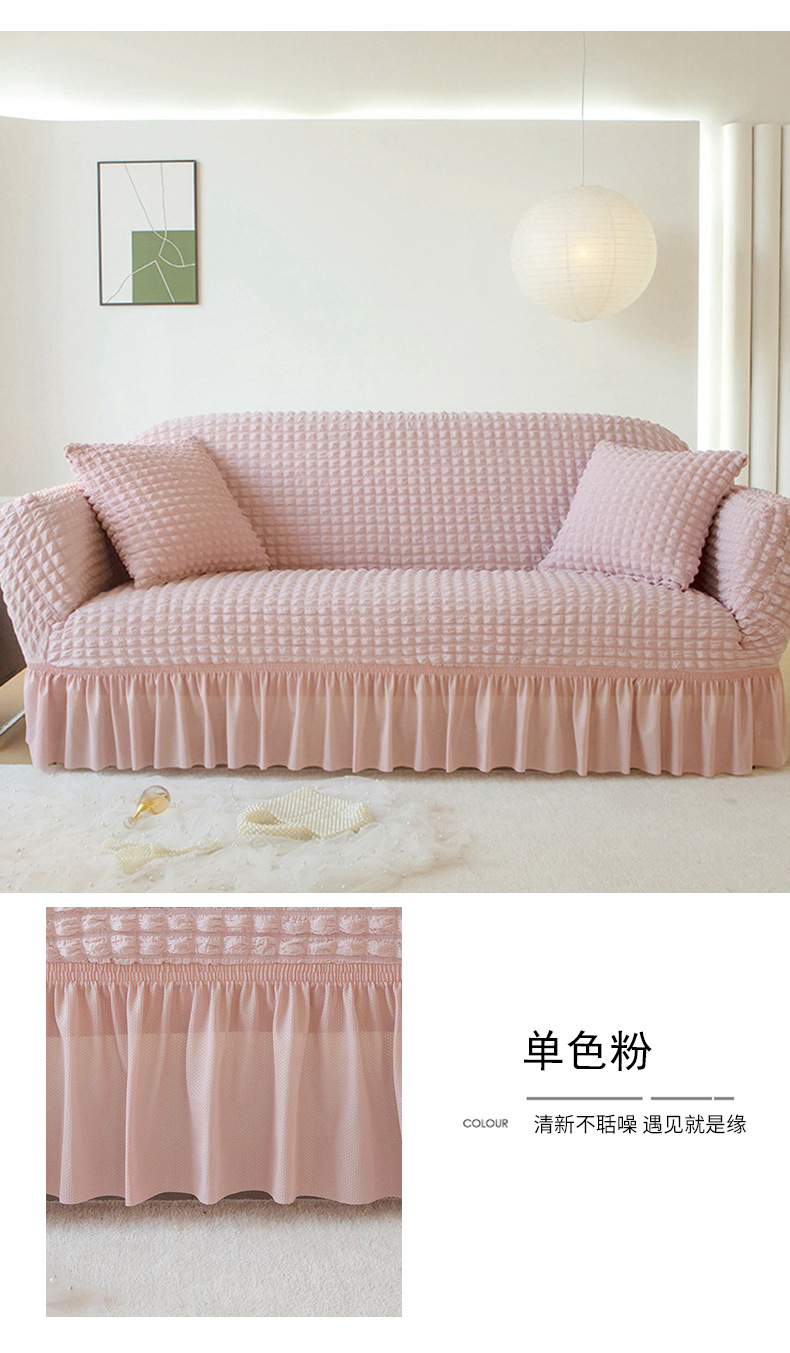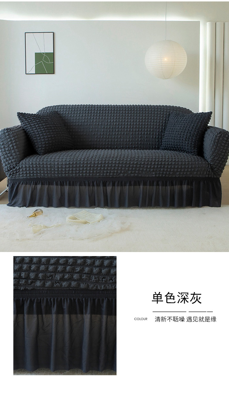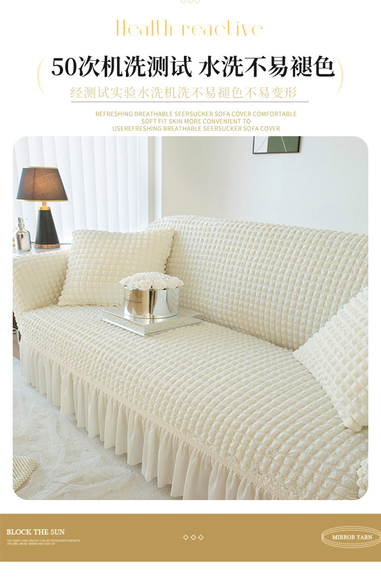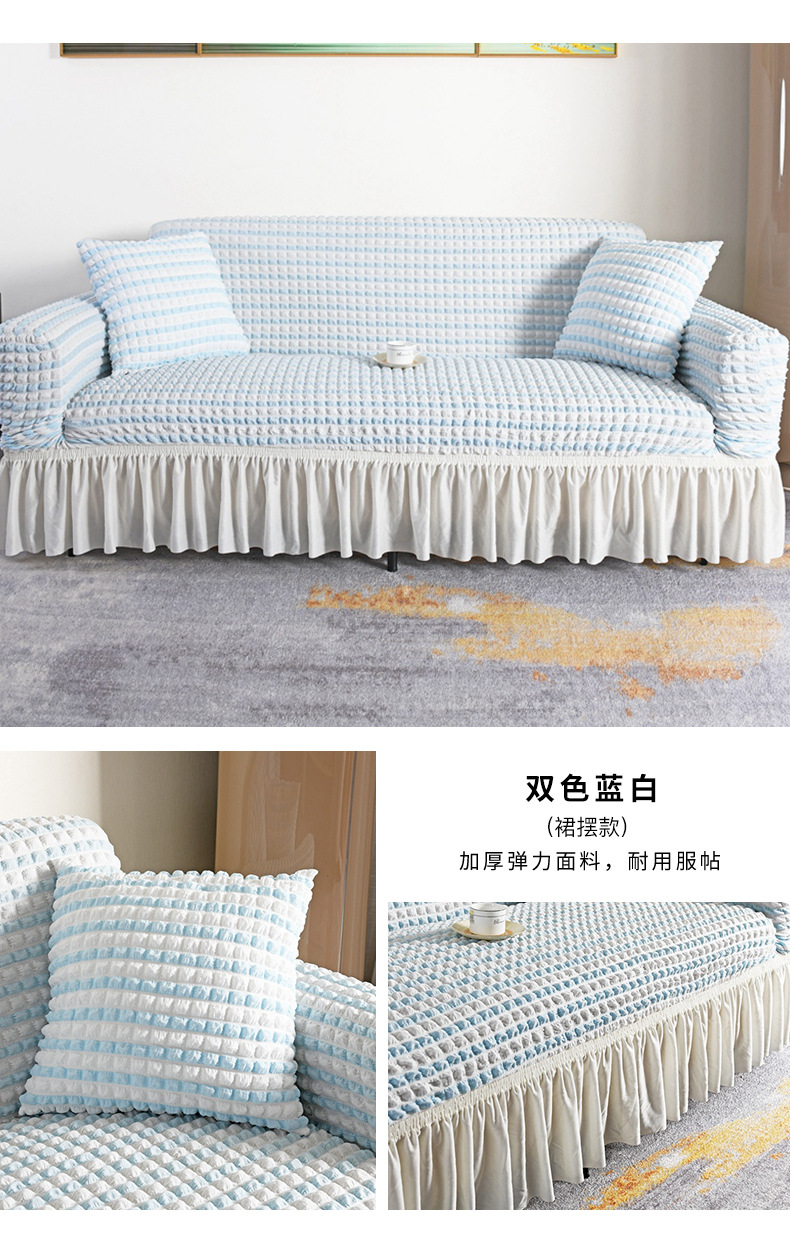 新款加厚泡泡纱沙发套全包弹力花边款沙发套万能套高级感四季通用