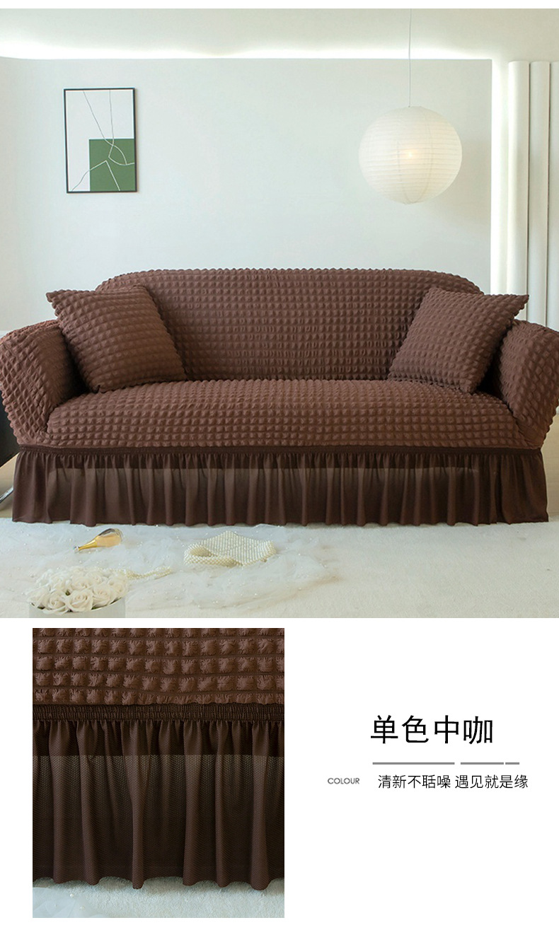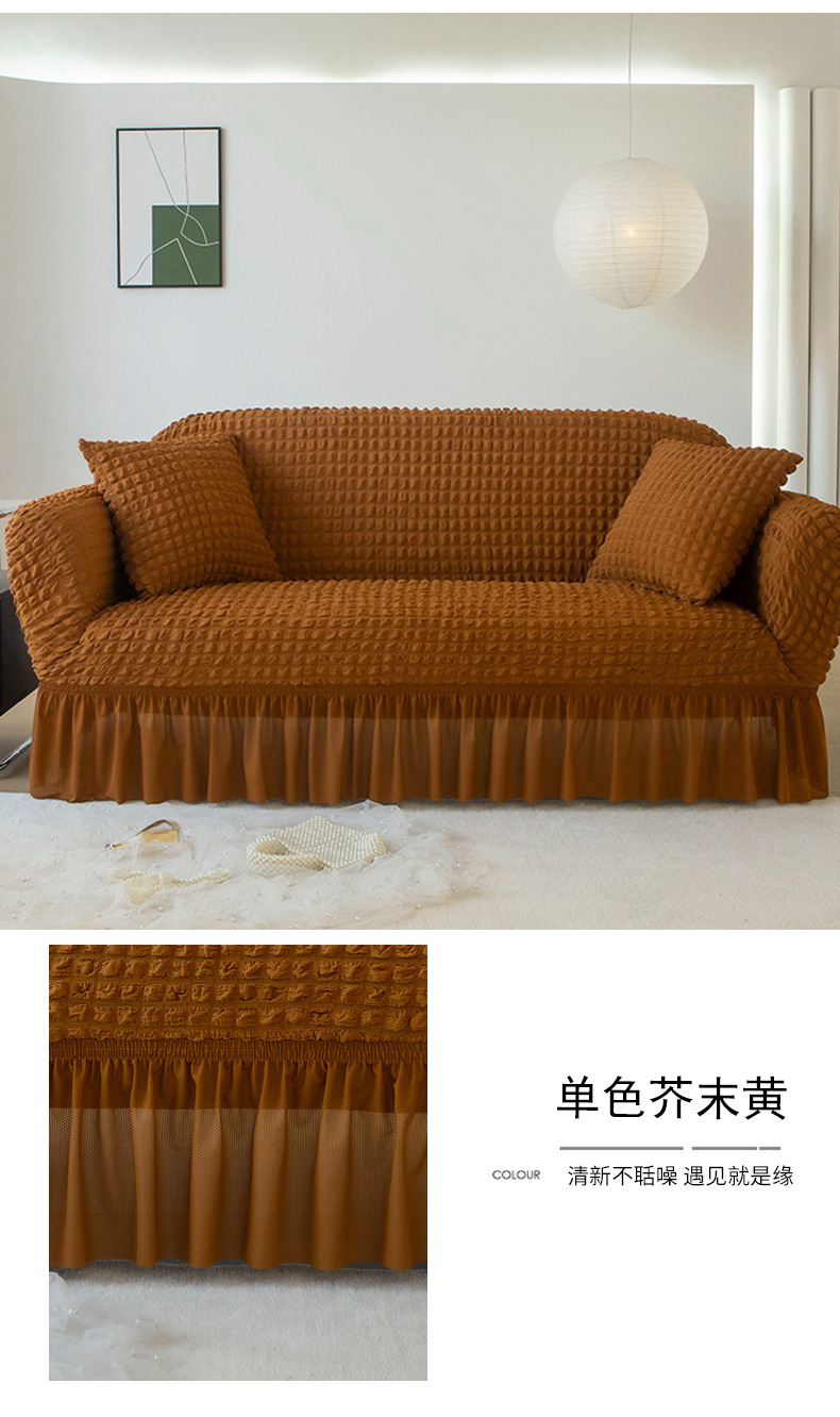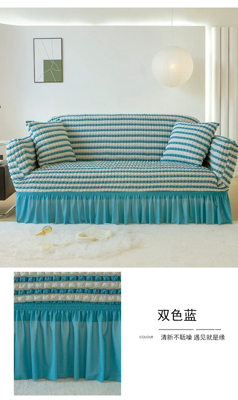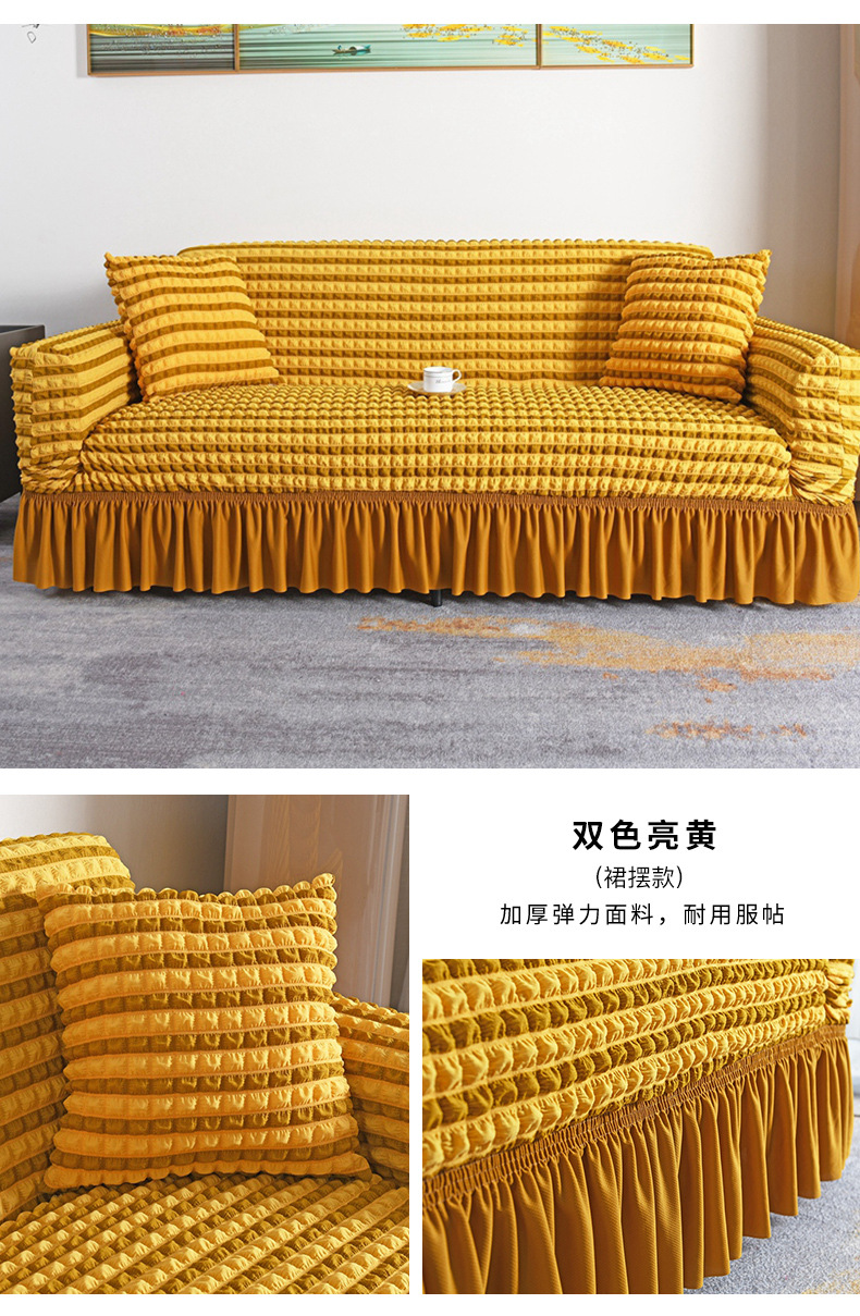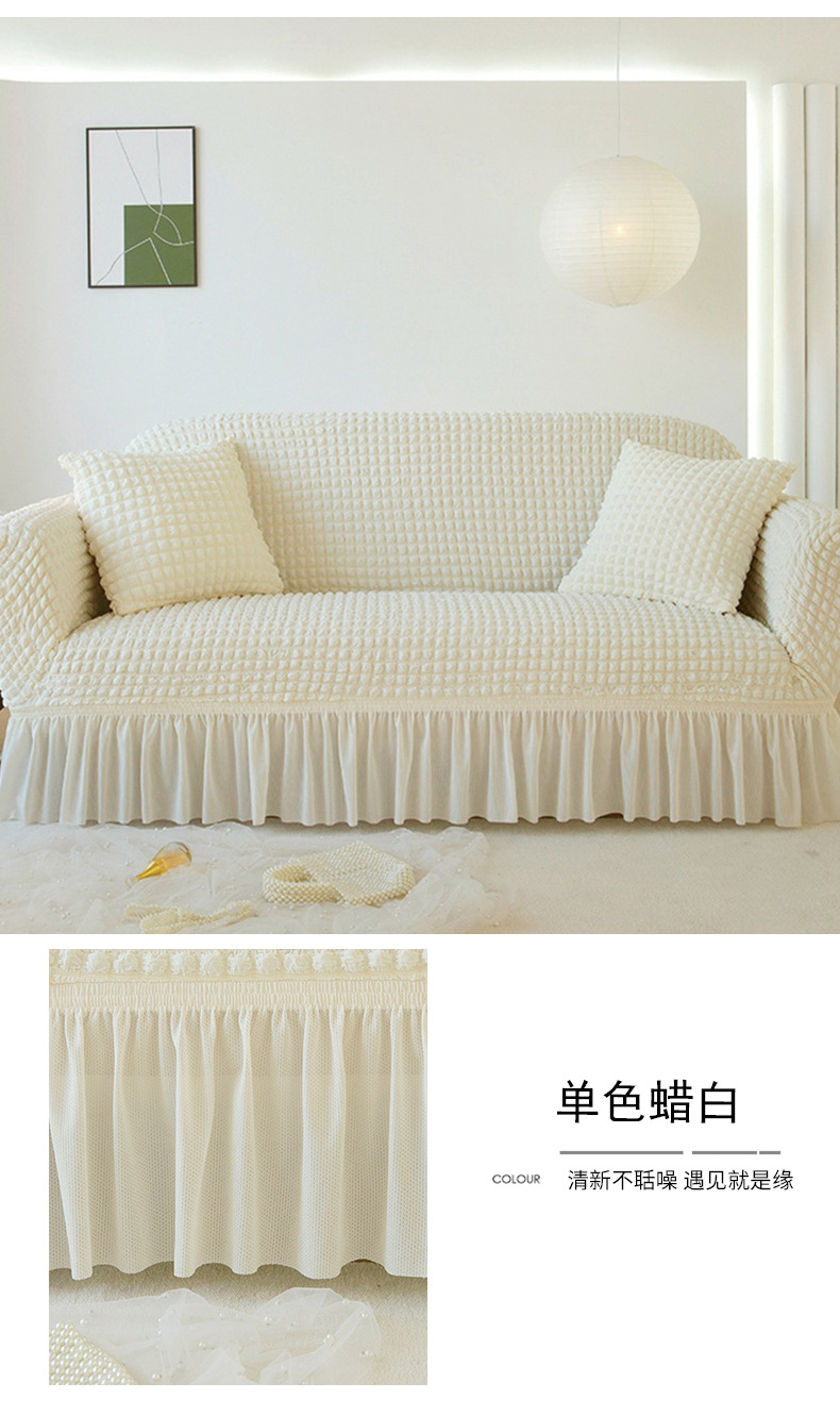 新款加厚泡泡纱沙发套全包弹力花边款沙发套万能套高级感四季通用
