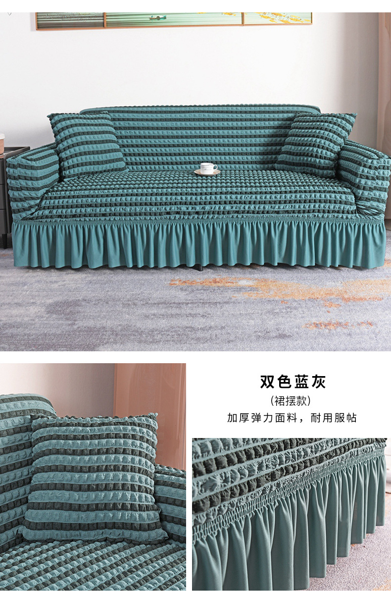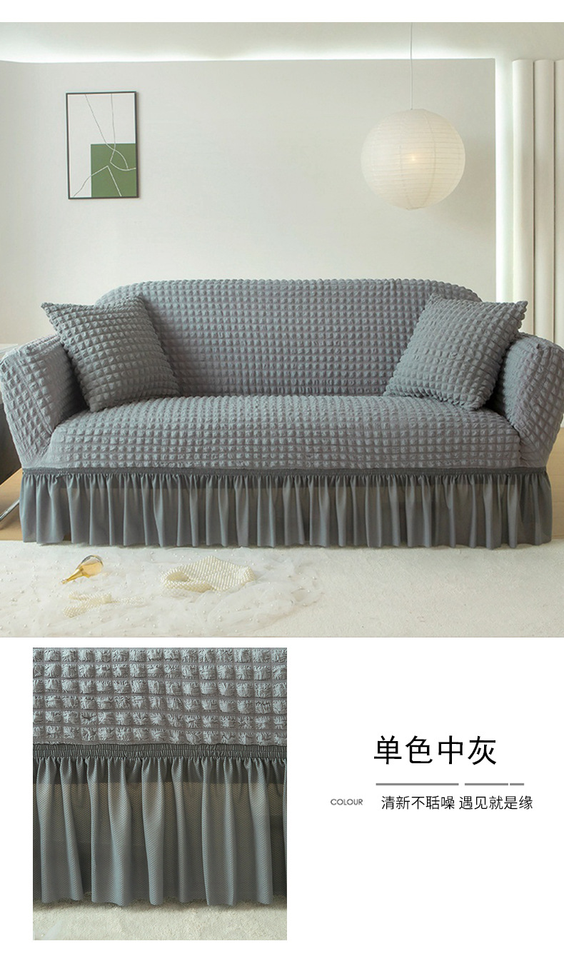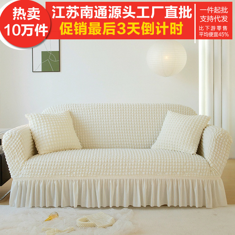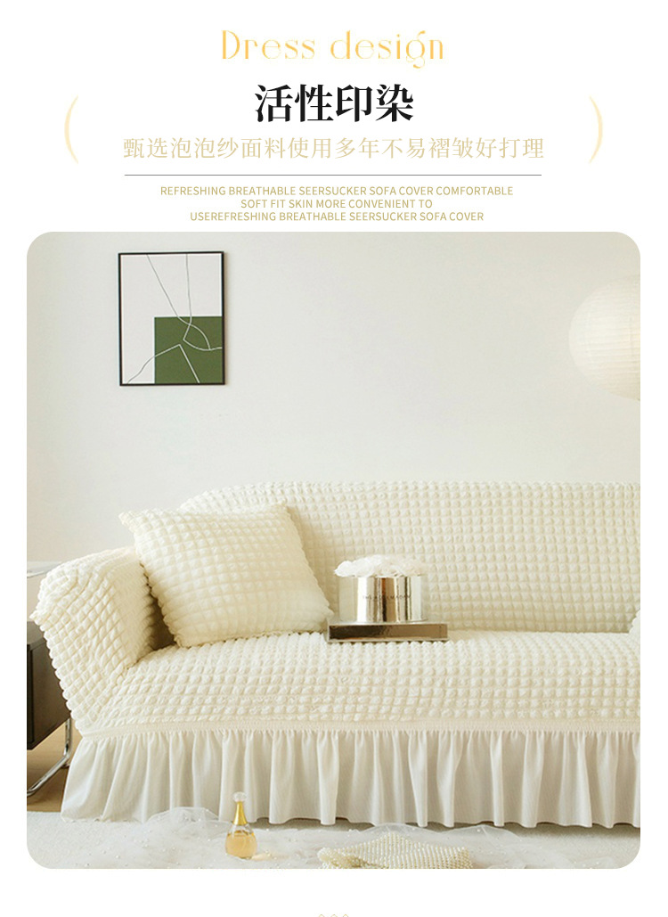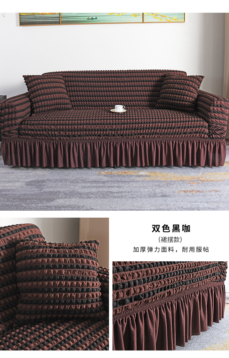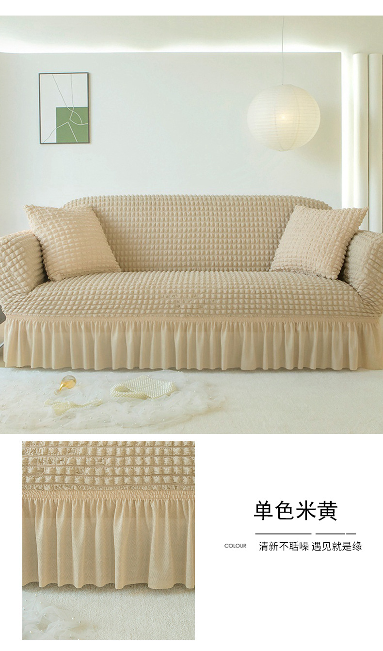 新款加厚泡泡纱沙发套全包弹力花边款沙发套万能套高级感四季通用
