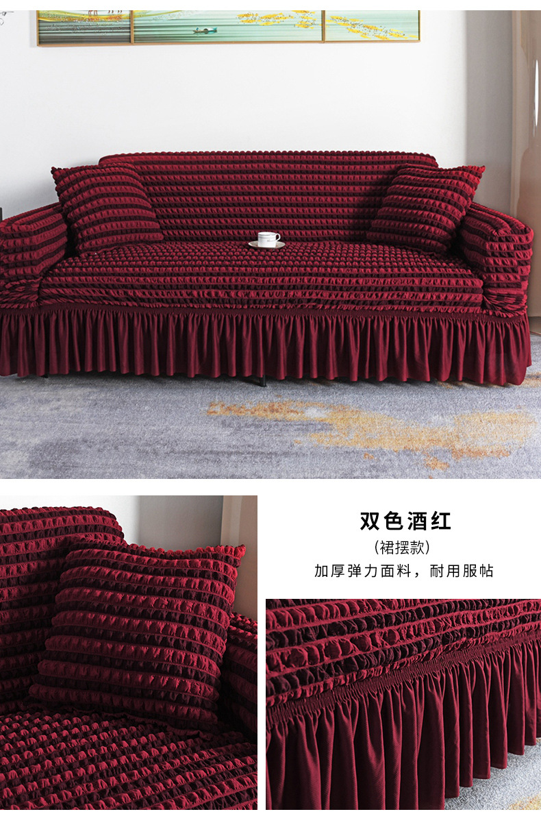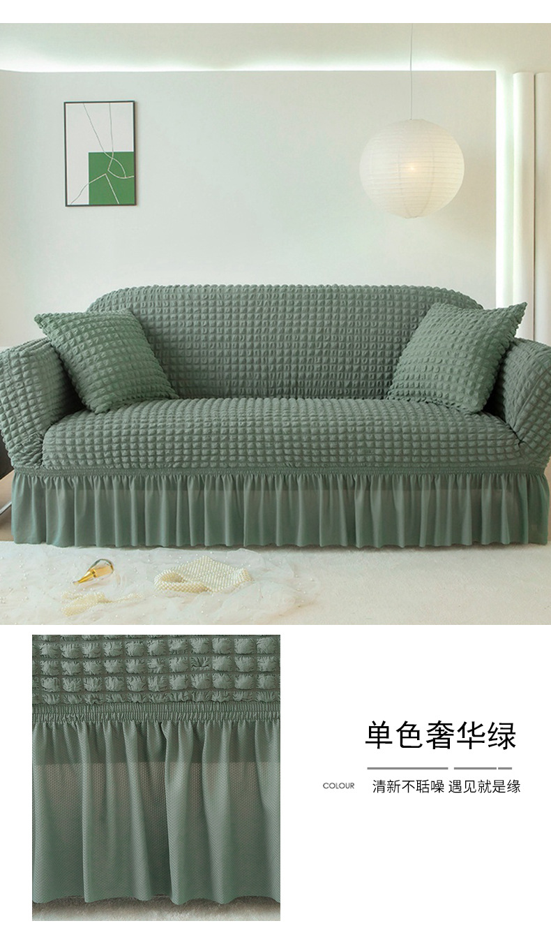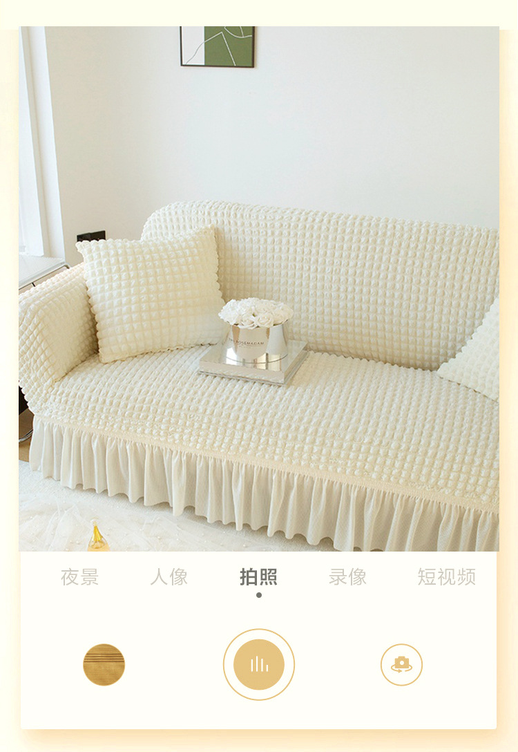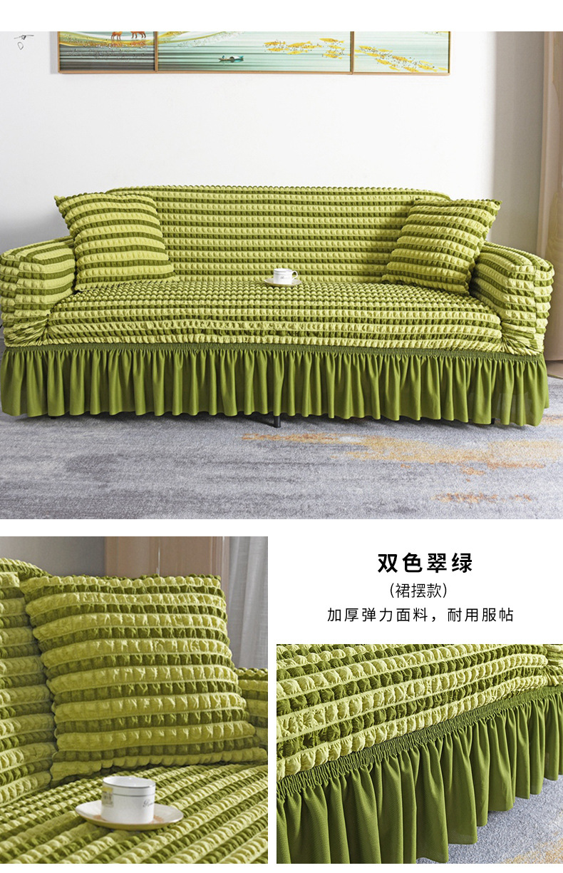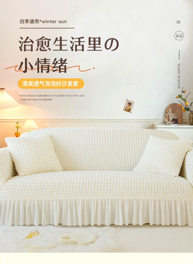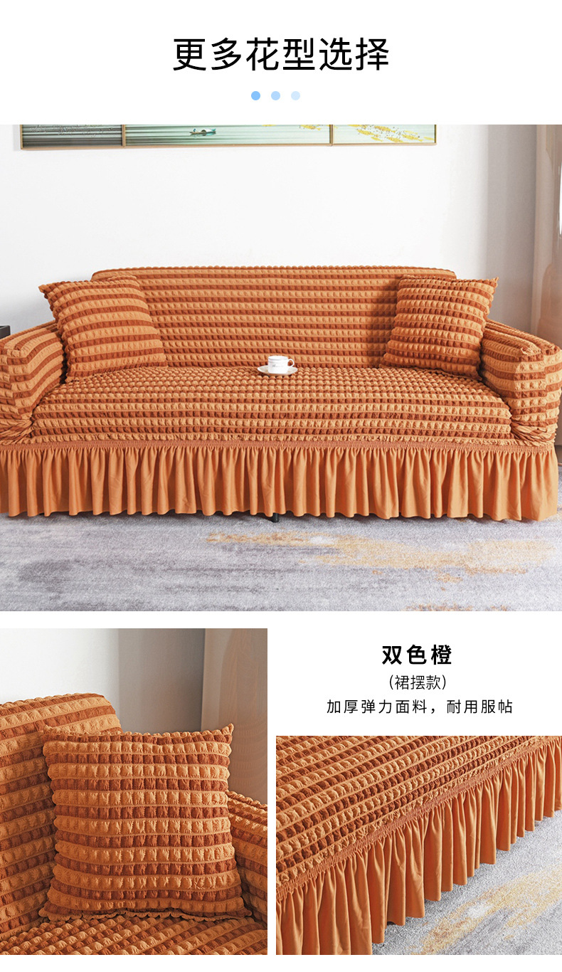 新款加厚泡泡纱沙发套全包弹力花边款沙发套万能套高级感四季通用