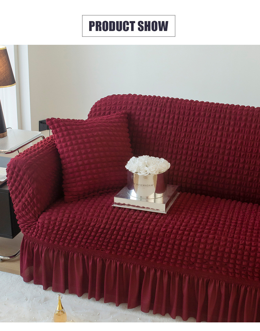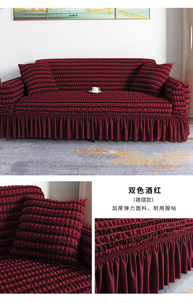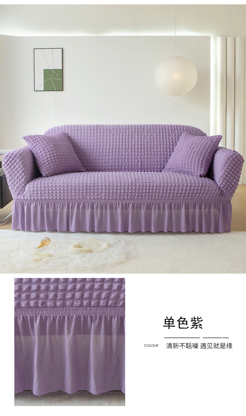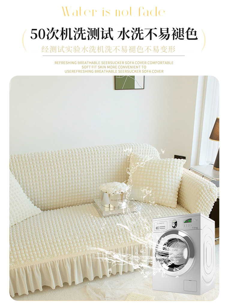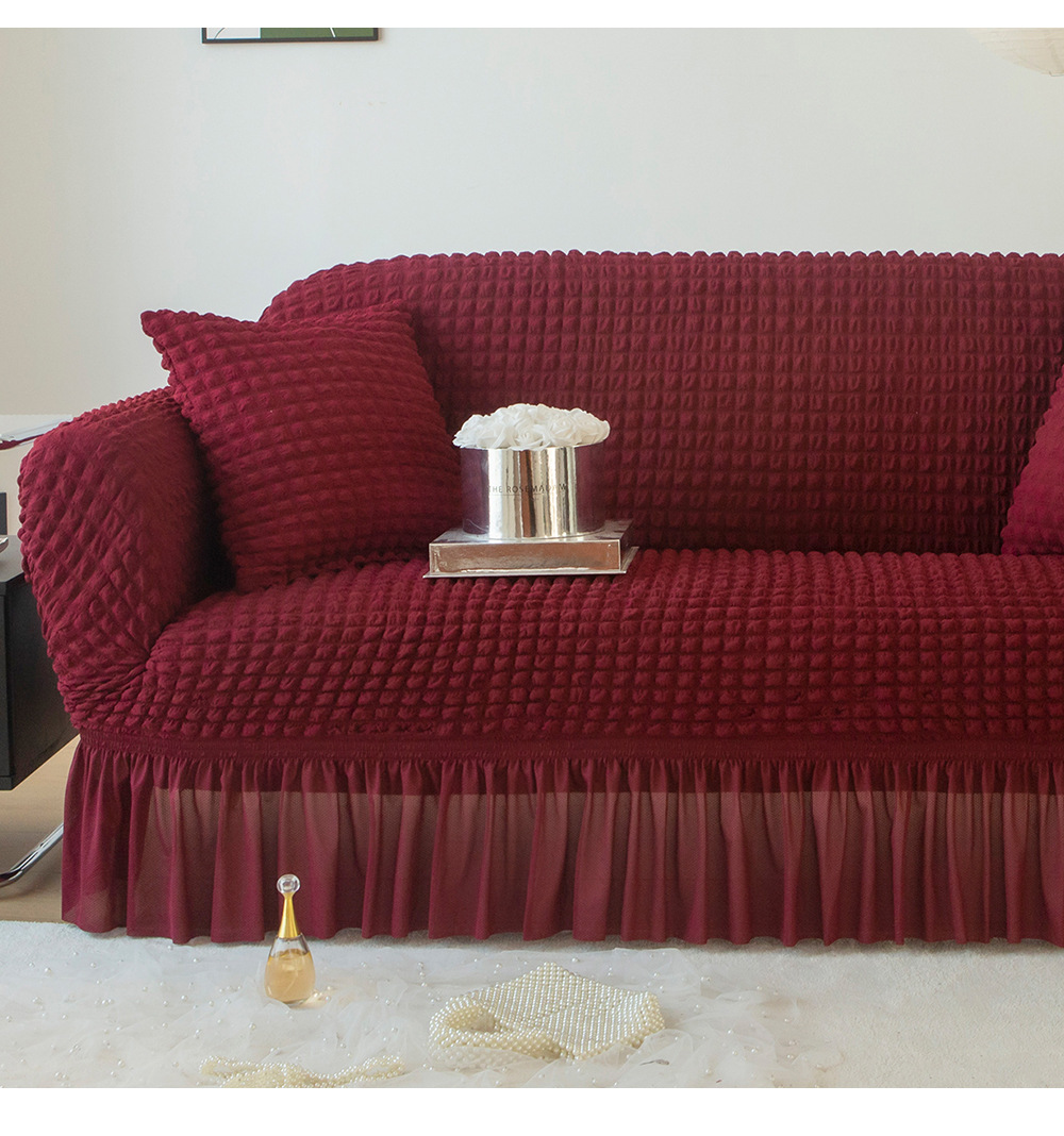 新款加厚泡泡纱沙发套全包弹力花边款沙发套万能套高级感四季通用