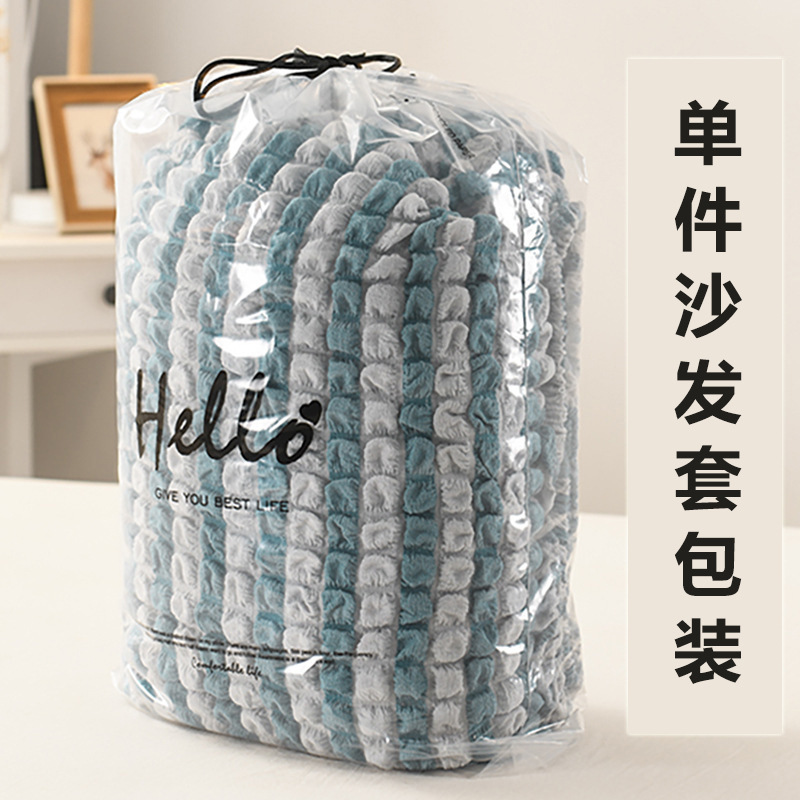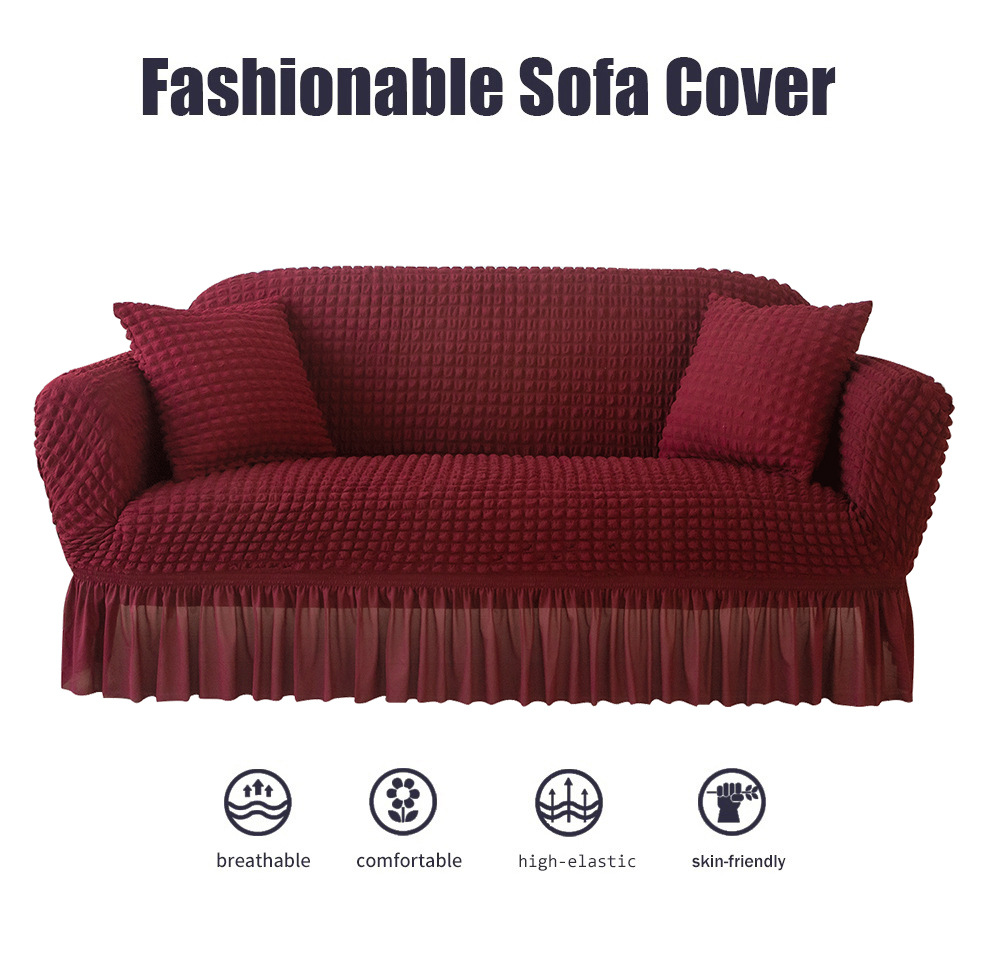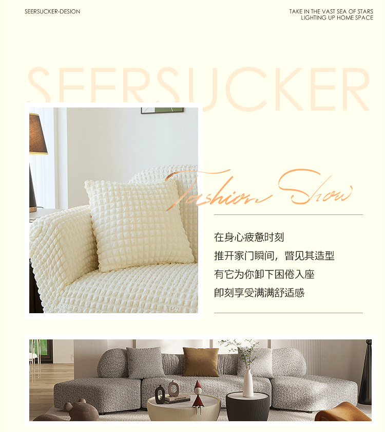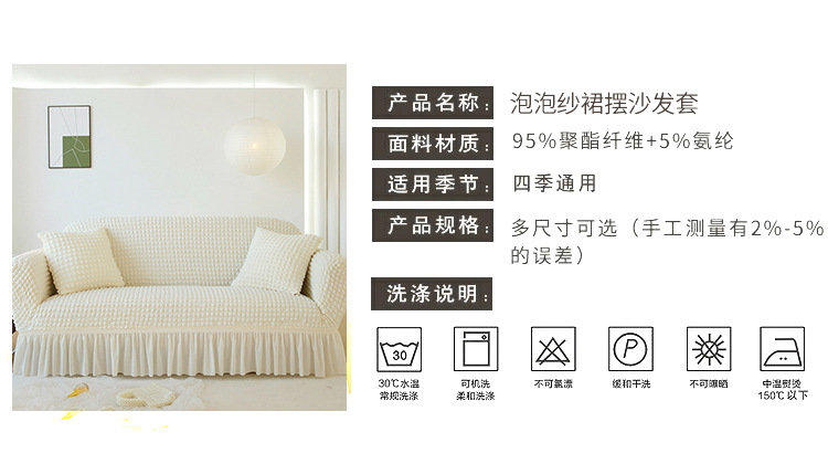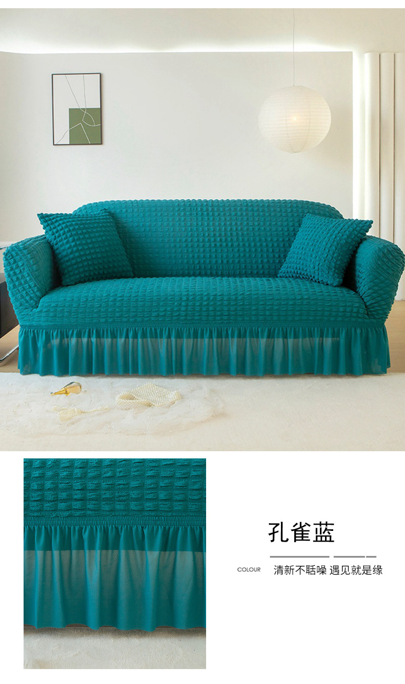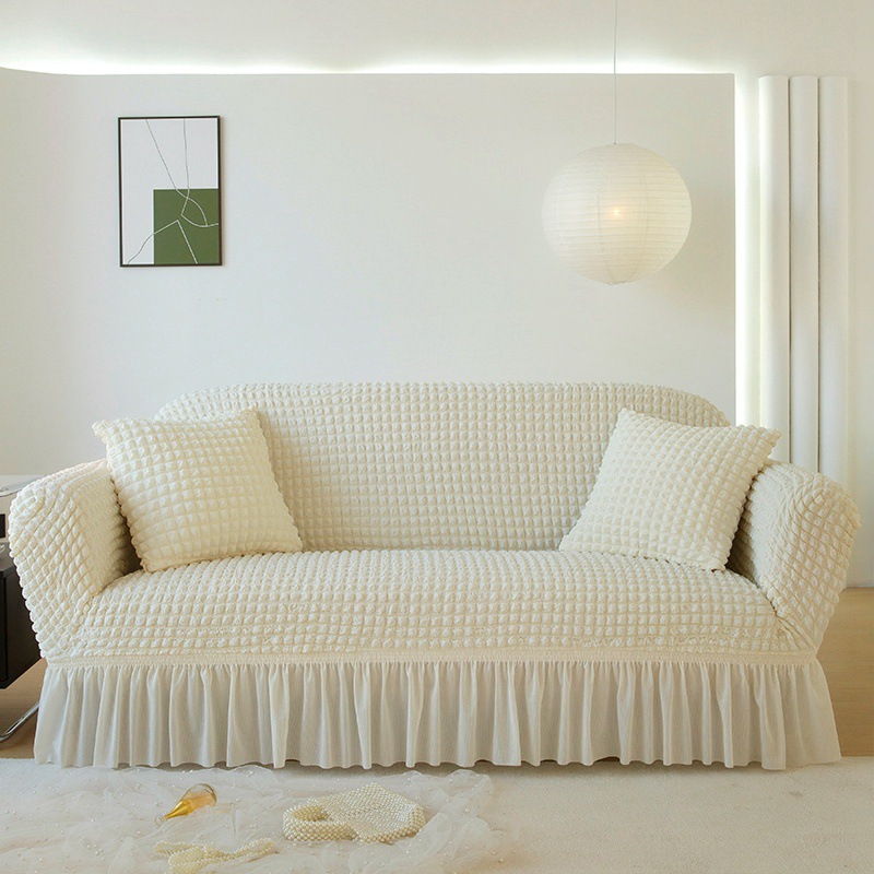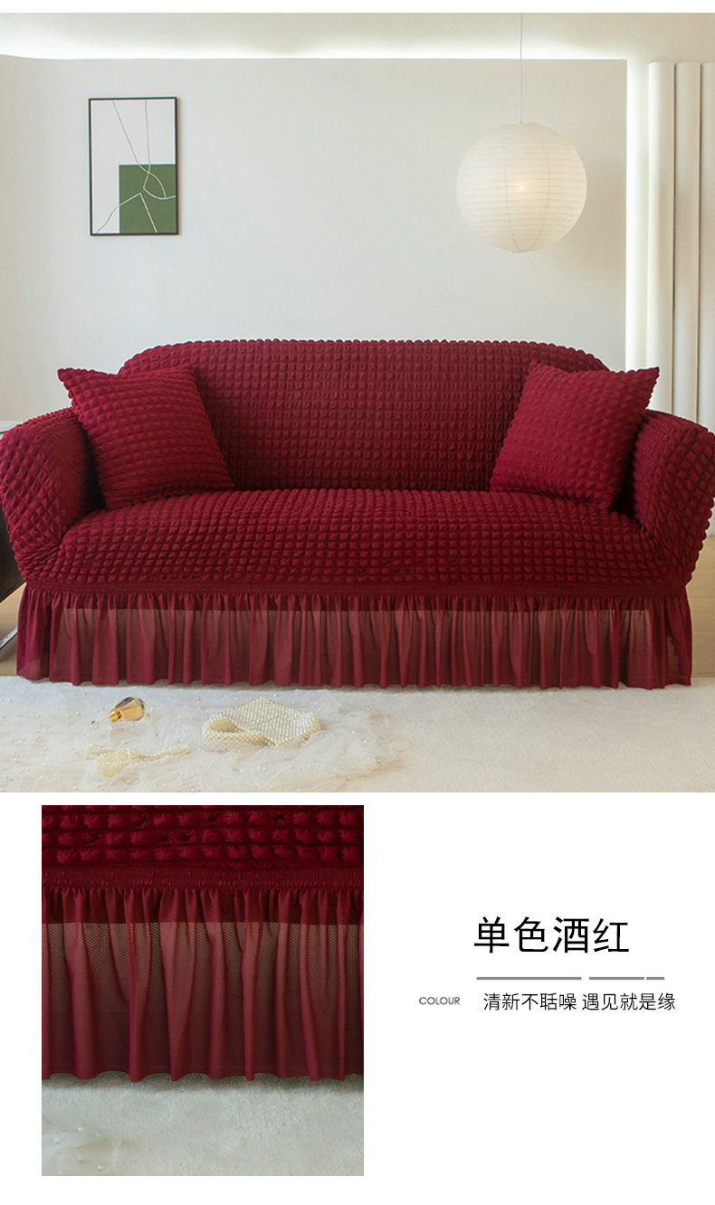 新款加厚泡泡纱沙发套全包弹力花边款沙发套万能套高级感四季通用
