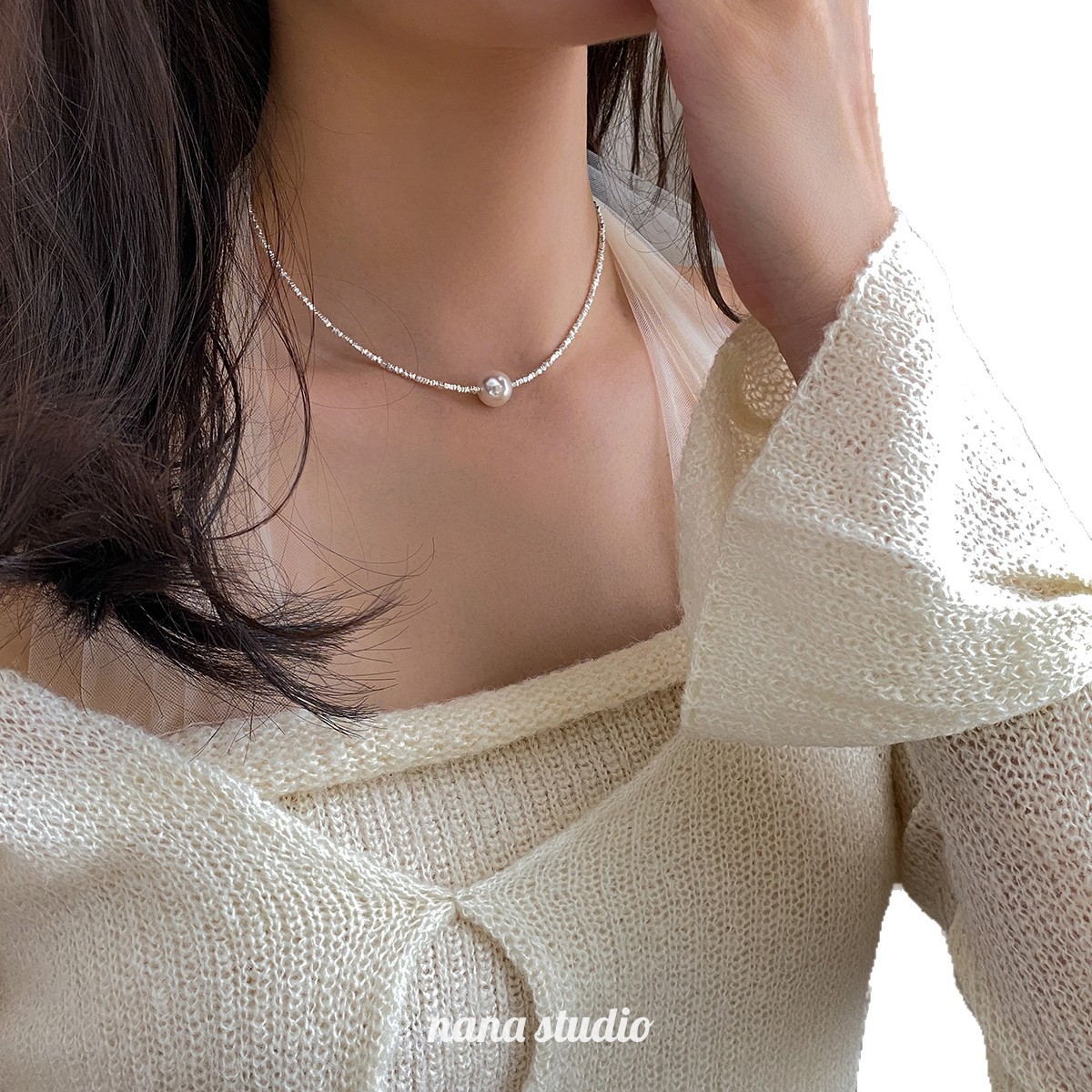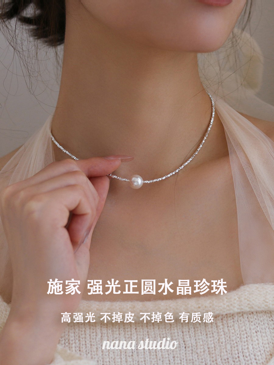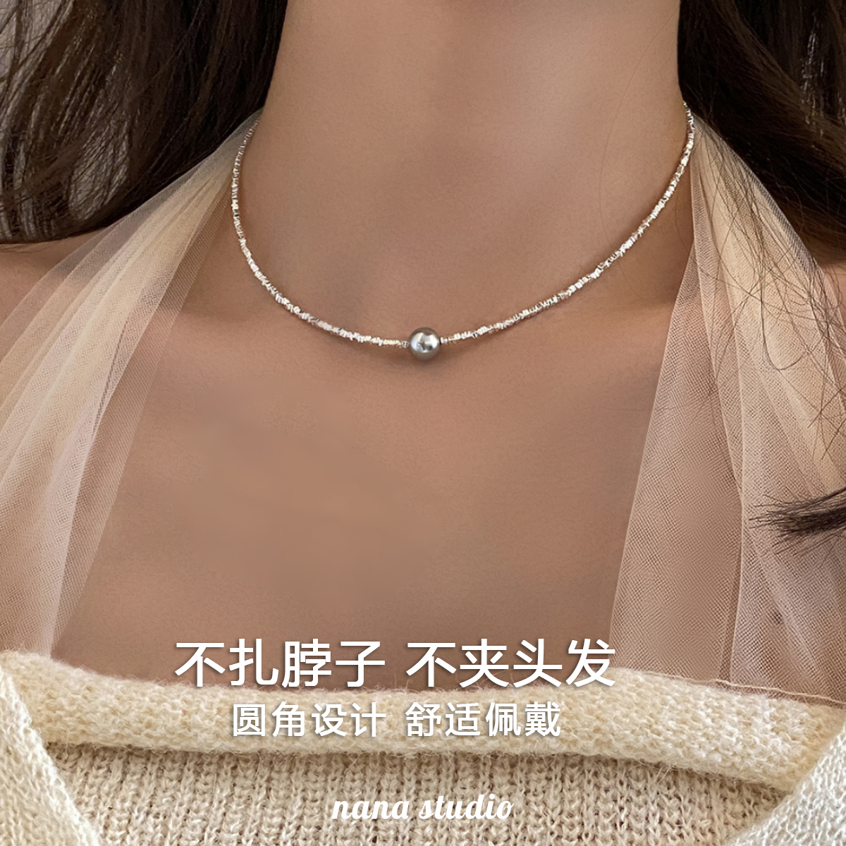 爆闪!银河碎银几两珍珠项链女款锁骨链925纯银碎银子颈链母亲礼物