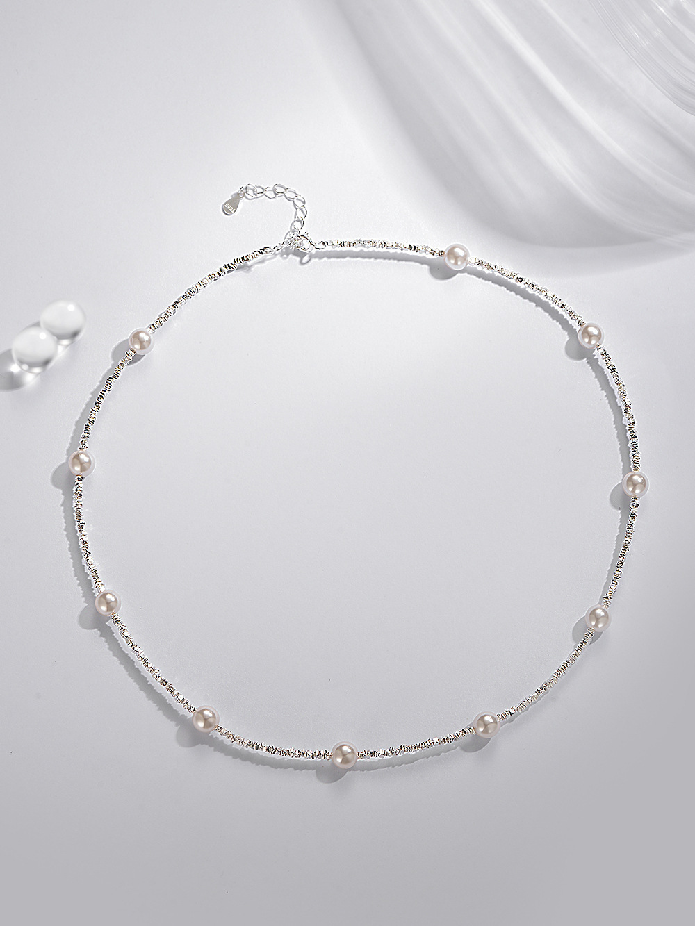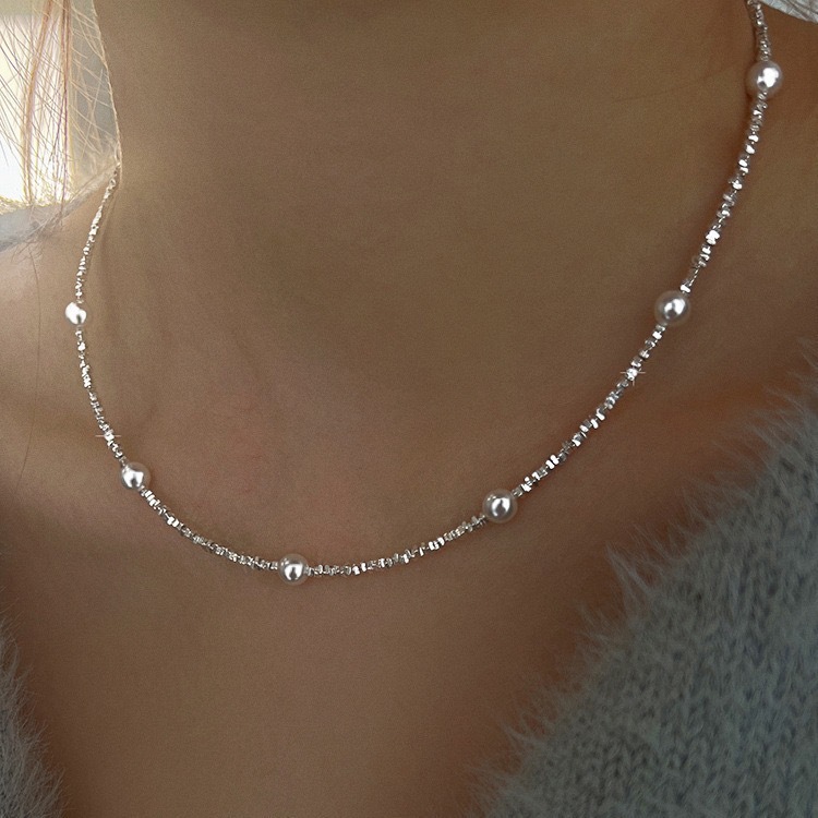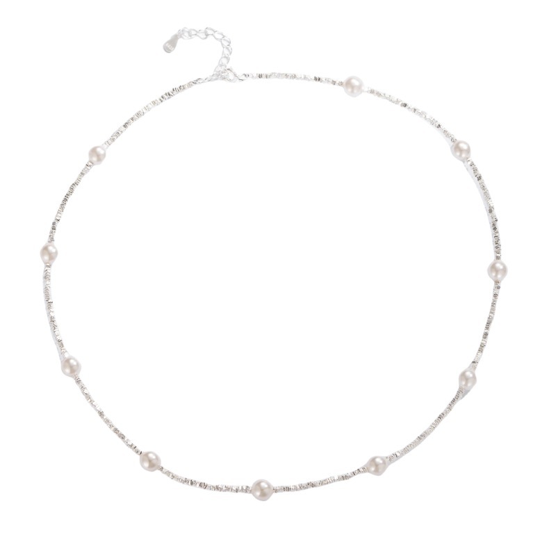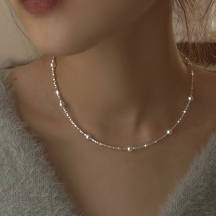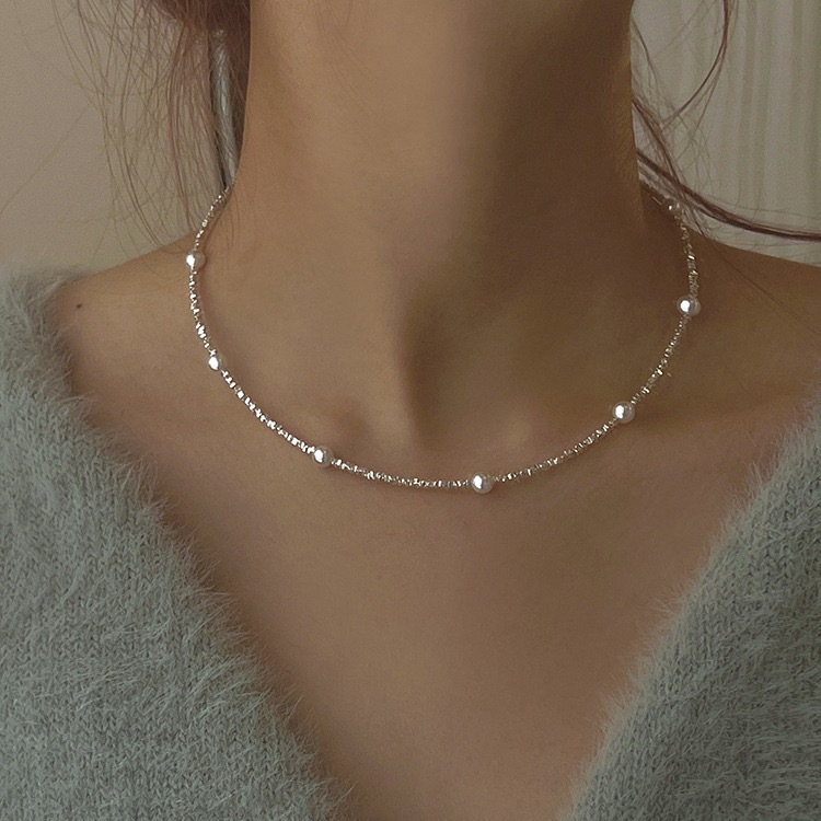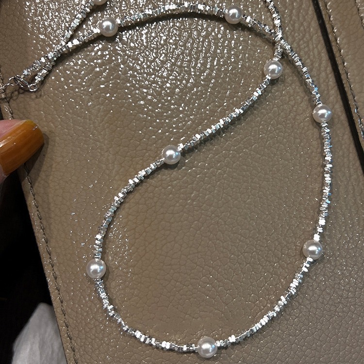 S925银碎银项链1.5小方碎银颗粒项链,施家珍珠碎银项链批发