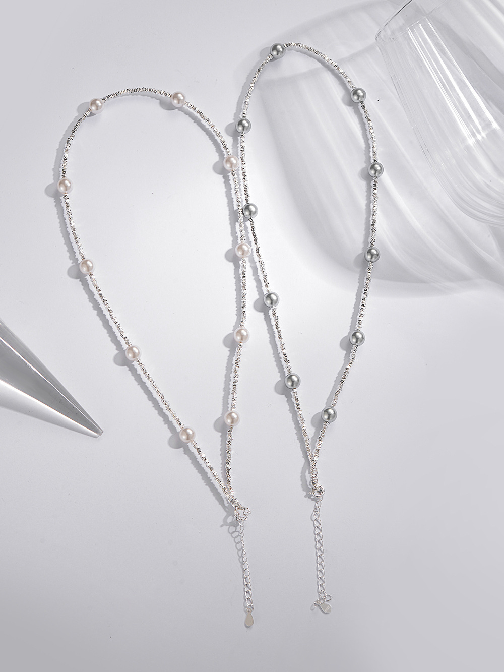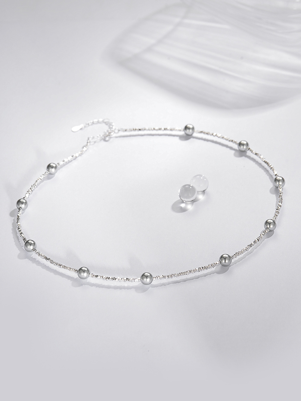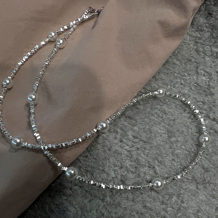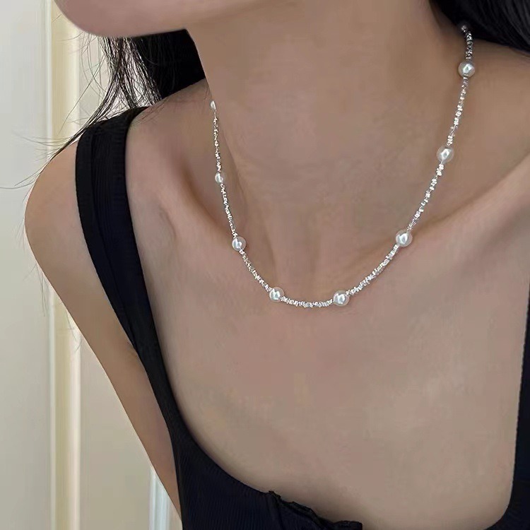 S925银碎银项链1.5小方碎银颗粒项链,施家珍珠碎银项链批发