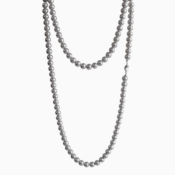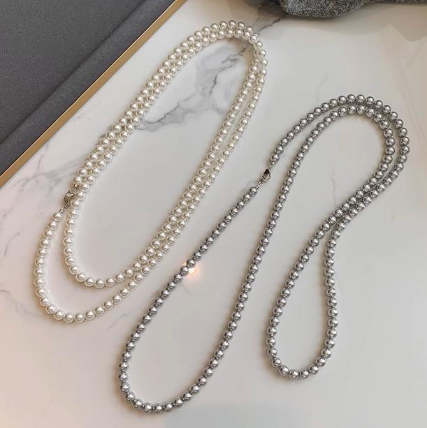 施家澳白真多麻灰超长款珍珠项链女秋冬轻奢感叠戴毛衣链