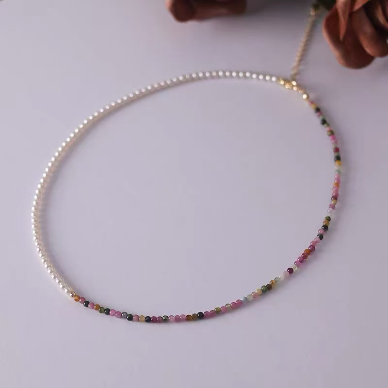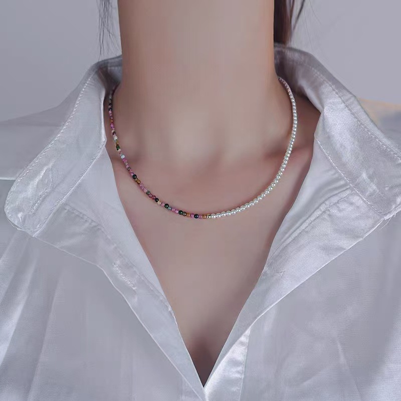 施家珍珠天然小碧玺项链女轻奢小众感锁骨链925碎银珍珠项链批发