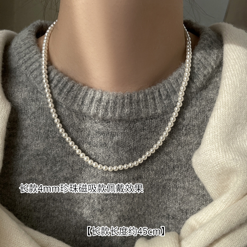 磁吸扣施家澳白色倪妮同款珍珠项链女毛衣链轻奢小众感颈链