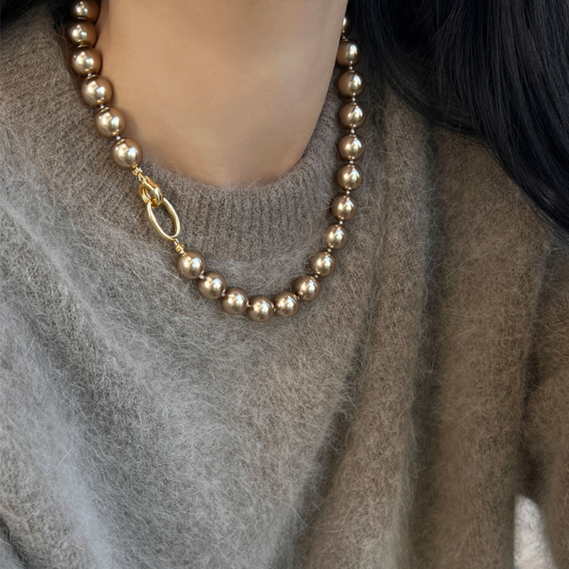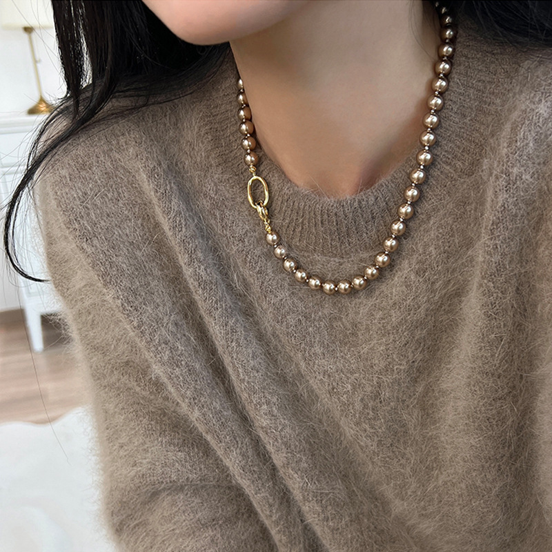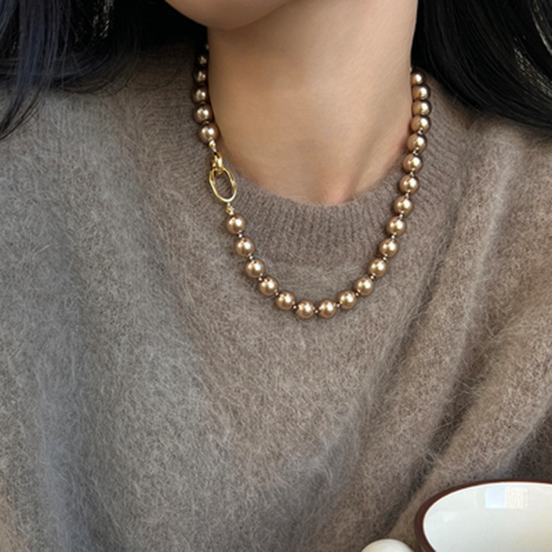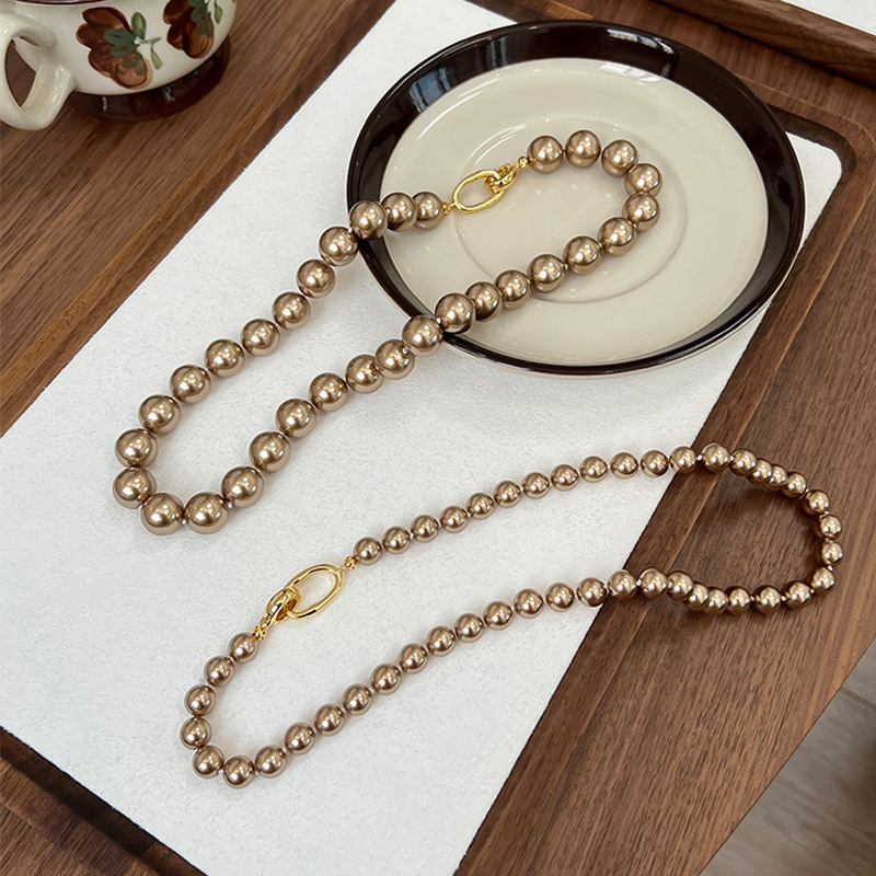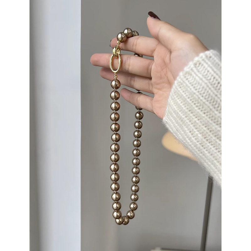 美拉德系香槟色珍珠项链女轻奢复古优雅高级感气质百搭颈链毛衣链
