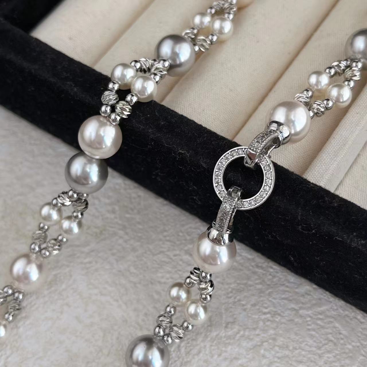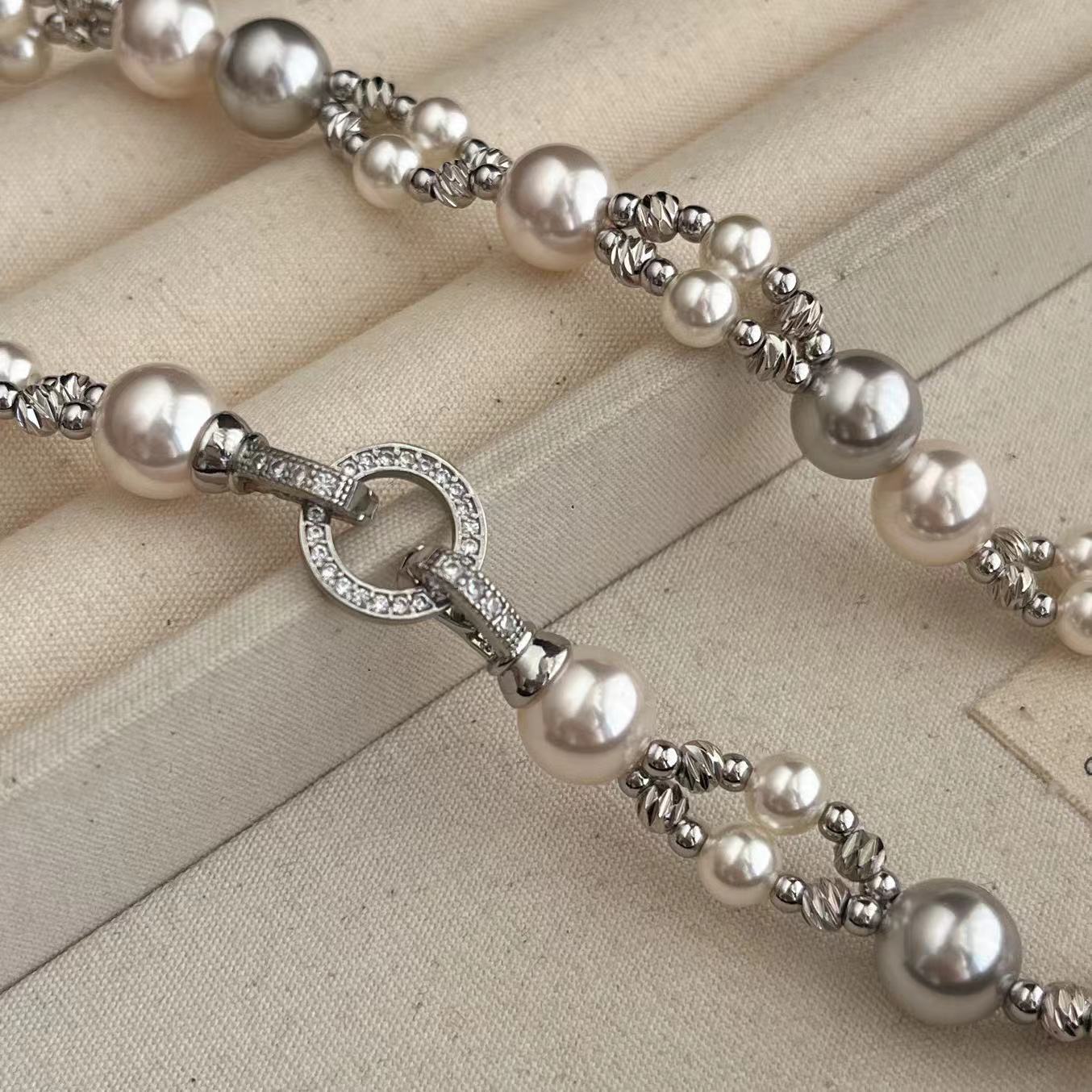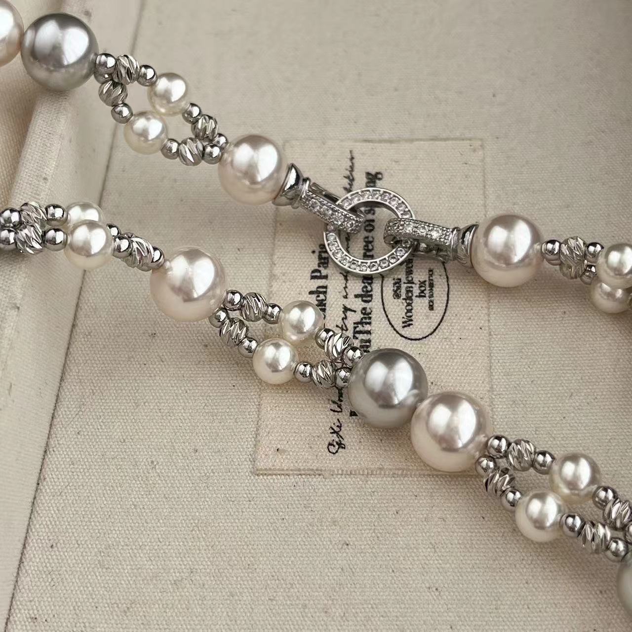 ins风韩版感正圆人造珍珠双层缠绕项链时尚小众616真多麻色珍