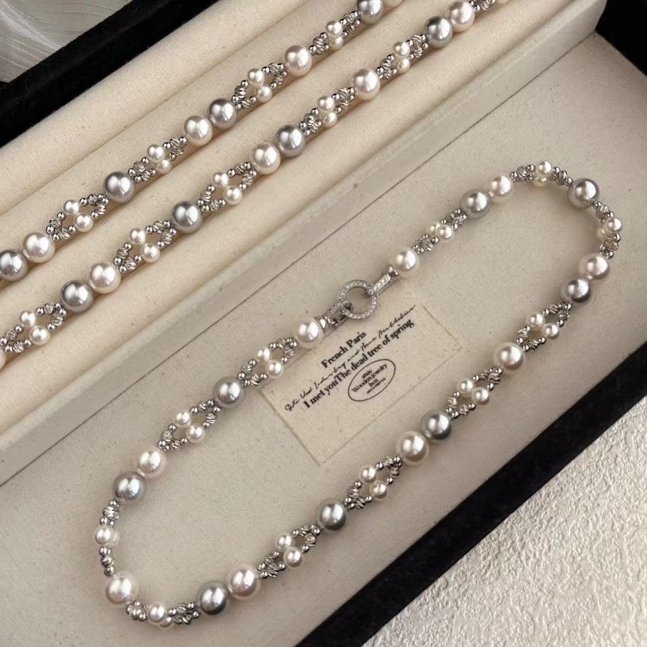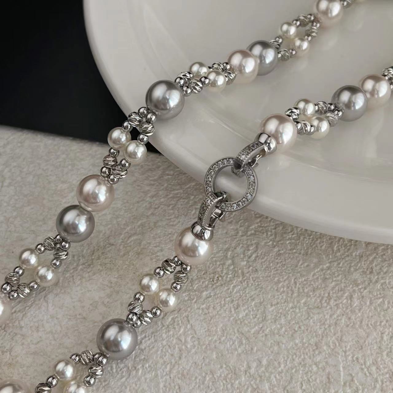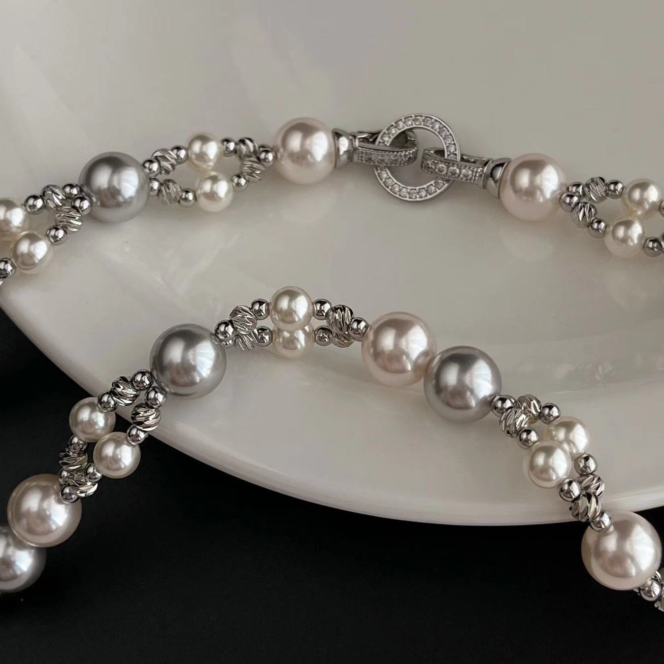 ins风韩版感正圆人造珍珠双层缠绕项链时尚小众616真多麻色珍