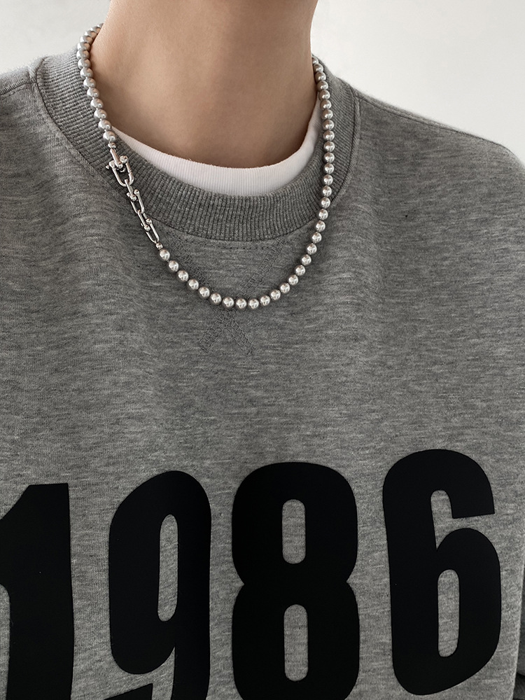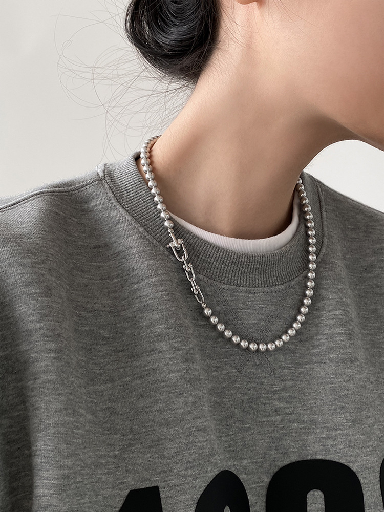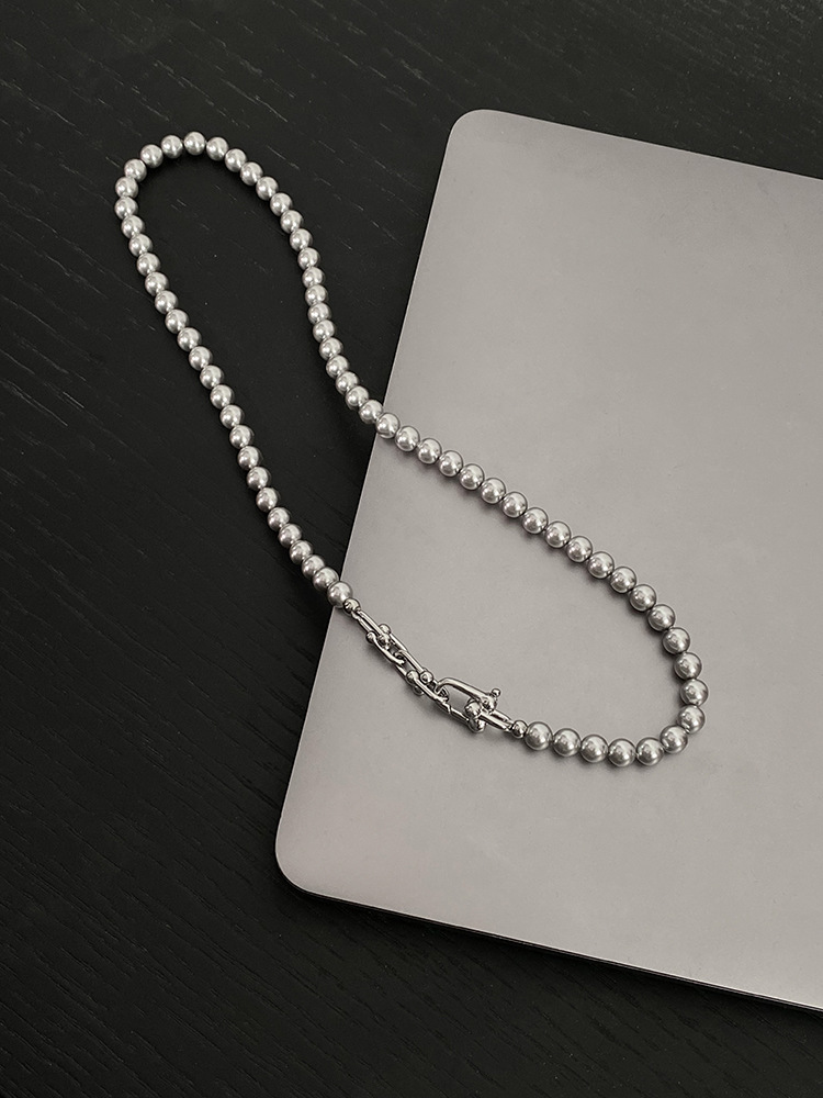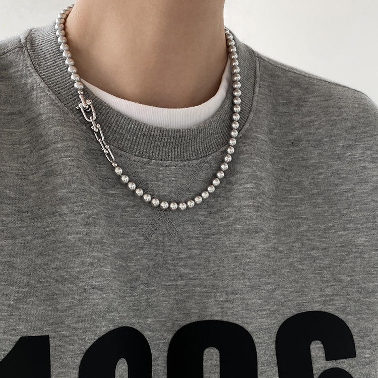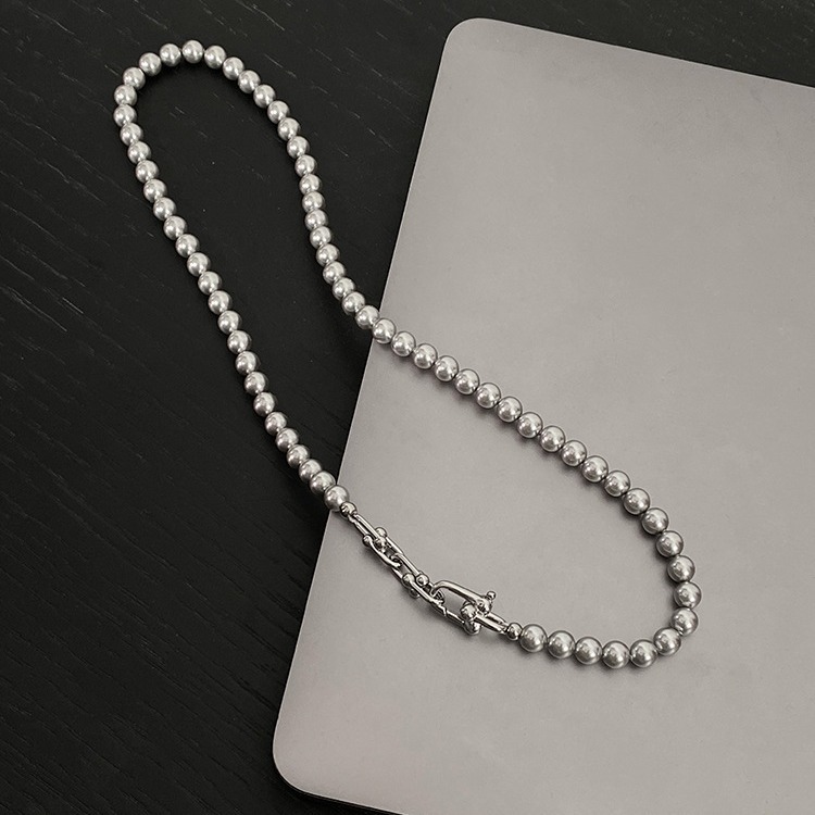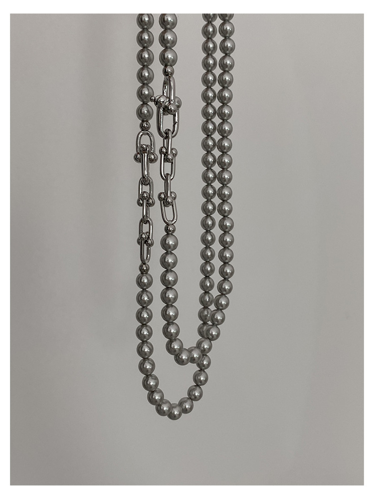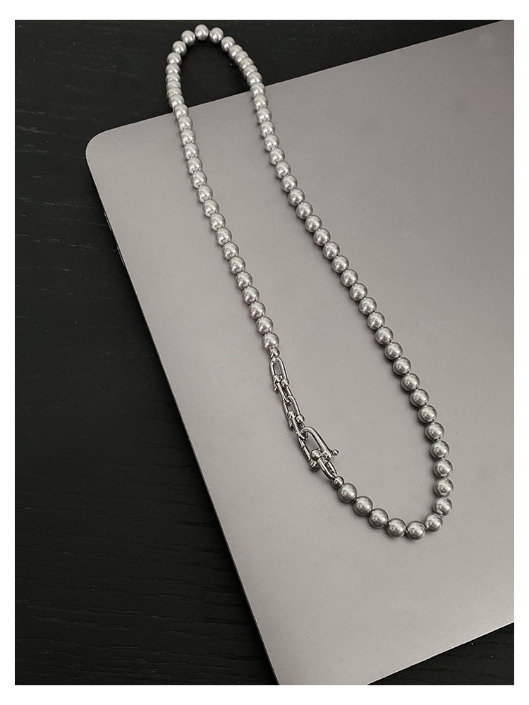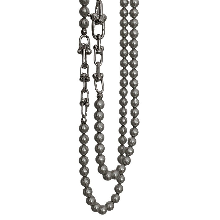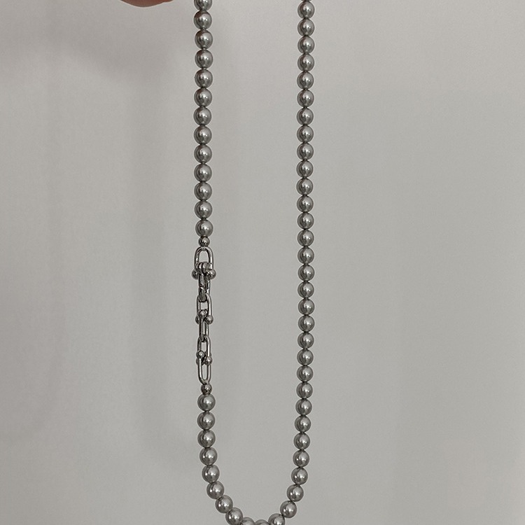 超酷休闲清冷感仿施家灰色珍珠项链女小众个性卫衣配饰毛衣链批发