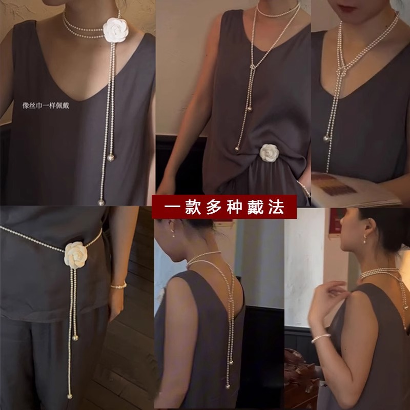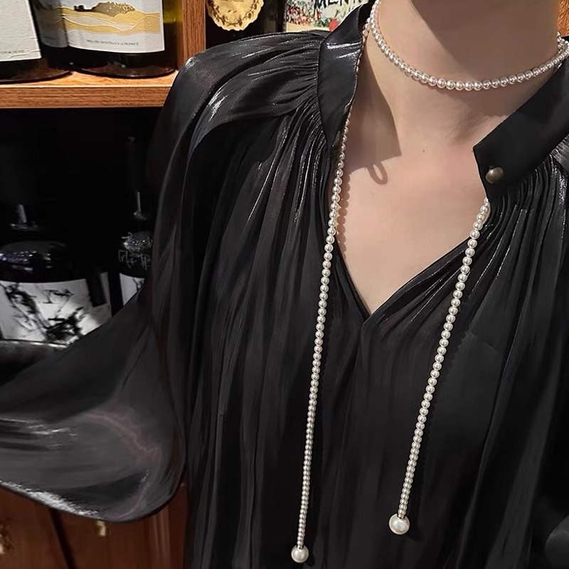 秋冬叠戴复古法式正圆施家珍珠项链长款百搭轻奢小众感毛衣链