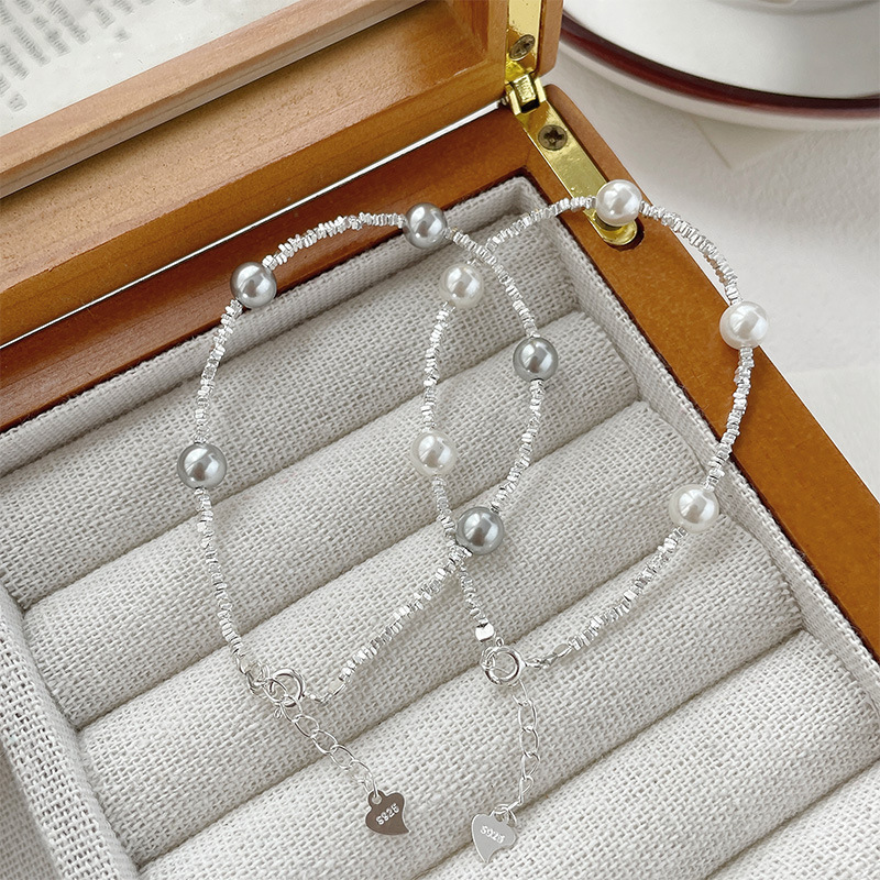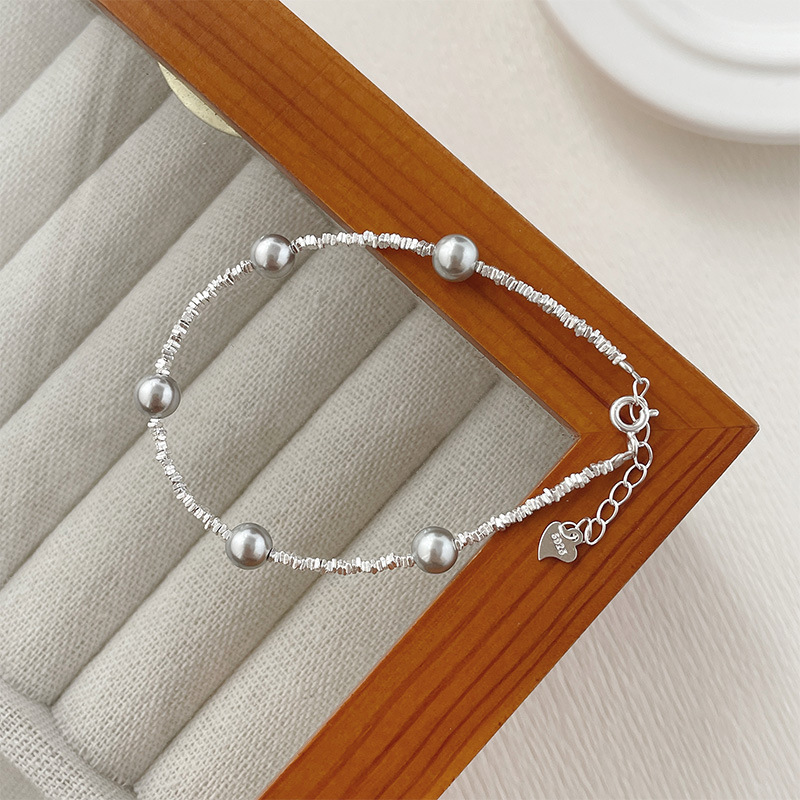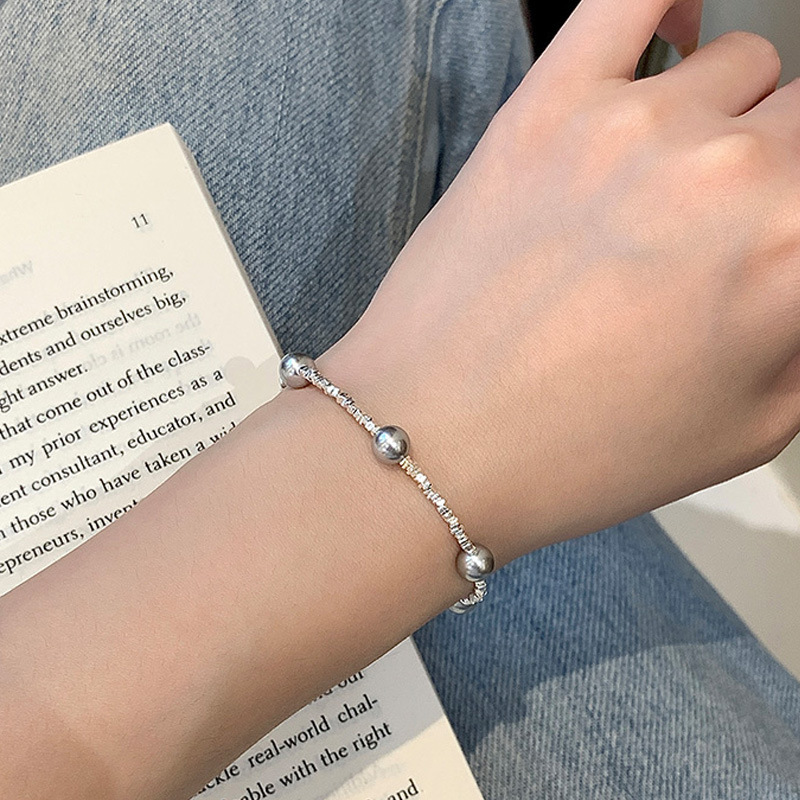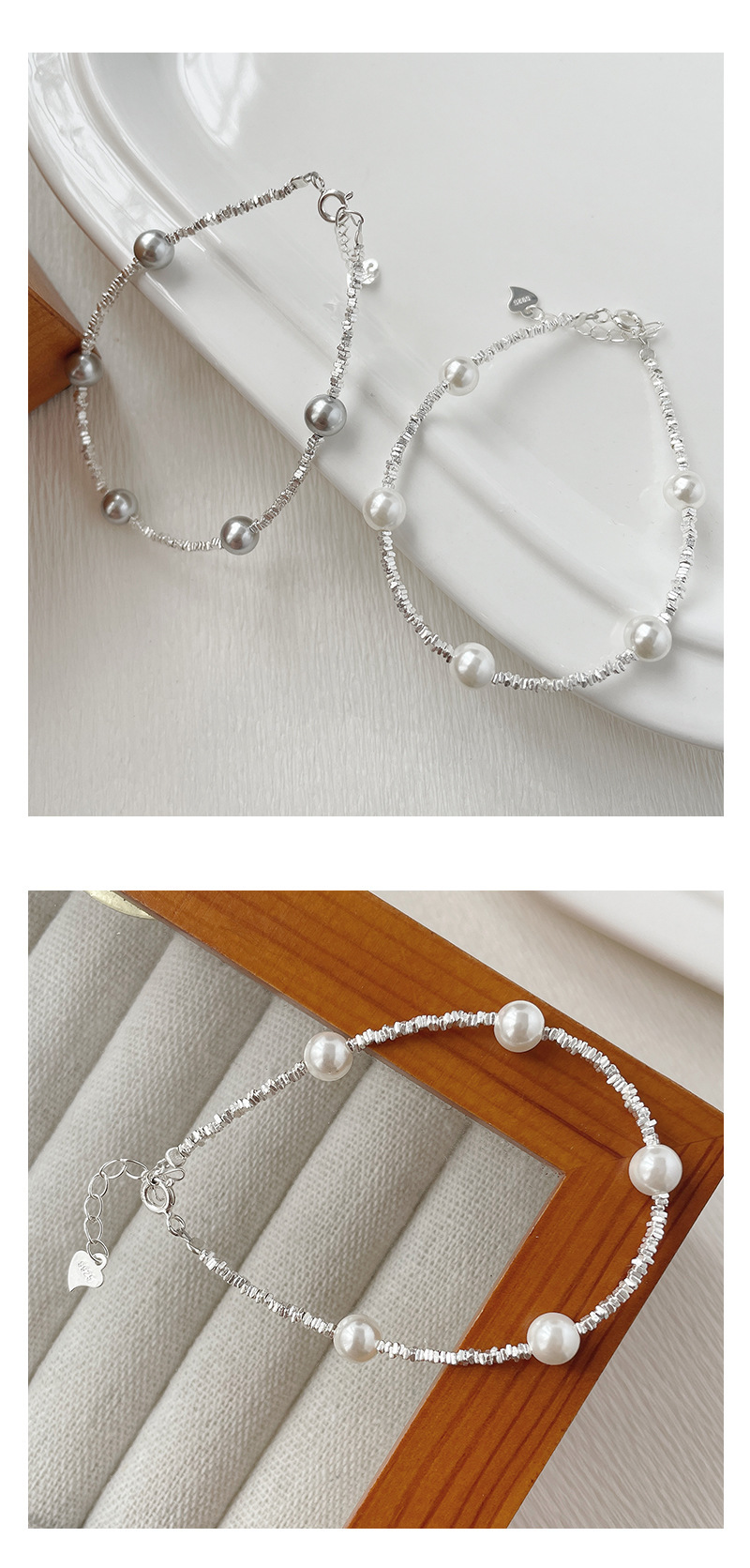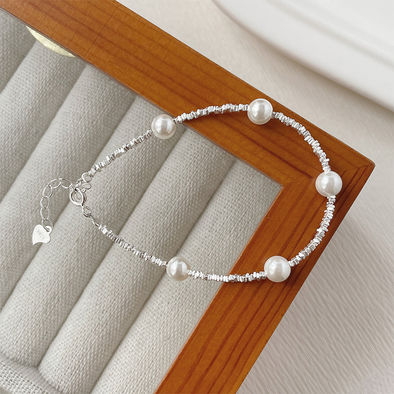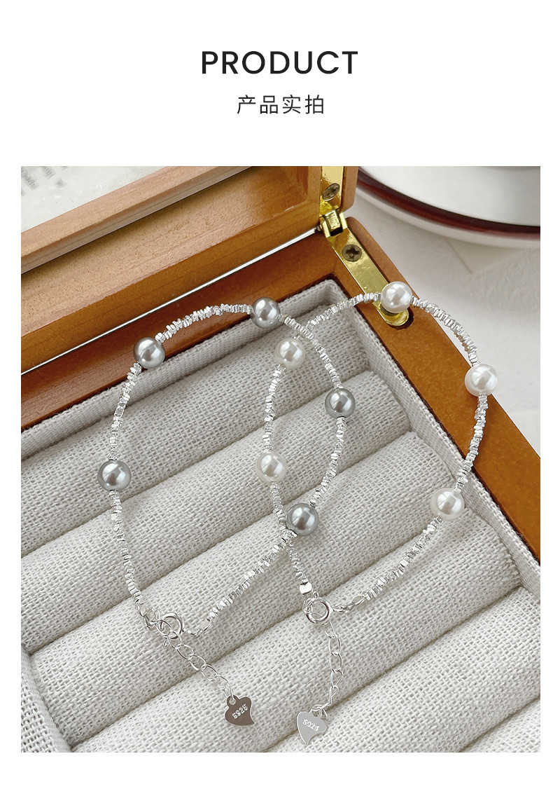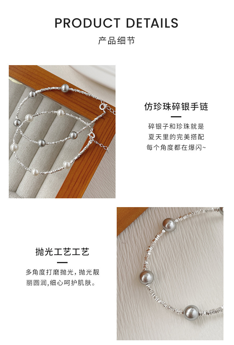 不褪色不过敏红书同款银手链!碎银子施家仿珍珠手链厂家可接定单
