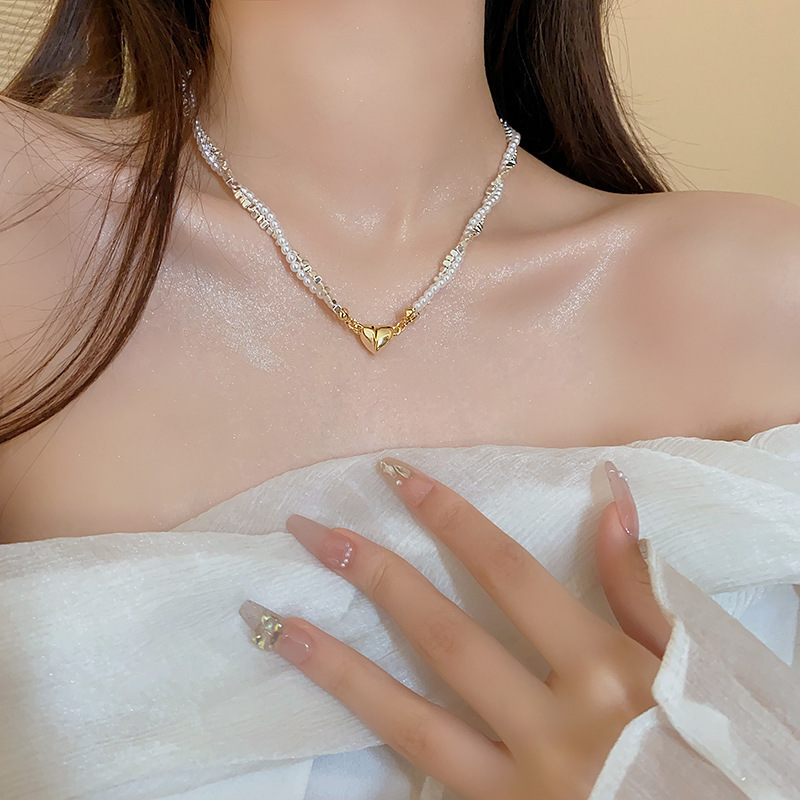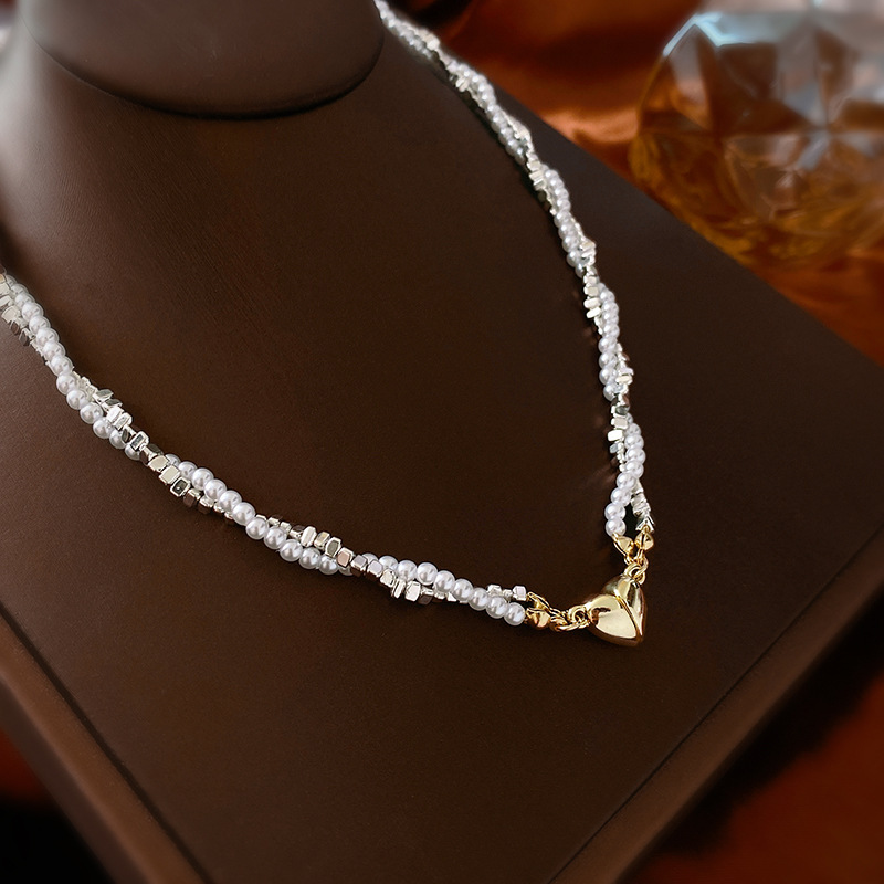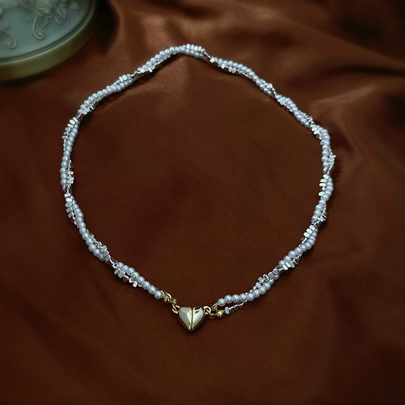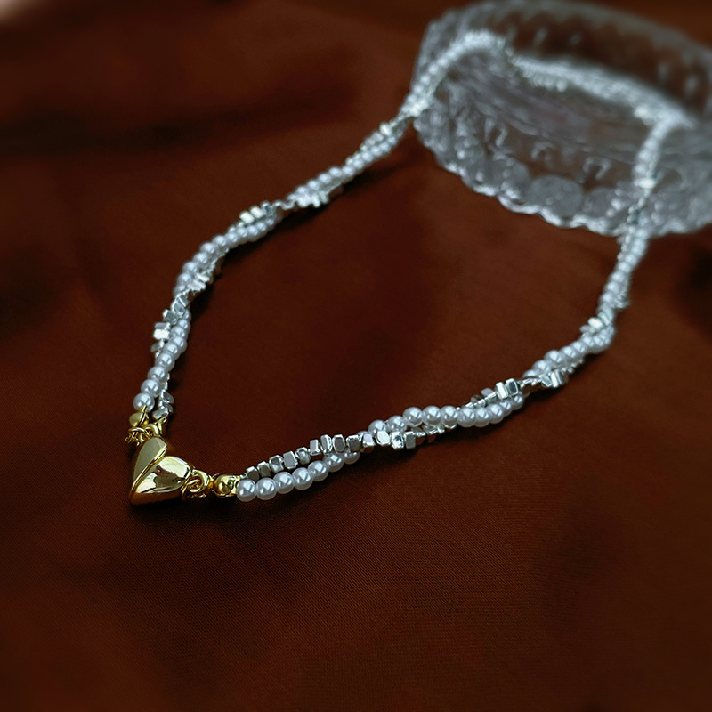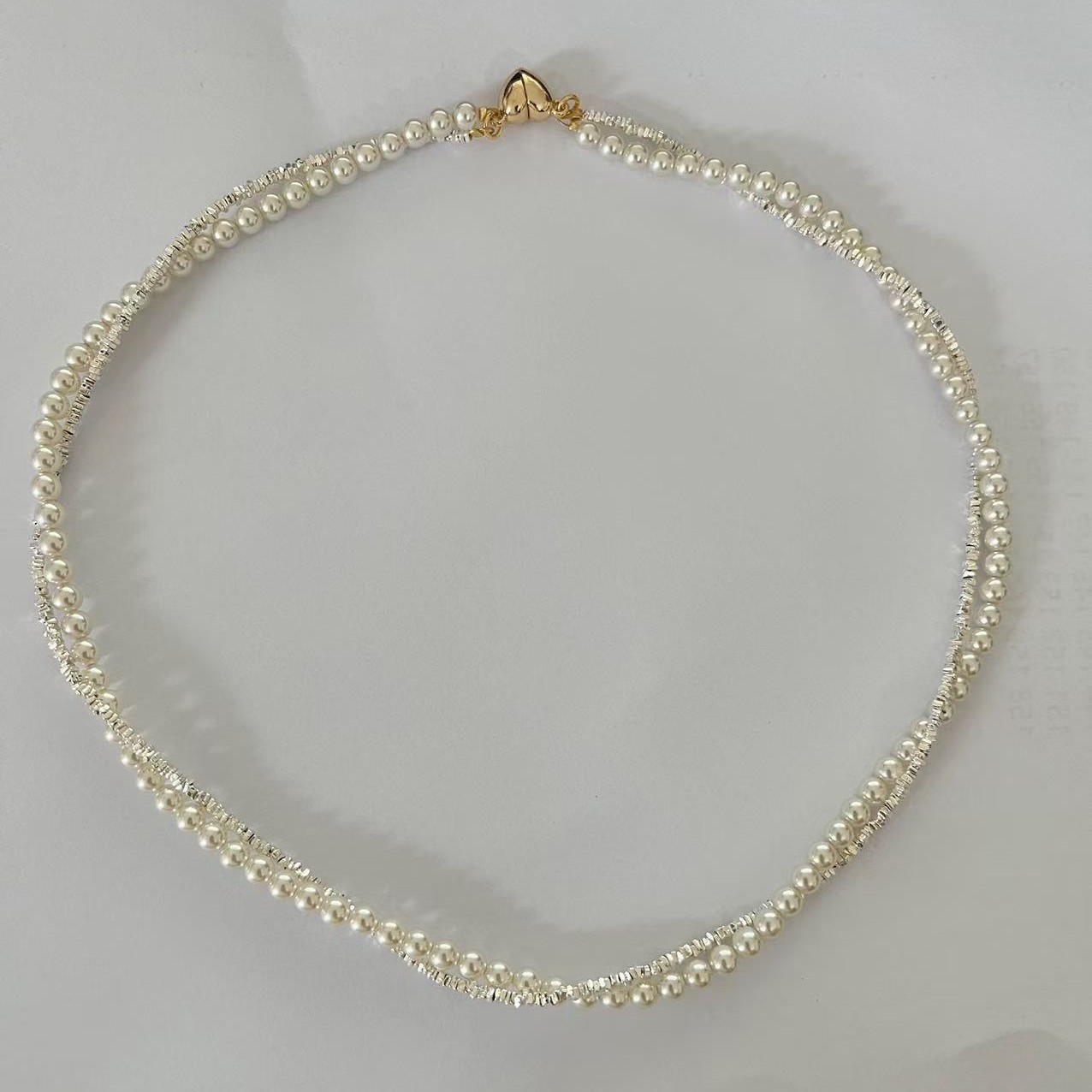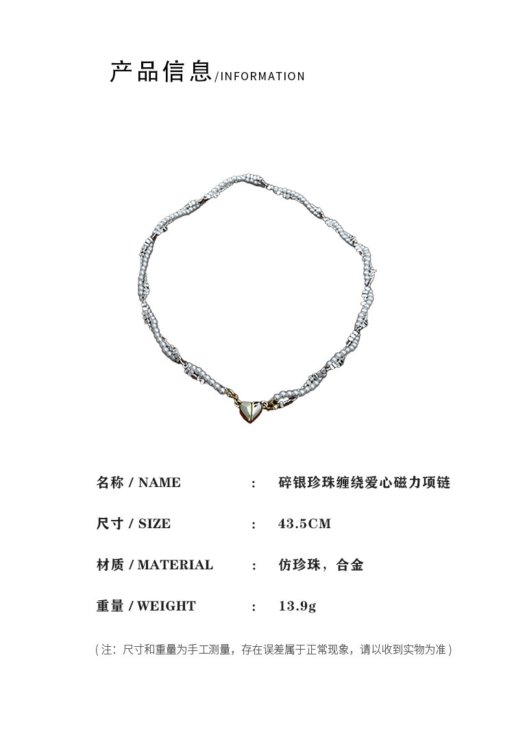 925银双层碎银施家珍珠项链银颗粒优质版碎银项链桃心磁吸扣项链