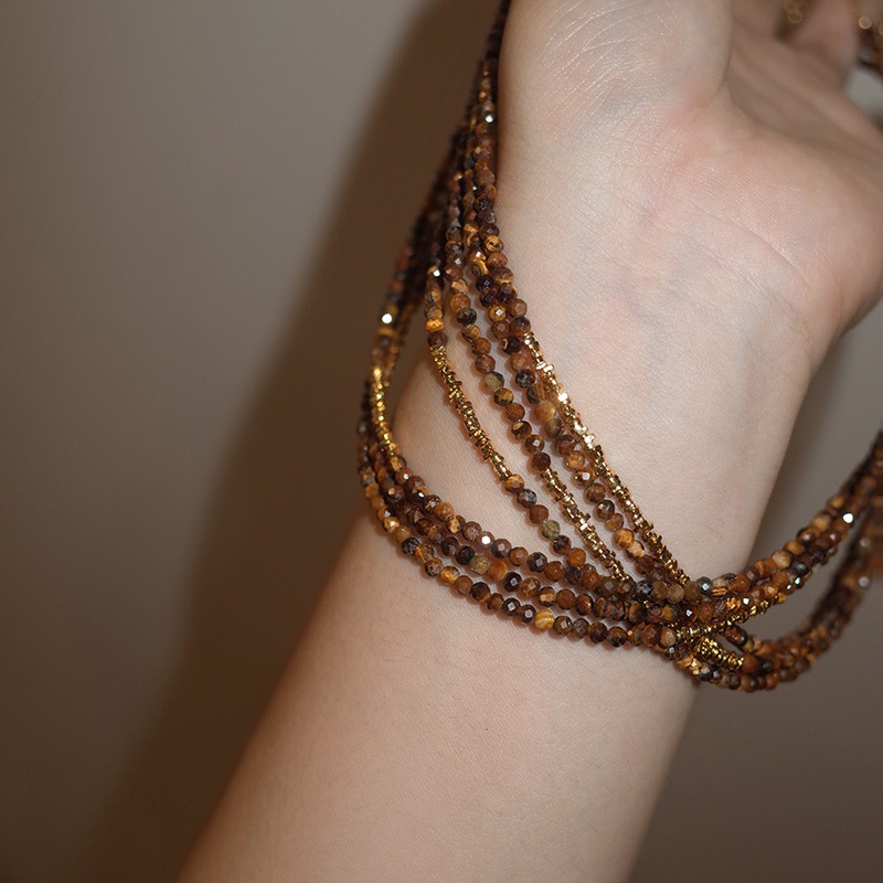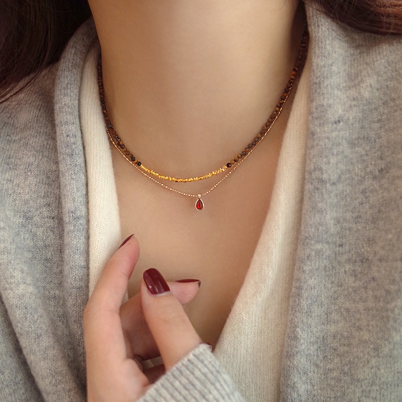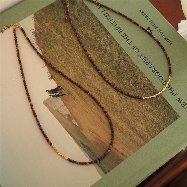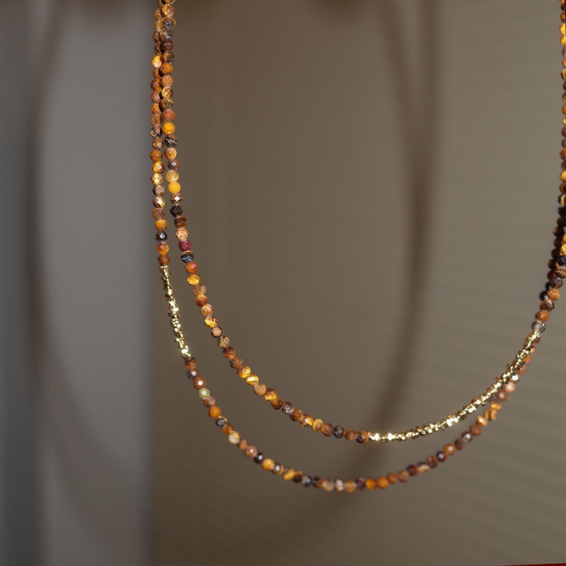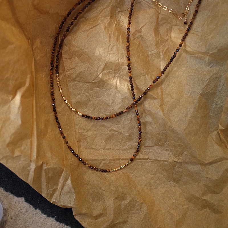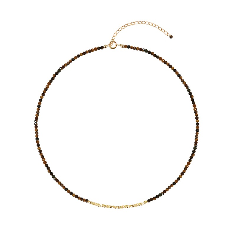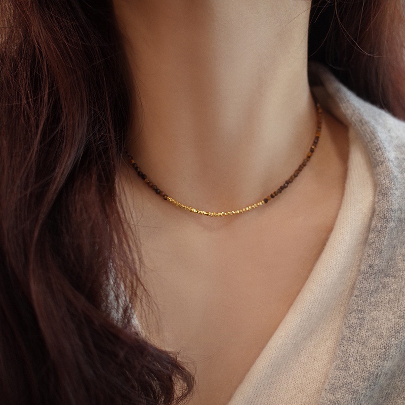 切面虎眼石18K金碎银子项链女轻奢小众复古美拉德锁骨链批发厂家