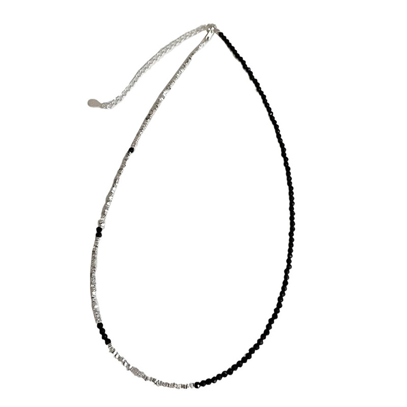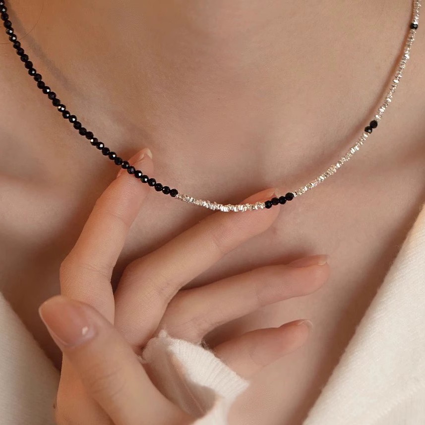 天然黑尖晶925银碎银子项链女韩国博主小众设计甜酷锁骨链银饰