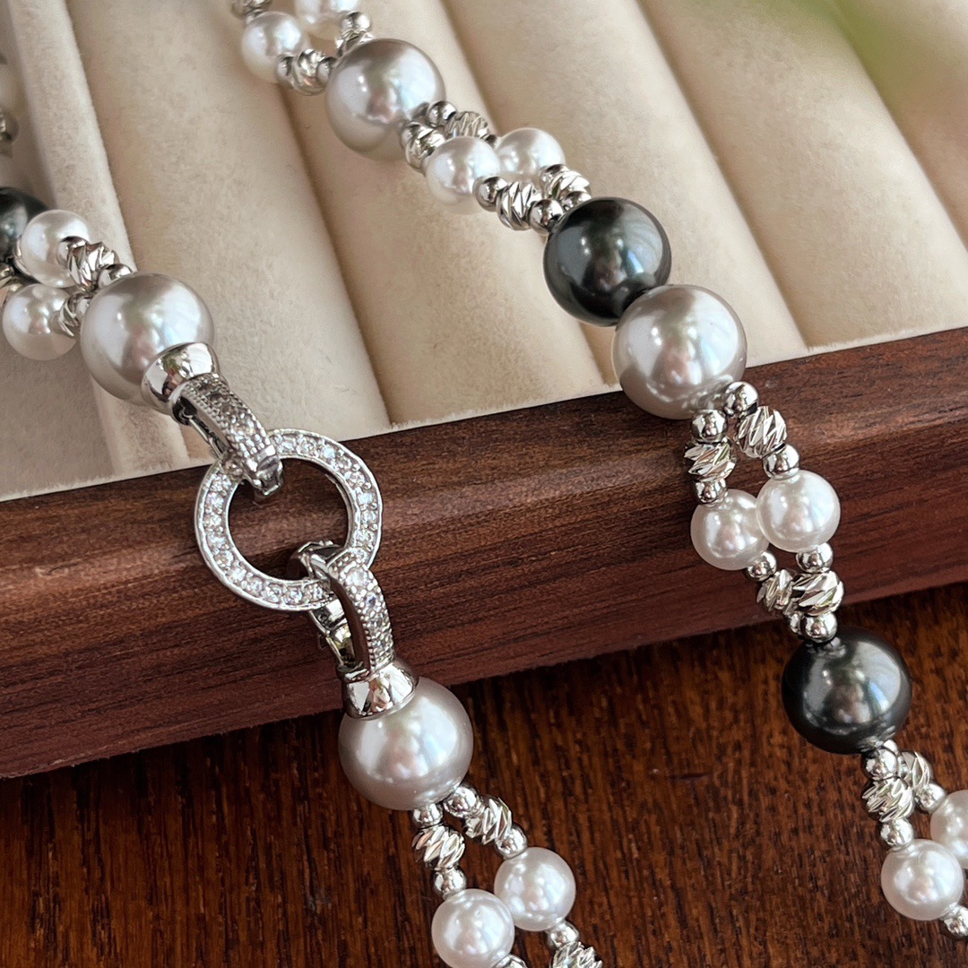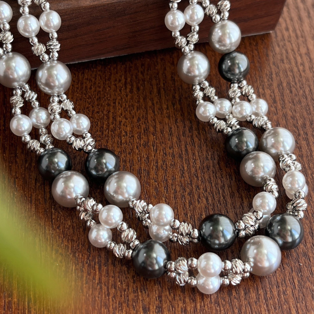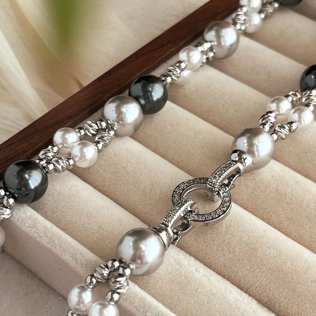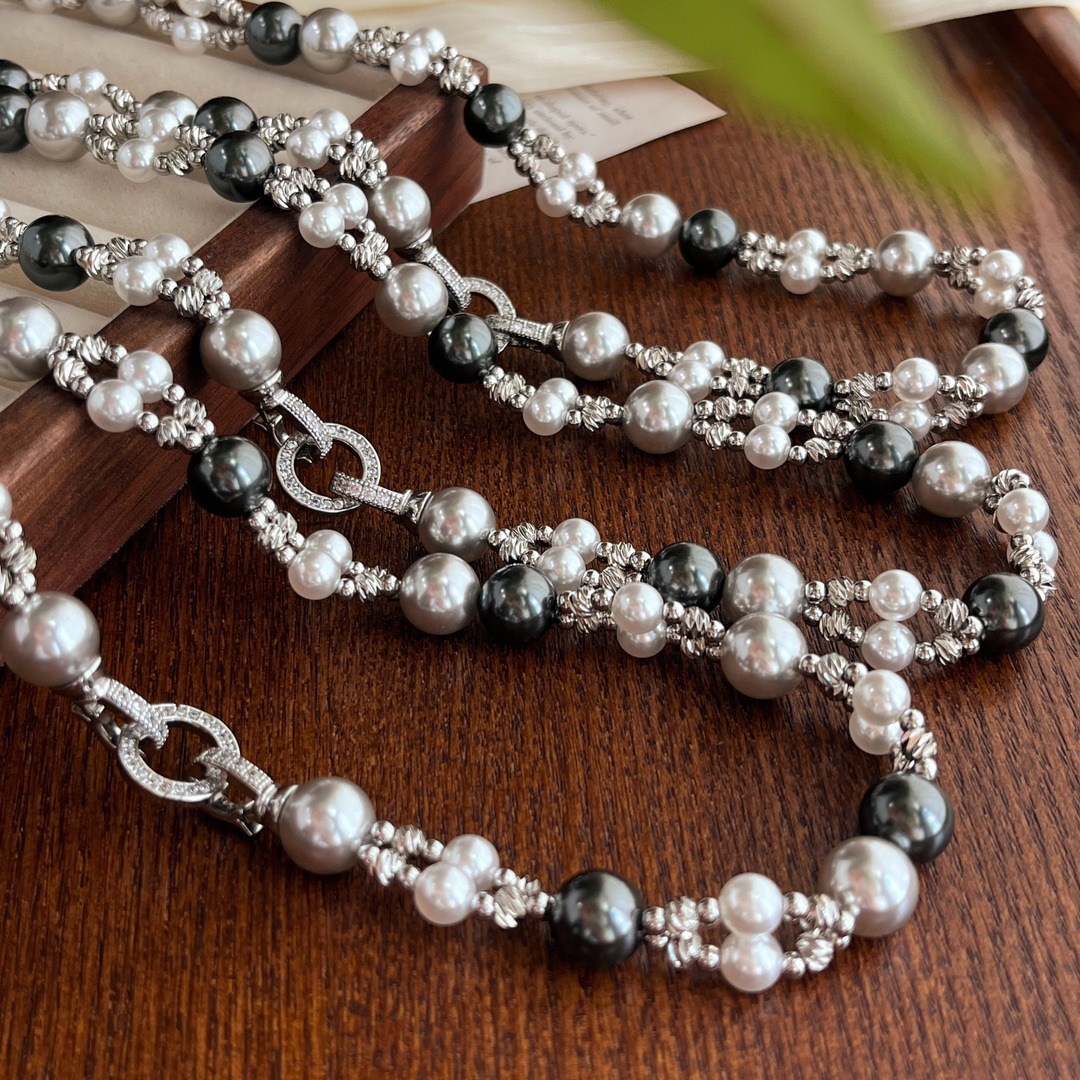 秋冬复古国风高品质施家正圆强光珍珠锁骨链双层设计感颈链