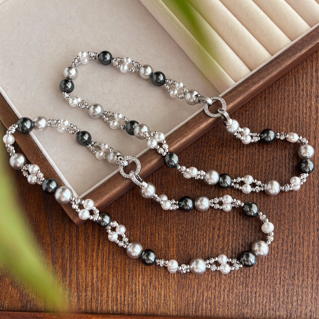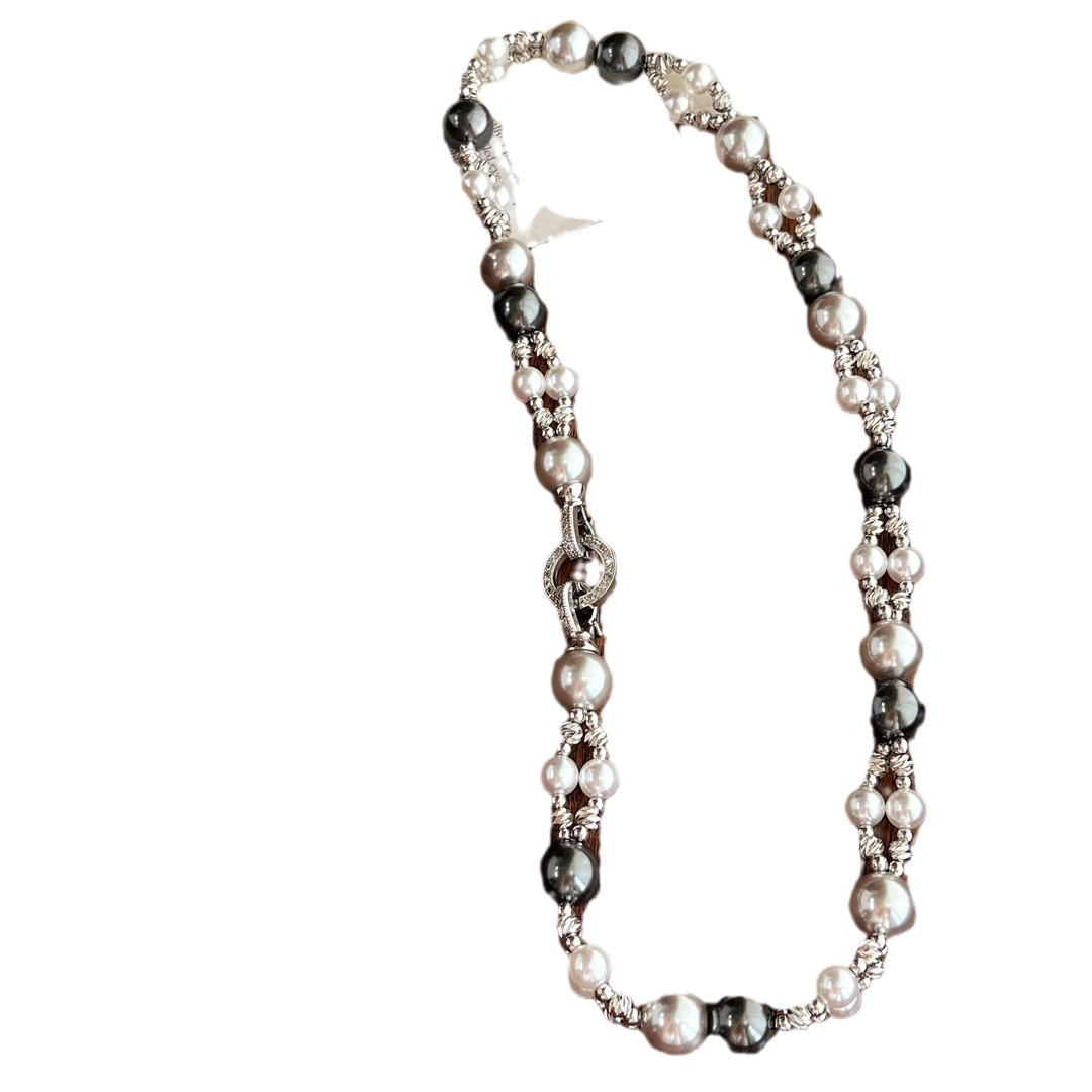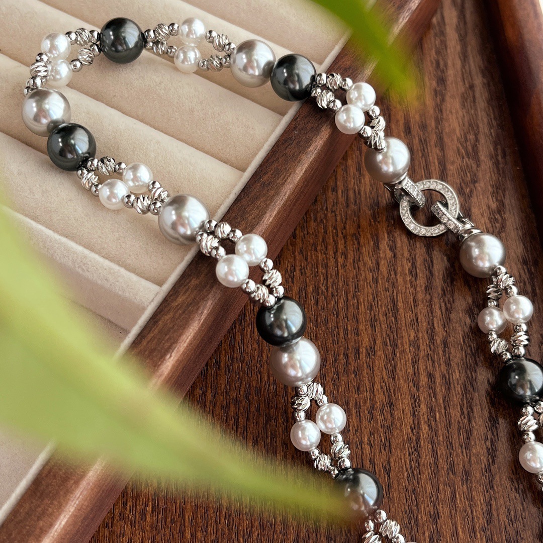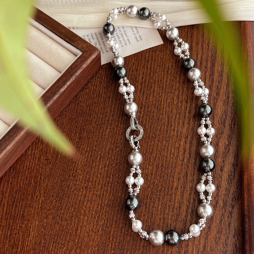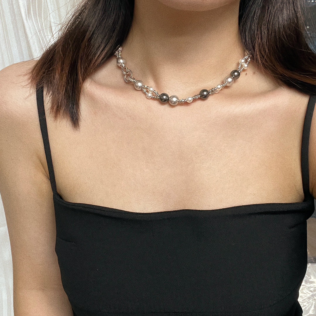 秋冬复古国风高品质施家正圆强光珍珠锁骨链双层设计感颈链